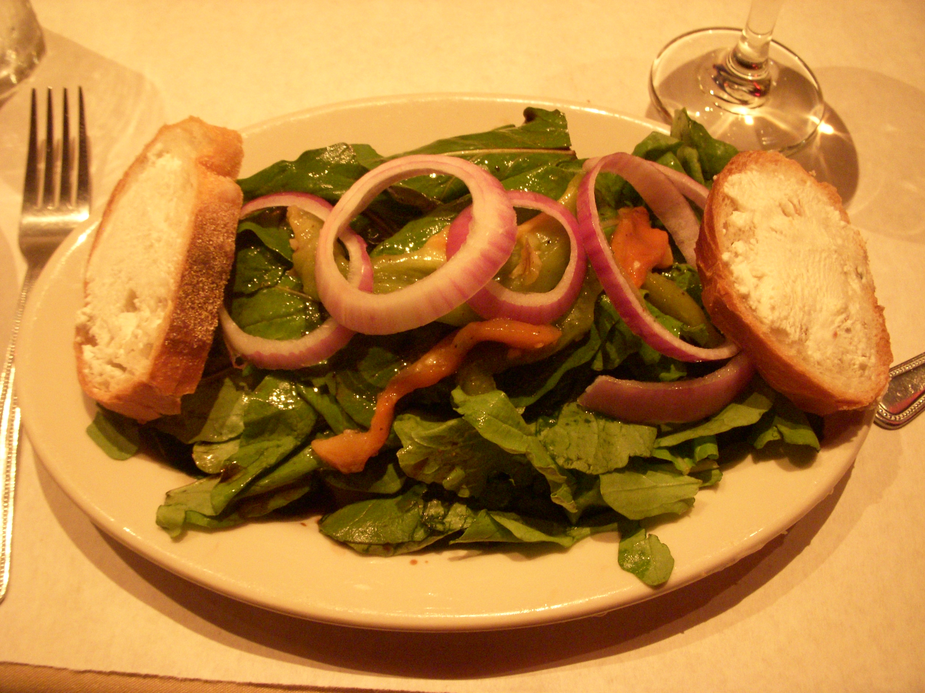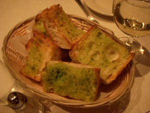 The bread man came by with a big basket of different breads. Josh and I asked for a slice of everything so we could taste them all. The breads were sourdough, cranberry walnut, rosemary, and seven grain bread. All of the breads had really good flavor but the rosemary bread was our favorite, as it was the least dense of the bunch and had a light, crispy crust.