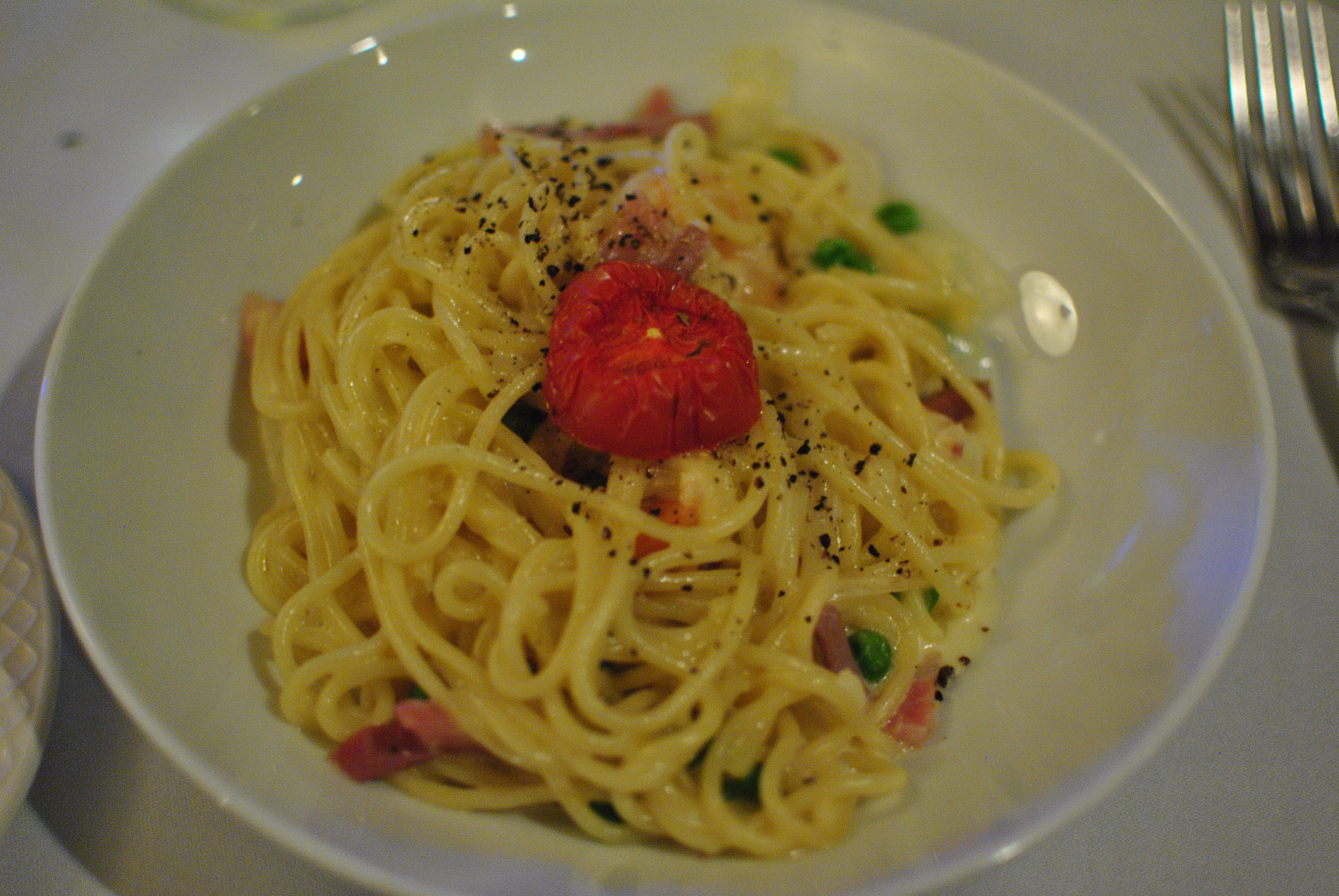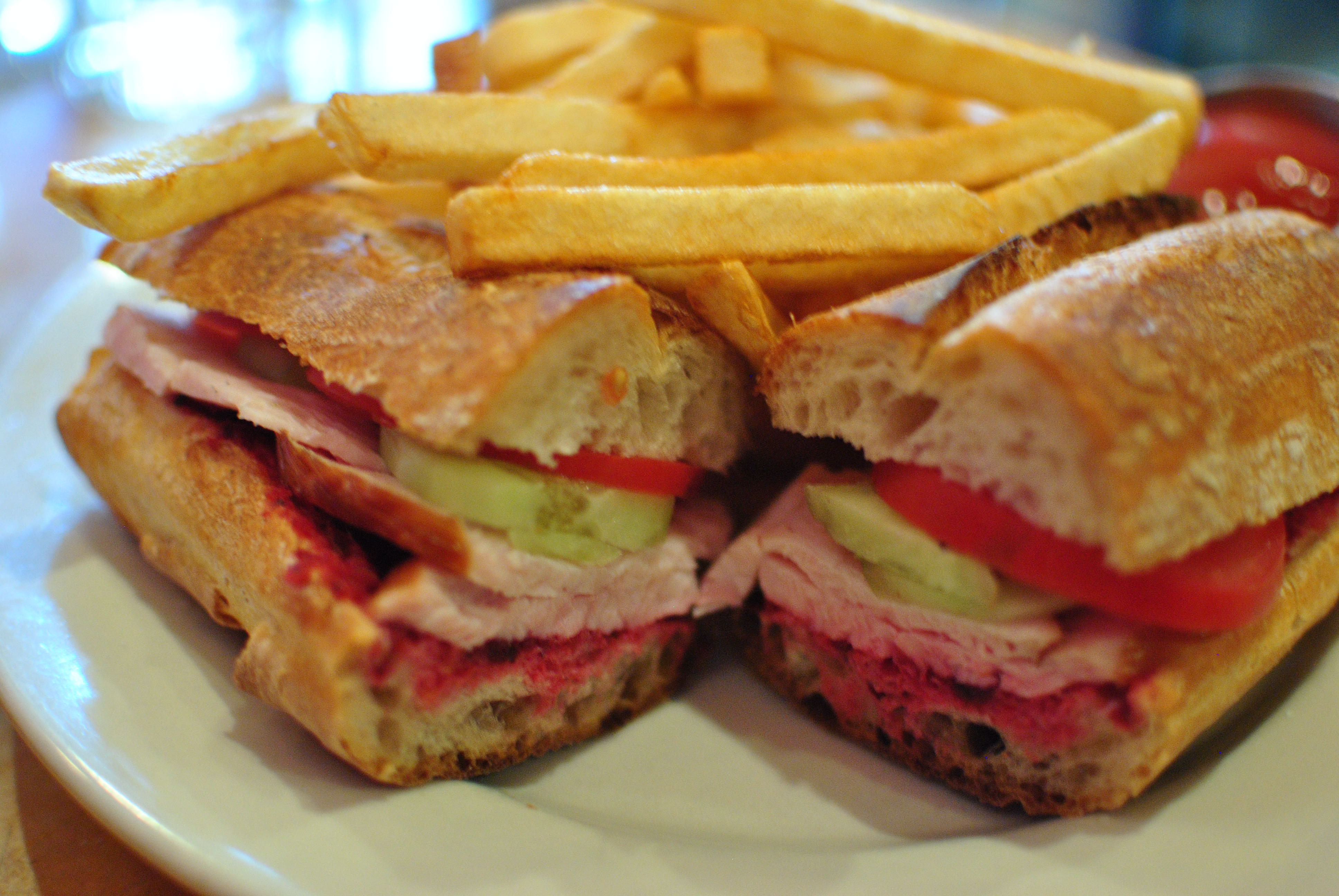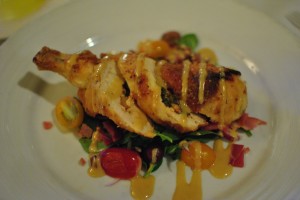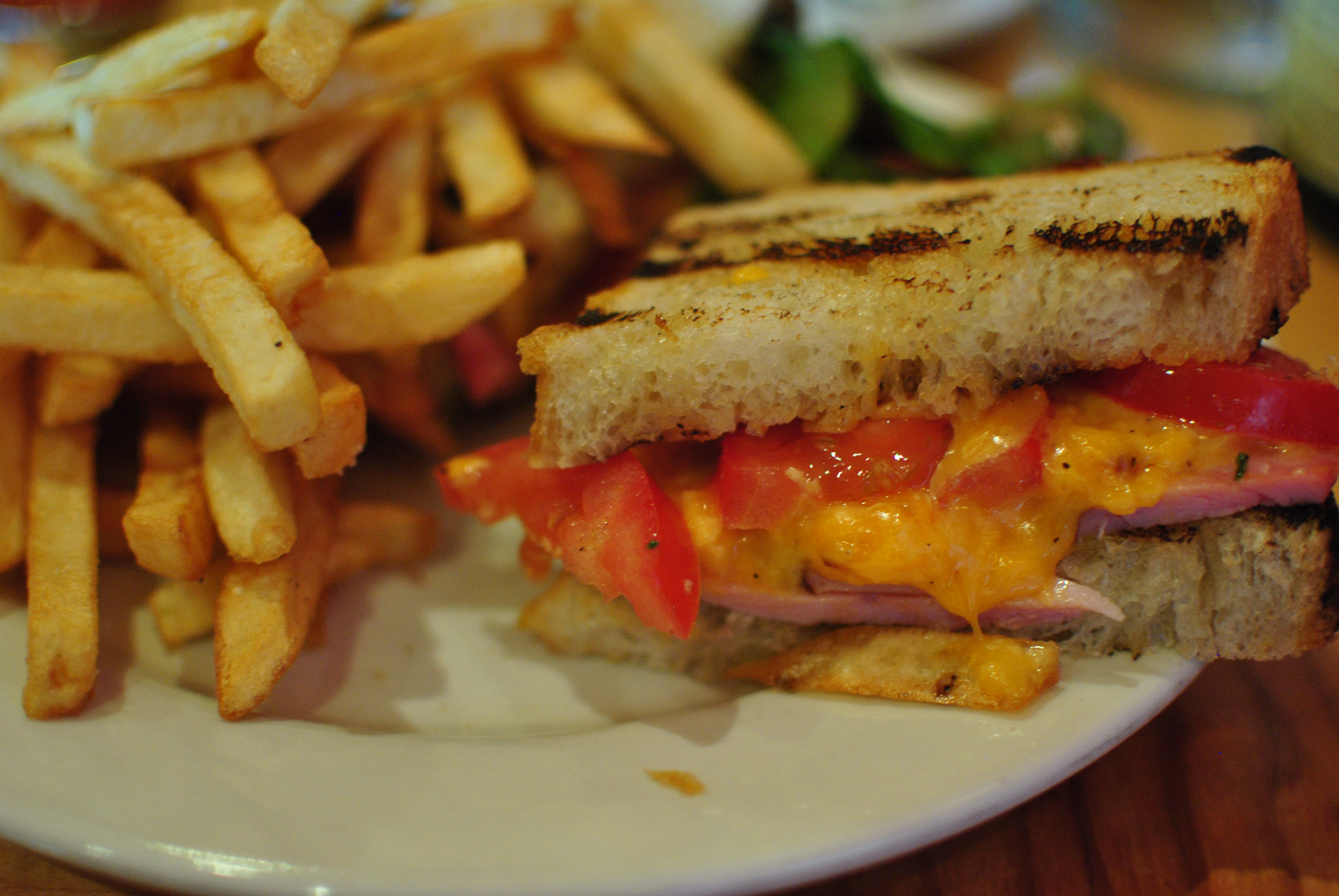 The BLT was actually fried green tomatoes, prosciutto, spinach and goat cheese all layered and stacked into a tall tower. The tomatoes were also perfectly fried, and it was an unusual combination that really worked well together. The tomatoes were slightly sweet and slightly sour, the prosciutto was salty, the goat cheese tangy, and everything was bound together with a spicy adobo sauce underneath.