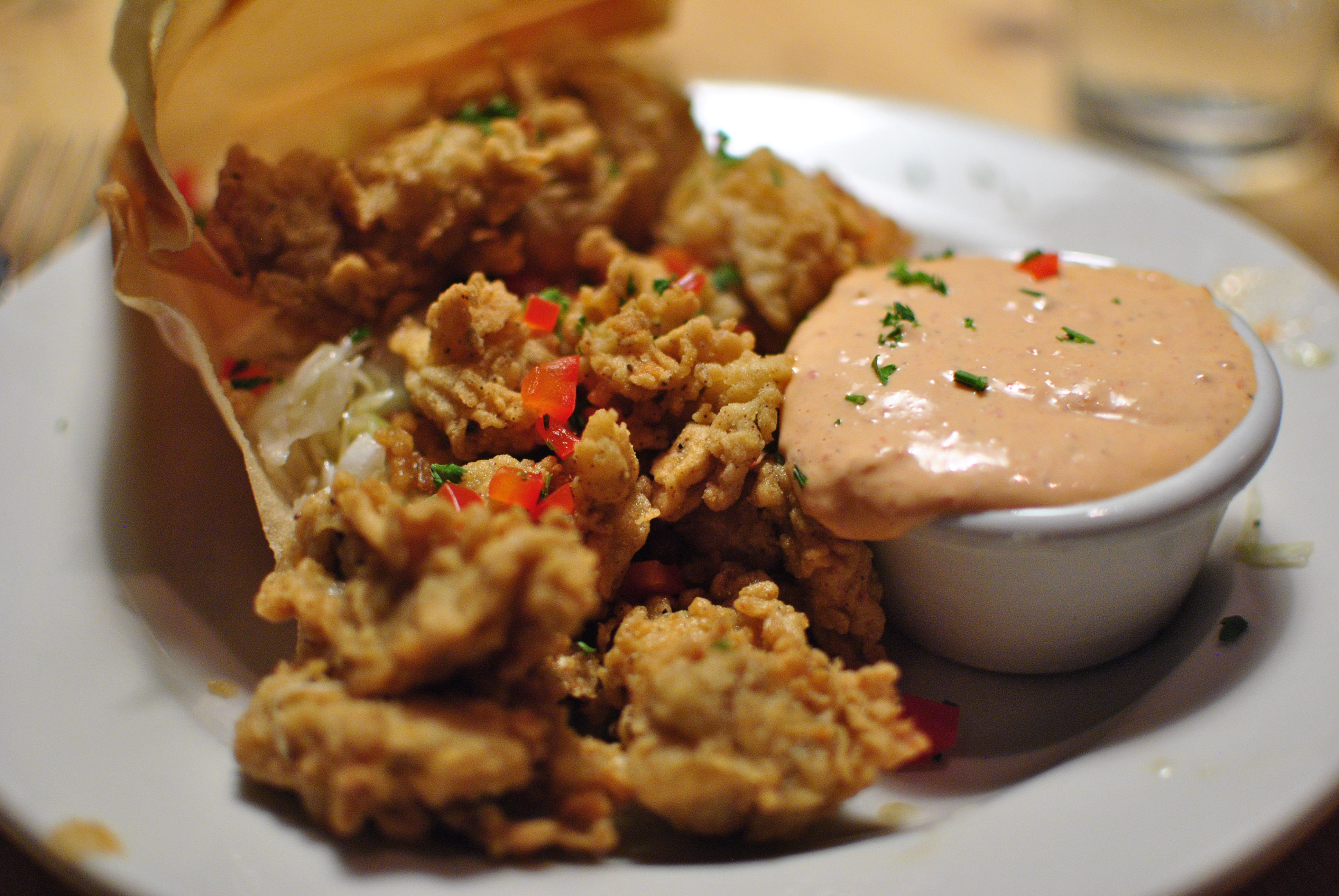 For our appetizers, Josh and I shared the BLT and the fried oysters. The fried oysters were served in an edible spring roll shell with a jicama slaw and tasso aioli. The oysters were freshly fried so they were nice and crispy on the outside. They didn’t have quite as much briny flavor as I would have hoped but they were still large and decently juicy inside. The aioli had a bit of a spicy kick to it, which was nicely tempered by the refreshing jicama slaw. It was a very nicely done appetizer, and a really large portion as well.