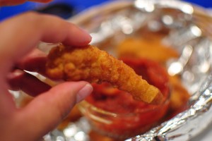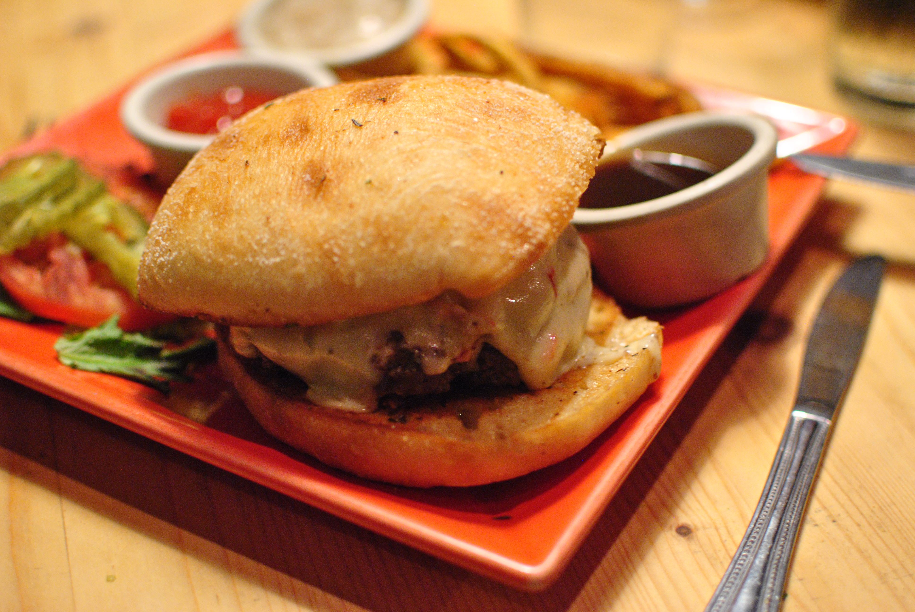 I was really curious to try the kobe burger, which was also topped with foie gras. I’ve never had a “fancy pants” burger before, like the famous and uber-expensive DB burger by Daniel Boulud. Red Fish’s version featured ground kobe beef with foie gras, truffles, pepper jack cheese, and crispy onions. It also came with a port demi-glace on the side for dipping. I have to admit that I was a bit disappointed with this burger, as there was perhaps too much going on and all the flavors were muddled. I didn’t taste the foie gras or the truffles, which two of my favorite ingredients. The beef itself had a slightly funky flavor, more like a braised pot roast rather than a grilled piece of meat. The ciabatta bun also did nothing to help the burger, as it was dense and chewy and kind of overwhelmed the meat patty. I’m sad to say that I prefer a simpler burger without all of the fancy ingredients. The burger did come with truffled fries that were pretty tasty. The menu said steak fries but they were actually standard thin cut fries, which was a relief because I’m not a fan of steak fries. They were doused in truffle oil but weren’t so overpowering, which was good.