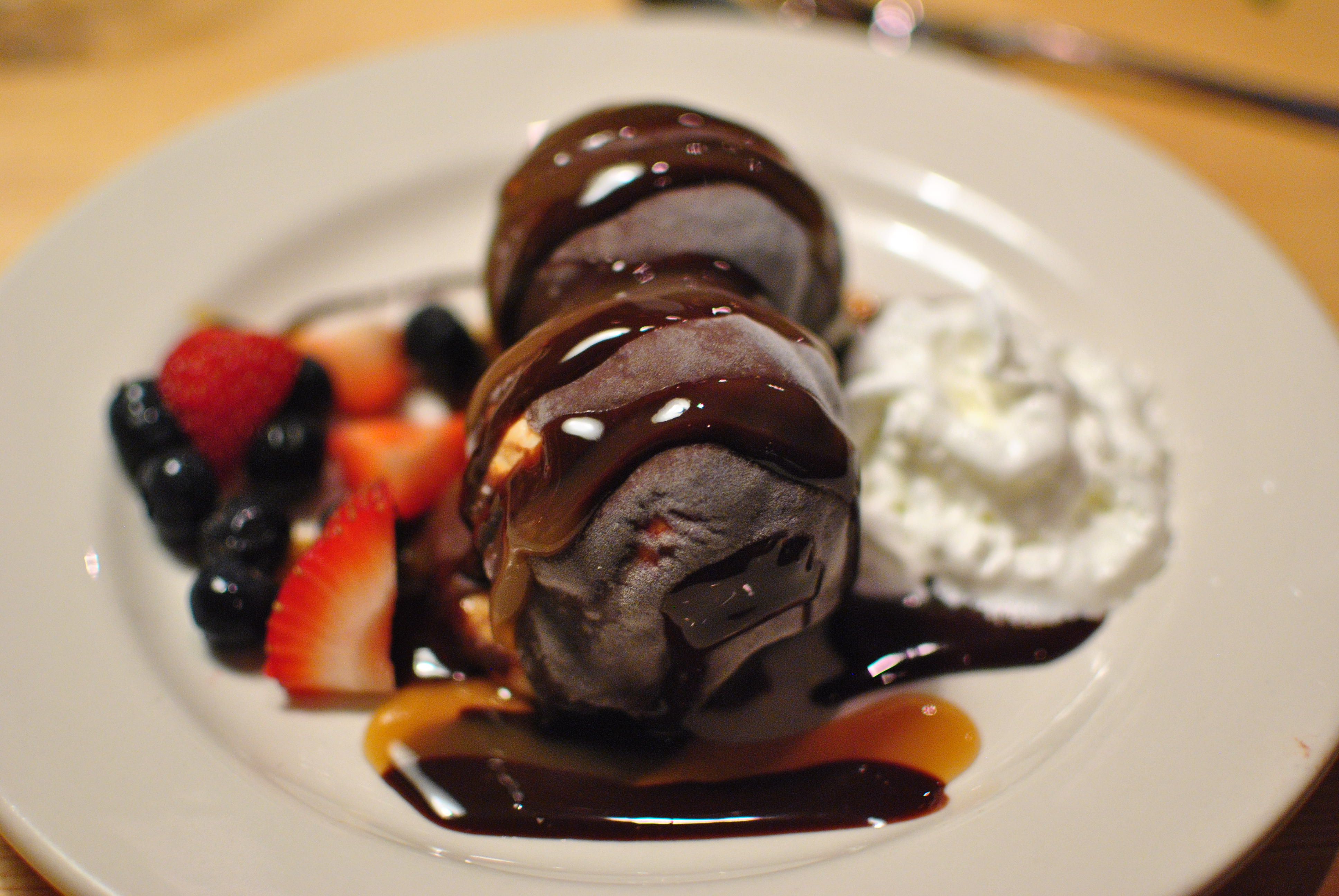 We all decided to split a dessert, which was called the Chocolate “Twix” Bar because it has similar components to an actual Twix bar. There’s a shortbread cookie base that’s covered in caramel and scoops of vanilla ice cream. Then the entire thing was covered in a chocolate coating. It was a simple flavor combination but the result was pretty fantastic, and very refreshing on a hot summer day.