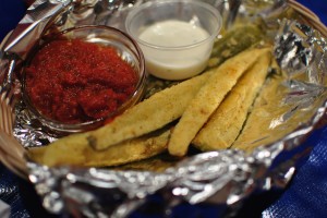 BLT – stacked fried green tomatoes, prosciutto, spinach, and goat cheese over adobo sauce