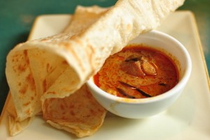 We decided to share an order of roti canai to start. It’s a flaky, buttery, layered pancake that’s dipped into chicken curry sauce. However, our waitress convinced us to order the “special” roti canai, which she said was hand made and much better than the regular roti because it was much crispier. What we got basically a single layer of dough, which was crispier only because it was dry. There was no butter, no flakiness, no richness that we love about roti canai. This was more like pappadum, basically just a large, thin cracker. It was a huge disappointment, and more expensive to boot. While the chicken curry dipping sauce was wonderful, we couldn’t help but wish that we had gone with the regular roti canai. We won’t make that mistake again!
