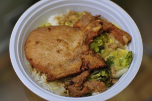 We just heated it up in the microwave so it might have lost its crispiness on the outside, but the pork chop itself was still pretty juicy. It’s covered in a Chinese five spice powder and is slightly peppery. The rice is topped with a pickled cabbage and ground pork mixture that is slightly sour and very savory. I mix everything together and it just reminds me of my childhood. Hua Ji’s pork chop over rice was one of the best versions that I’ve had, and super cheap at just $5.