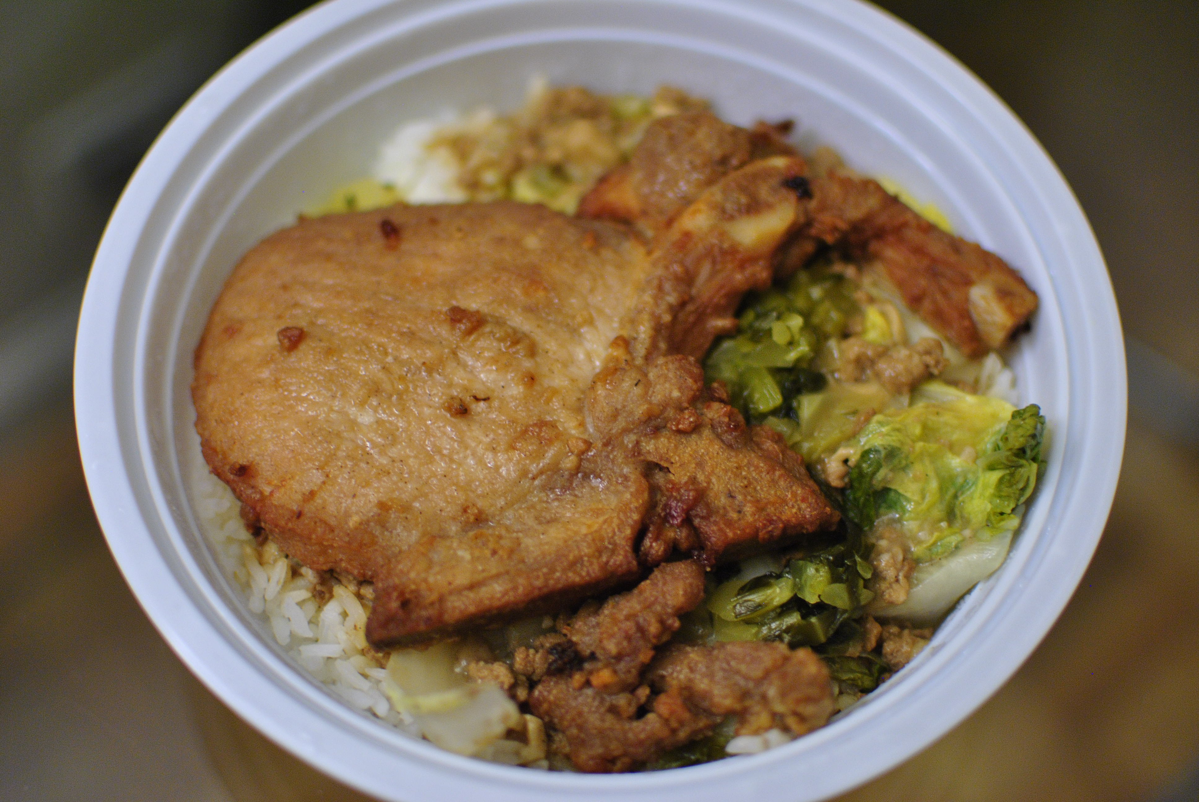 We were completely stuffed from lunch so rather than continuing on an eating tour, we decided to pick up a few things that we could eat later in the week for dinner. Our first stop was Hua Ji, a small takeout joint that was conveniently located just a few doors down from Skyway. Hua Ji is known for its pork chop over rice, a Taiwanese staple that I remember eating a lot when I was little. Josh had never tried this dish before so I was eager to have him taste it.