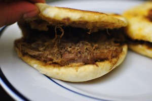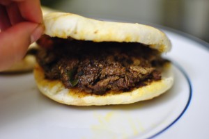 The lamb burger is chock full of cumin flavor, and is slightly spicy. It has a chewy texture to it and can be a bit gristly at times, but the flavor really packs a powerful wallop. It’s definitely a must-have if you like cumin. The stewed pork burger is more tender and juicy, though the flavor isn’t as intense. It’s slightly sweet and has a more homey, comforting flavor.
