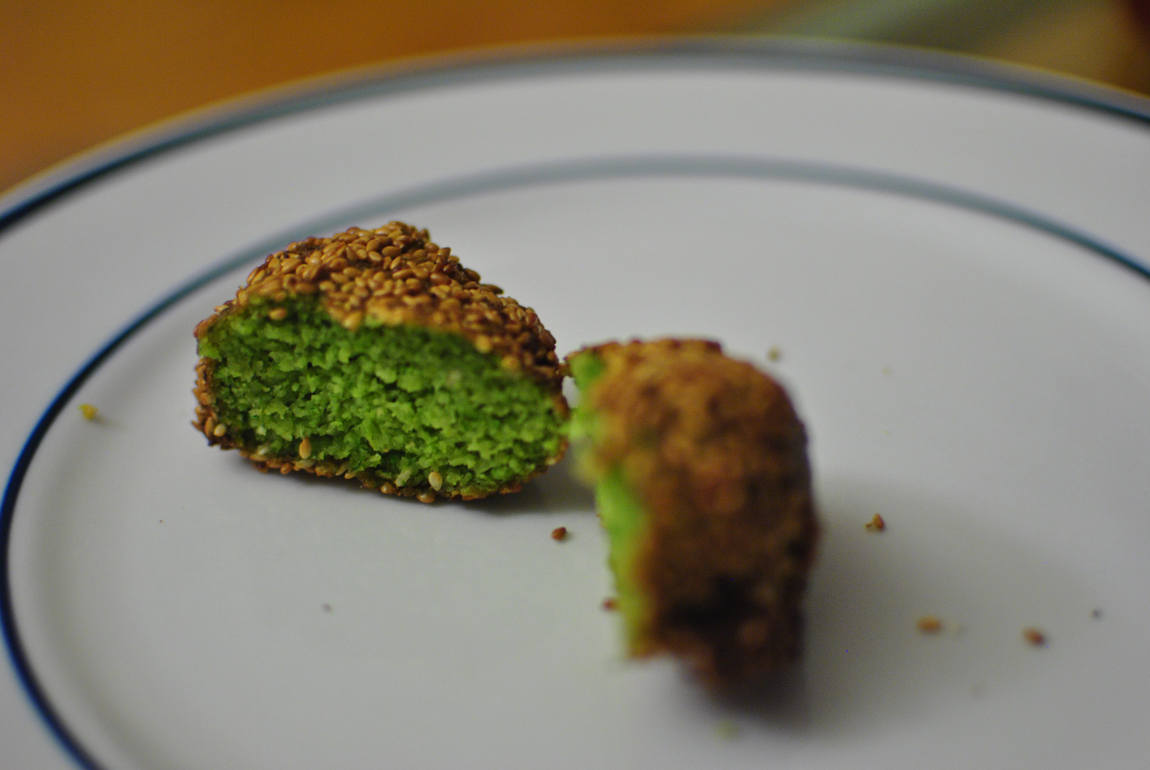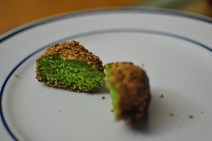 I cut one of the balls in half to make sure they were cooked through, and it was beautifully green and creamy in the center.