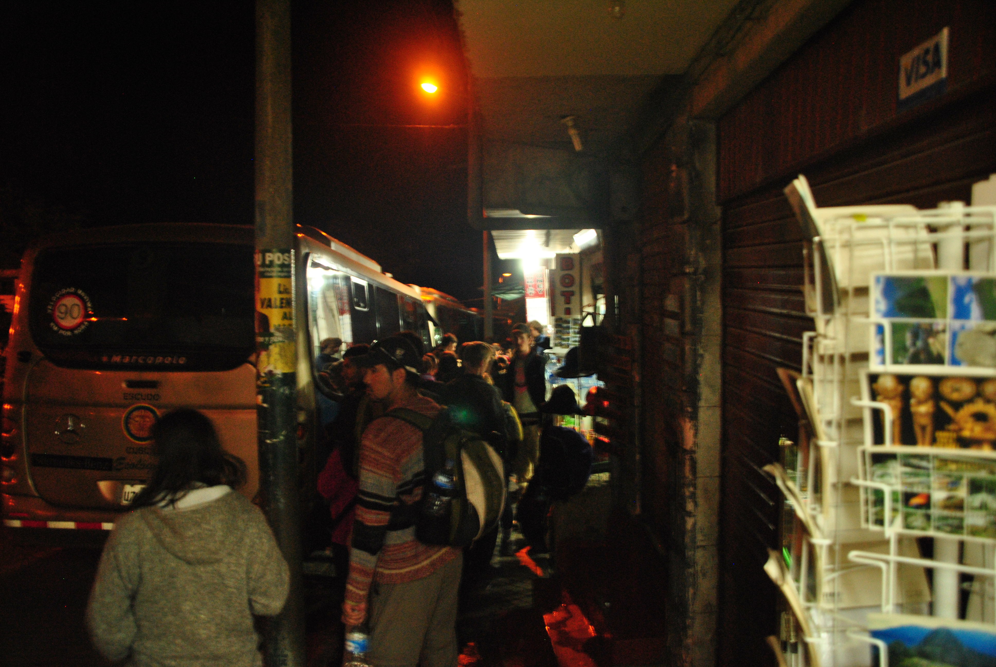 It was a pretty rough morning for the both of us since neither Josh nor I are morning people. Plus the rally in the square had kept us awake for most of the night so we were not happy campers to have to get out of bed so early. By the time we got up, got dressed, packed our stuff, checked our bags, and checked out of our hotel, it was about 4:30 am. Luckily the bus station was only a five minute walk so we joined the end of the line around 4:35, and there were probably at least 100 people ahead of us already.