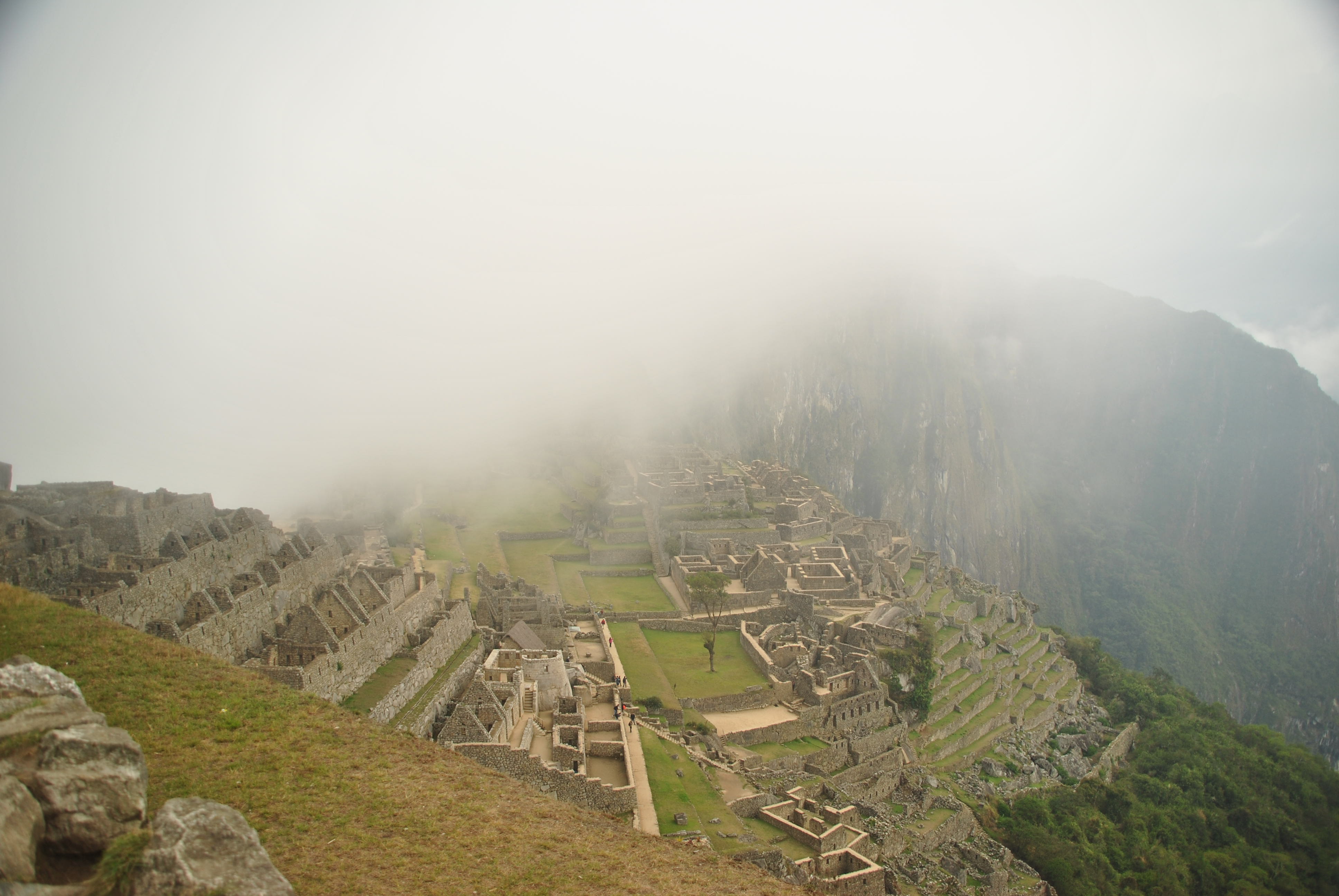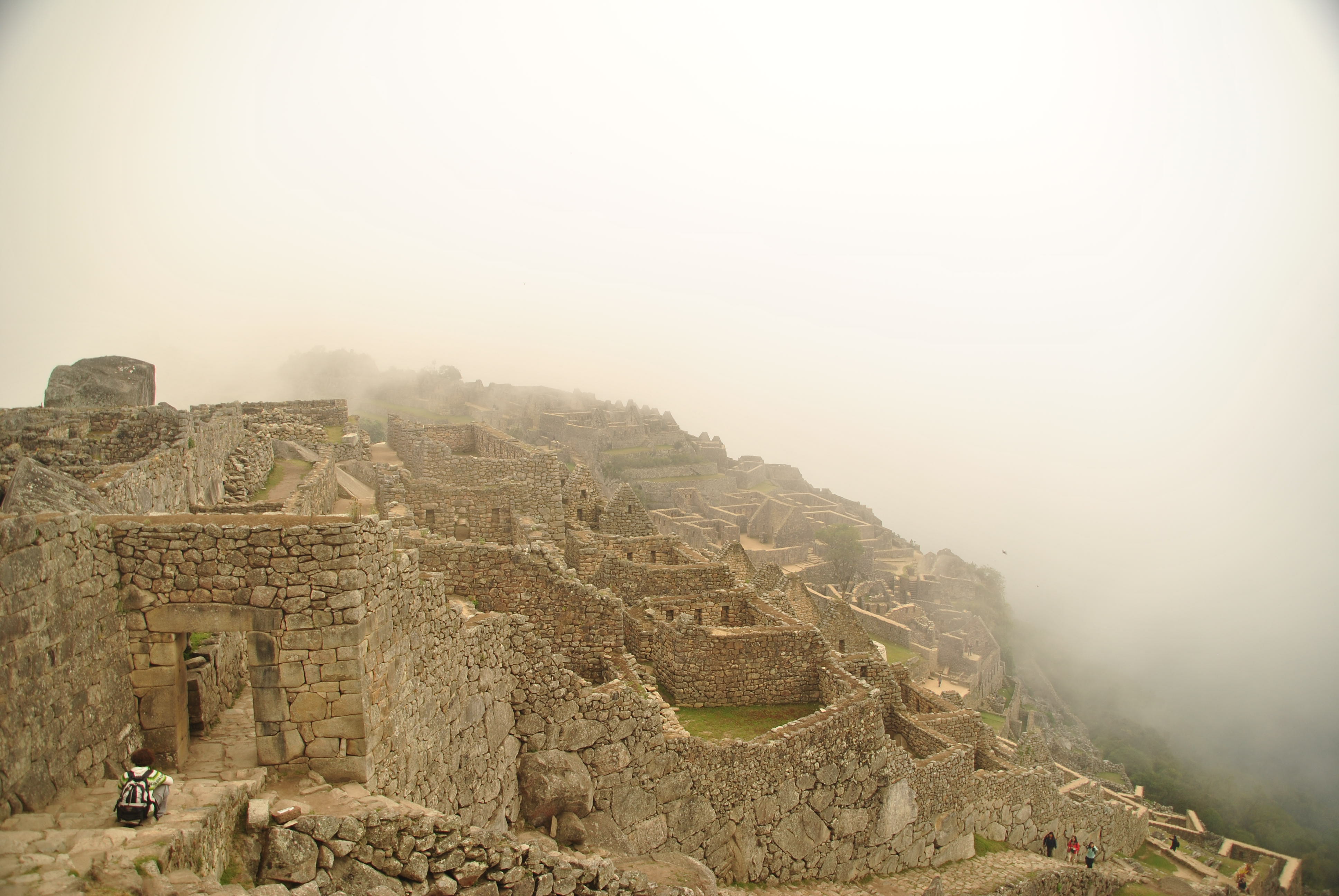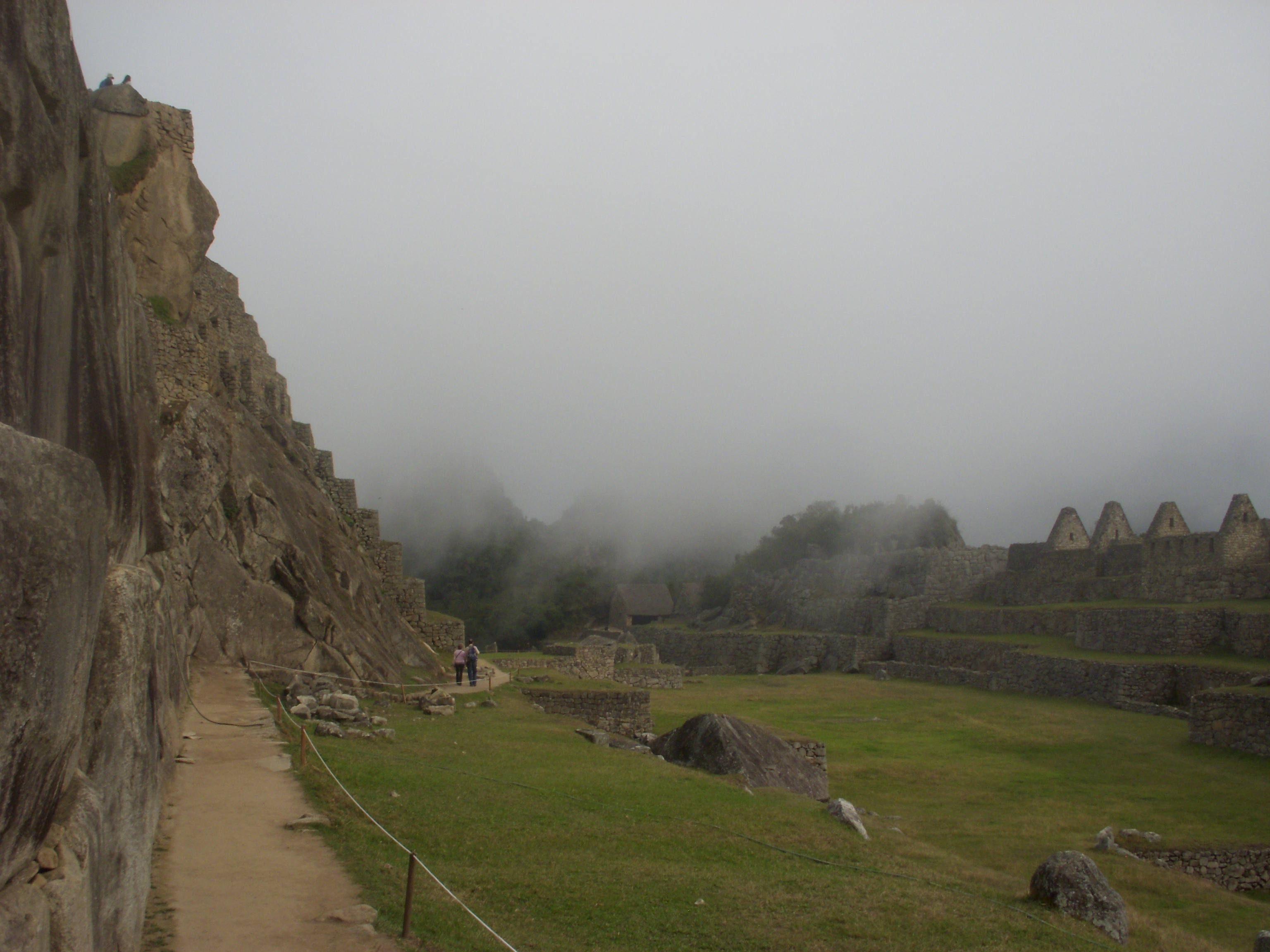 When we walked into the main part of Machu Picchu, it was eerily quiet and calm, a huge departure from the previous day when it was packed with people. The view was also different, since a large part of the structures were shrouded in the fog, and we couldn’t see Huayna Picchu at all.