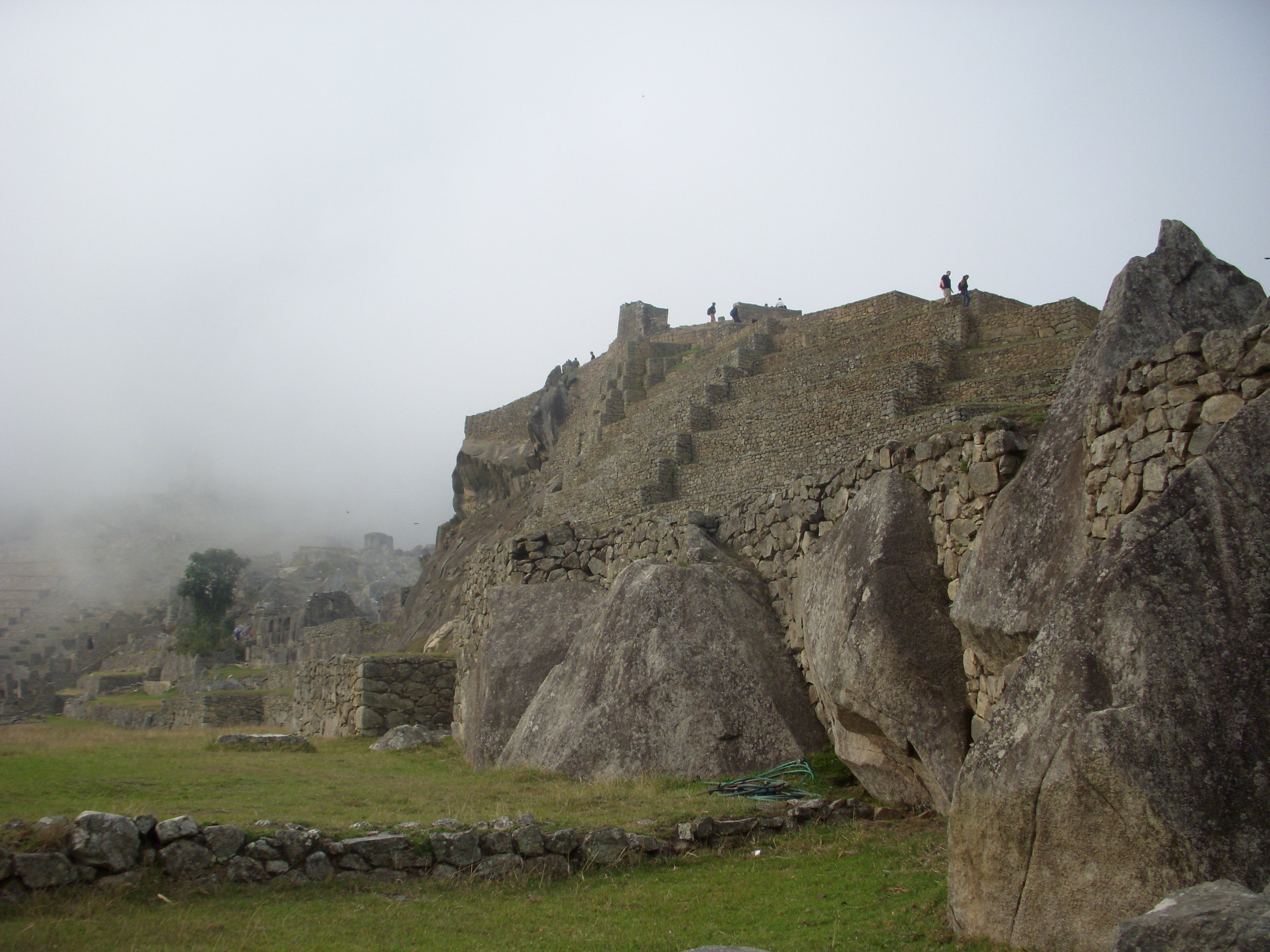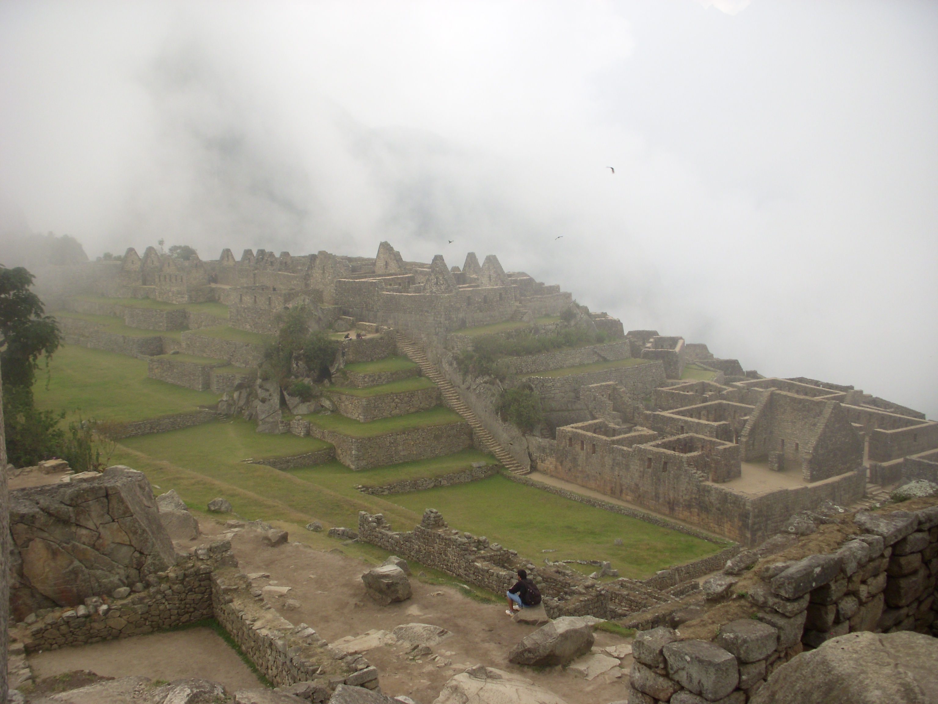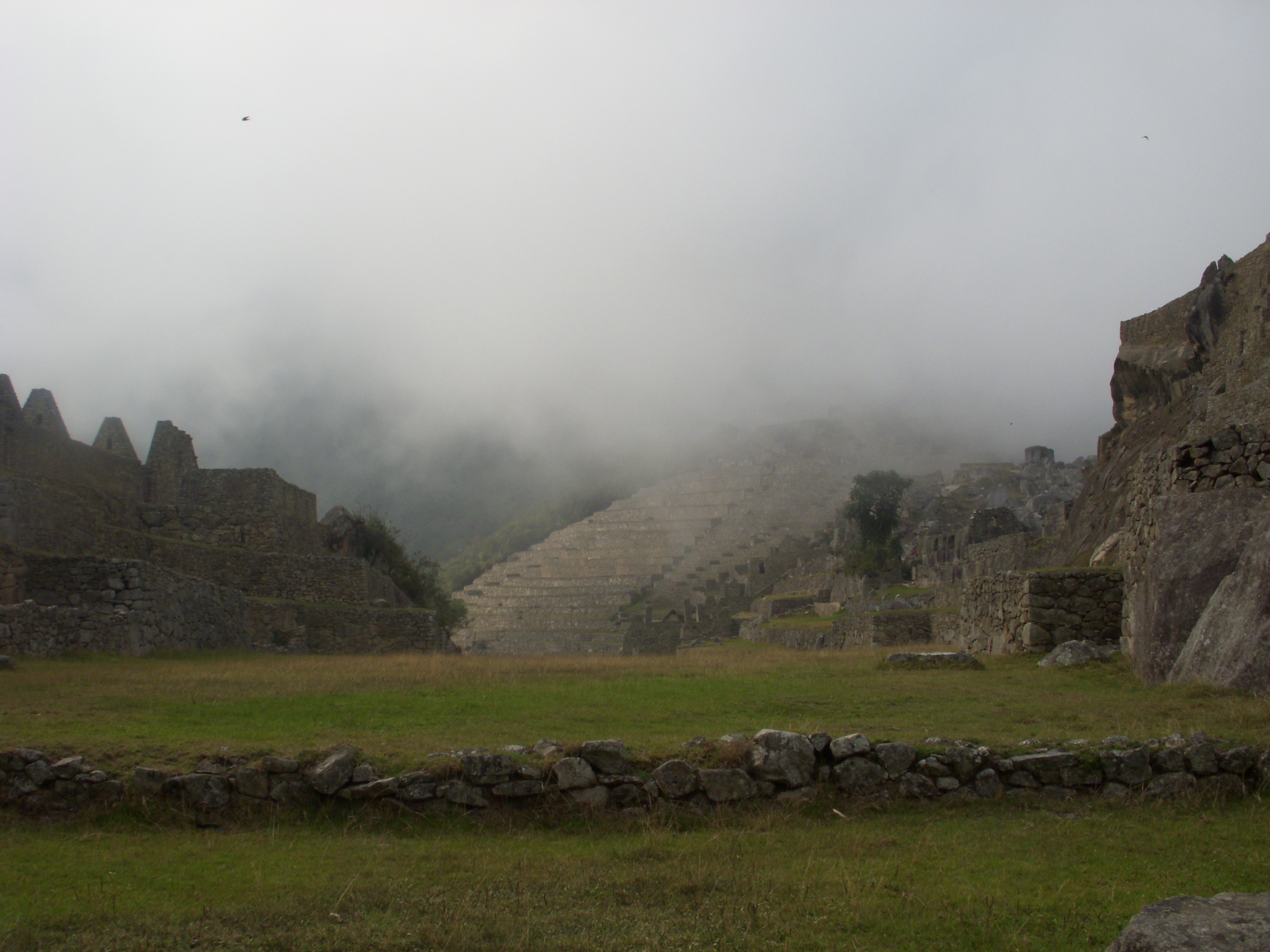 When we walked into the main part of Machu Picchu, it was eerily quiet and calm, a huge departure from the previous day when it was packed with people. The view was also different, since a large part of the structures were shrouded in the fog, and we couldn’t see Huayna Picchu at all.