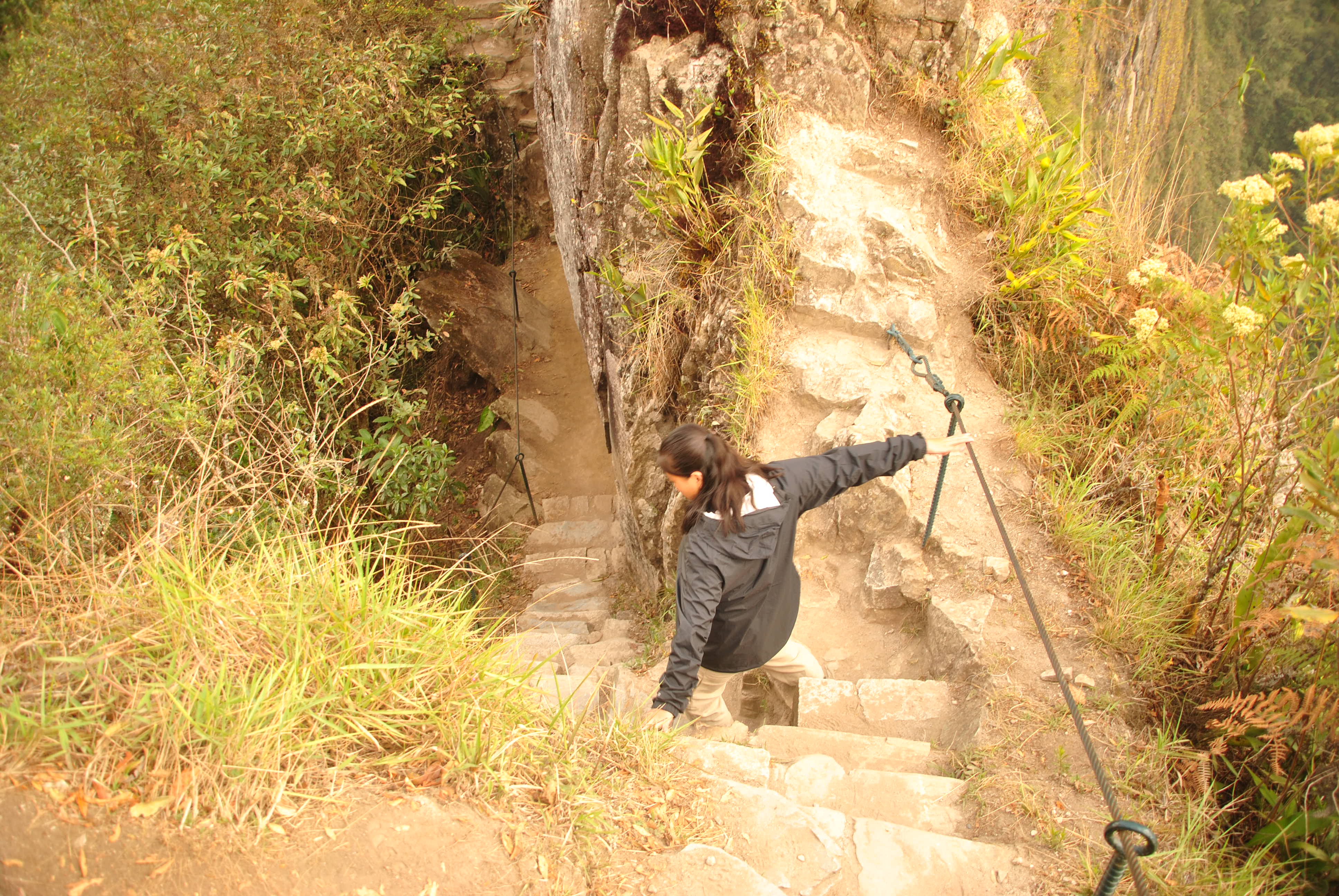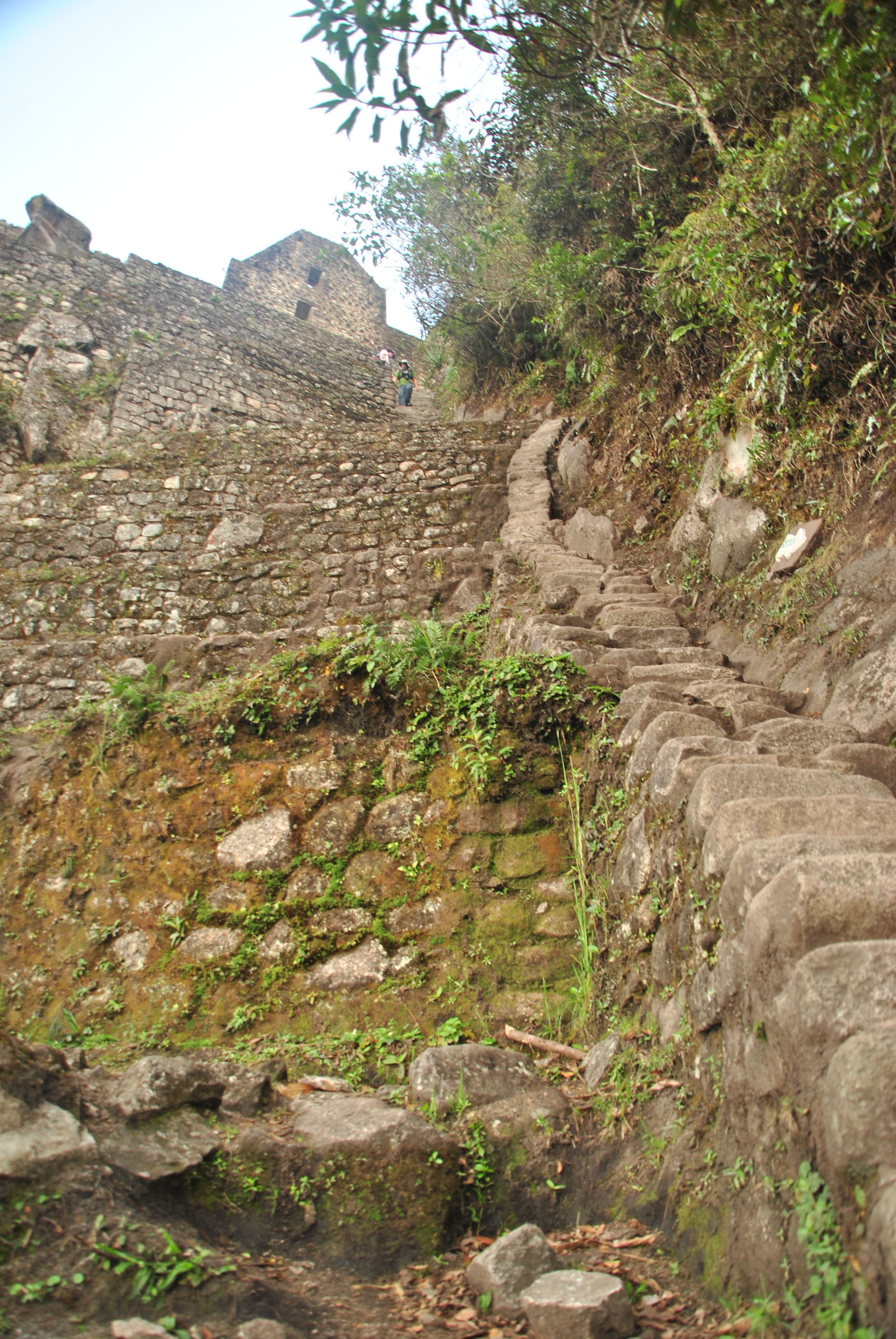 At long last we finally reached the regular path, and it was much easier from there on out. I was still holding on to all the cables on the way down but I felt much more comfortable because I knew this path wasn’t as treacherous, and there were no more steep drop offs to deal with. Going down this part was definitely easier on the legs than going up, and we made much quicker process. Finally we crossed back over to Machu Picchu, and when the path started going upward again, I knew we were close to the finish.