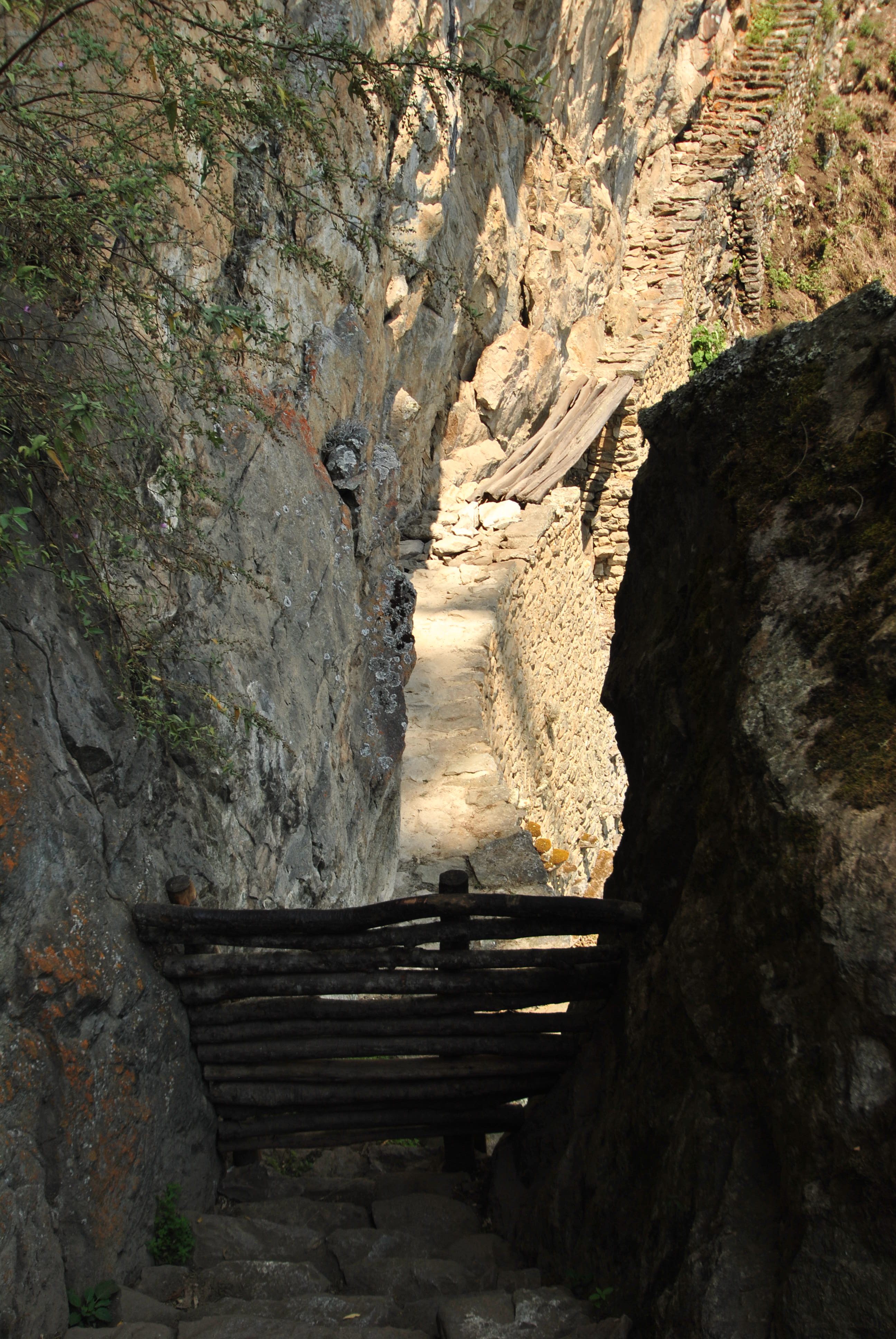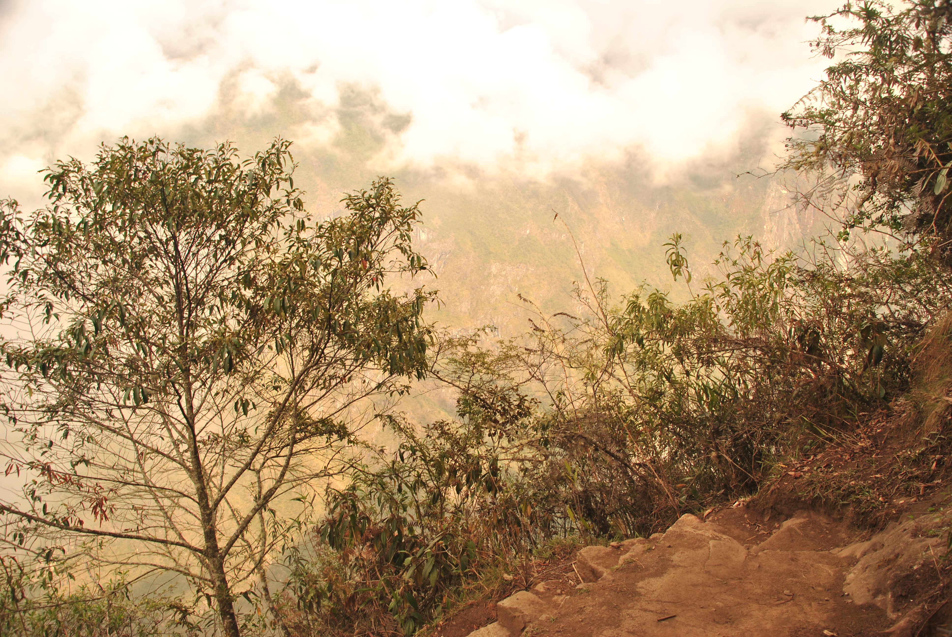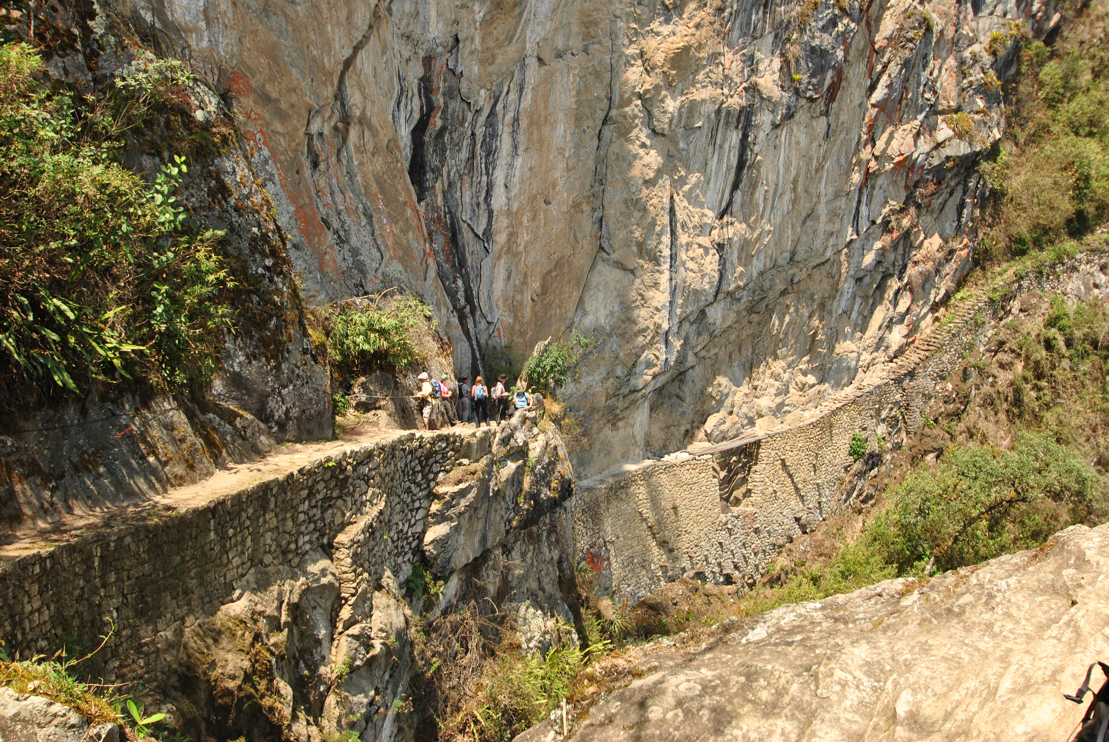 Narrow path and sheer drop off. You can also see the Inca Bridge to the right.