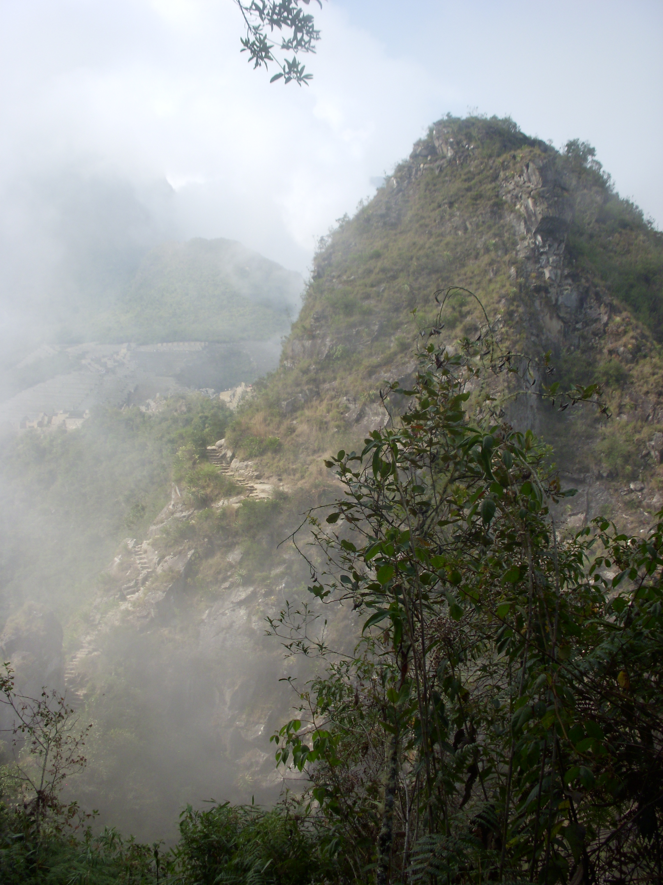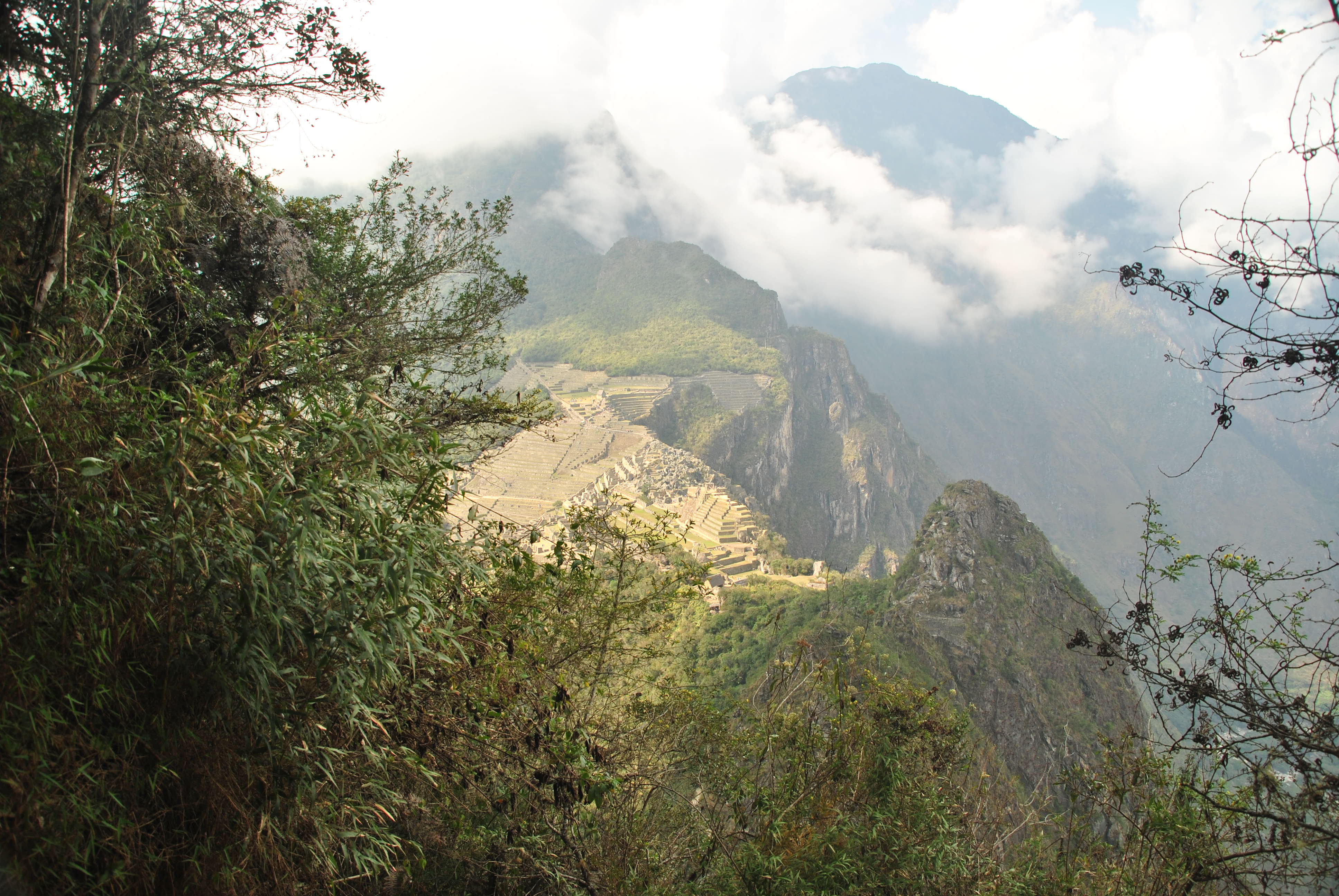 Once we had gone up a good distance, we looked down and could see Machu Picchu peeking out between the trees. The smaller it got, the happier we were, as it meant we were getting closer to the top.