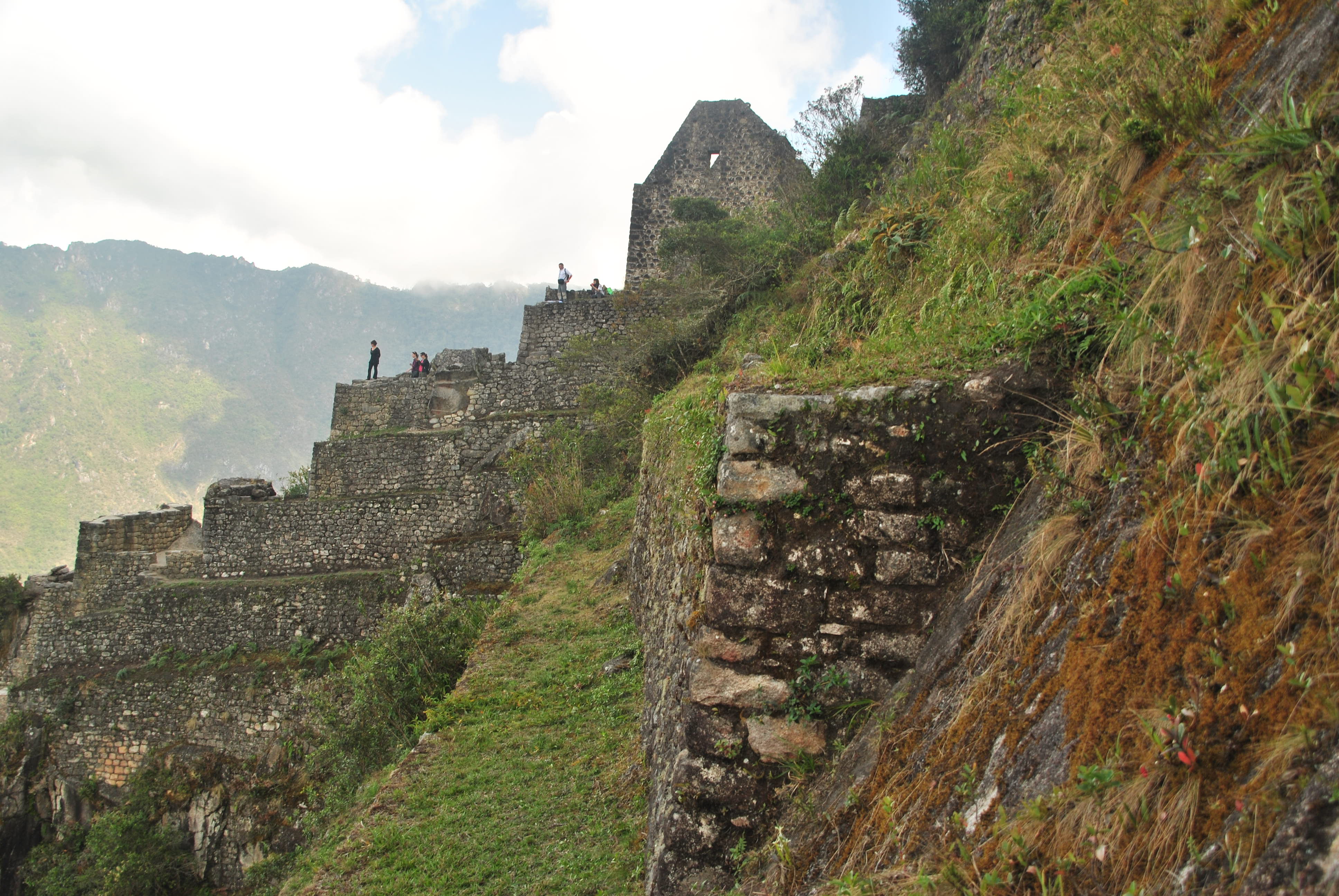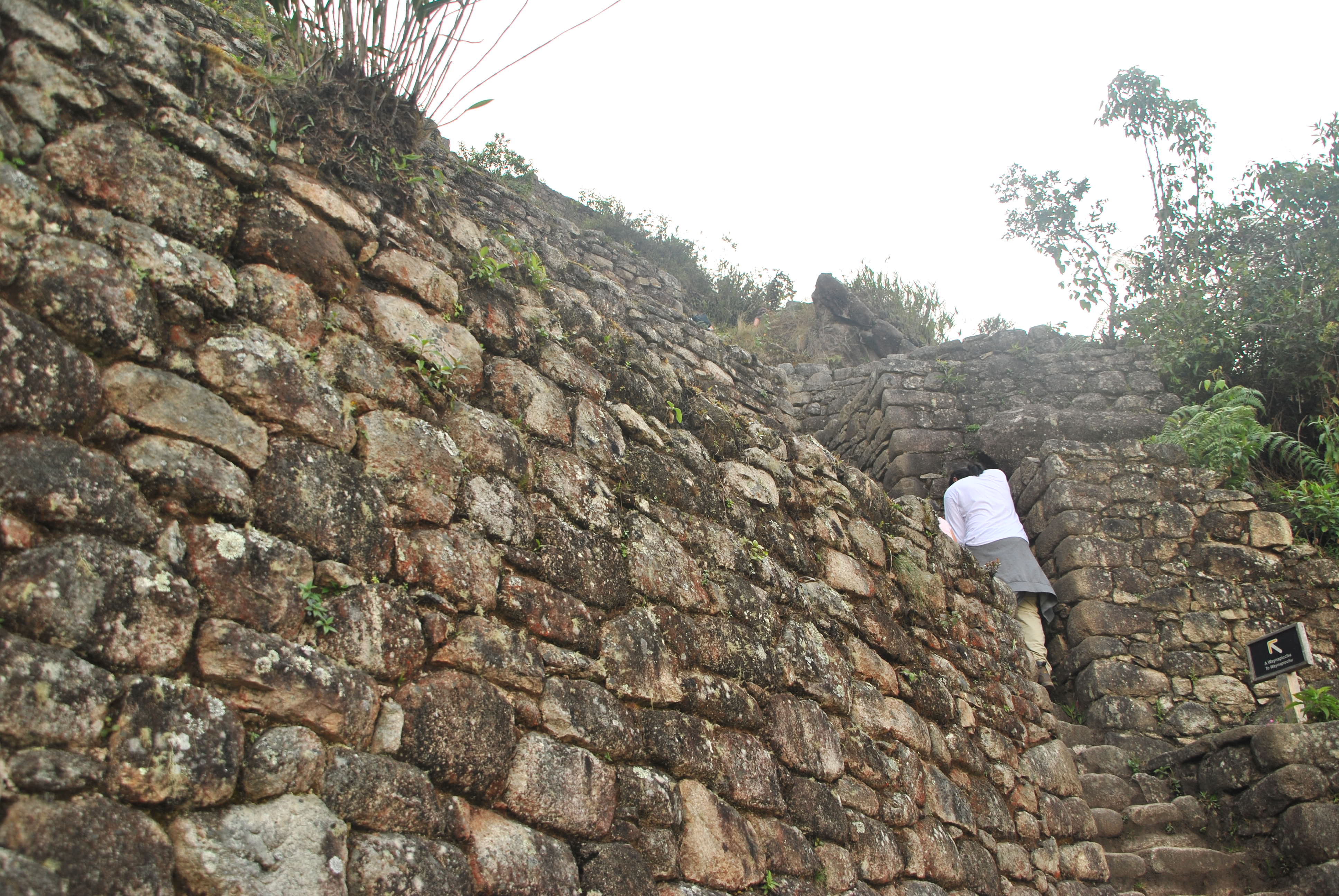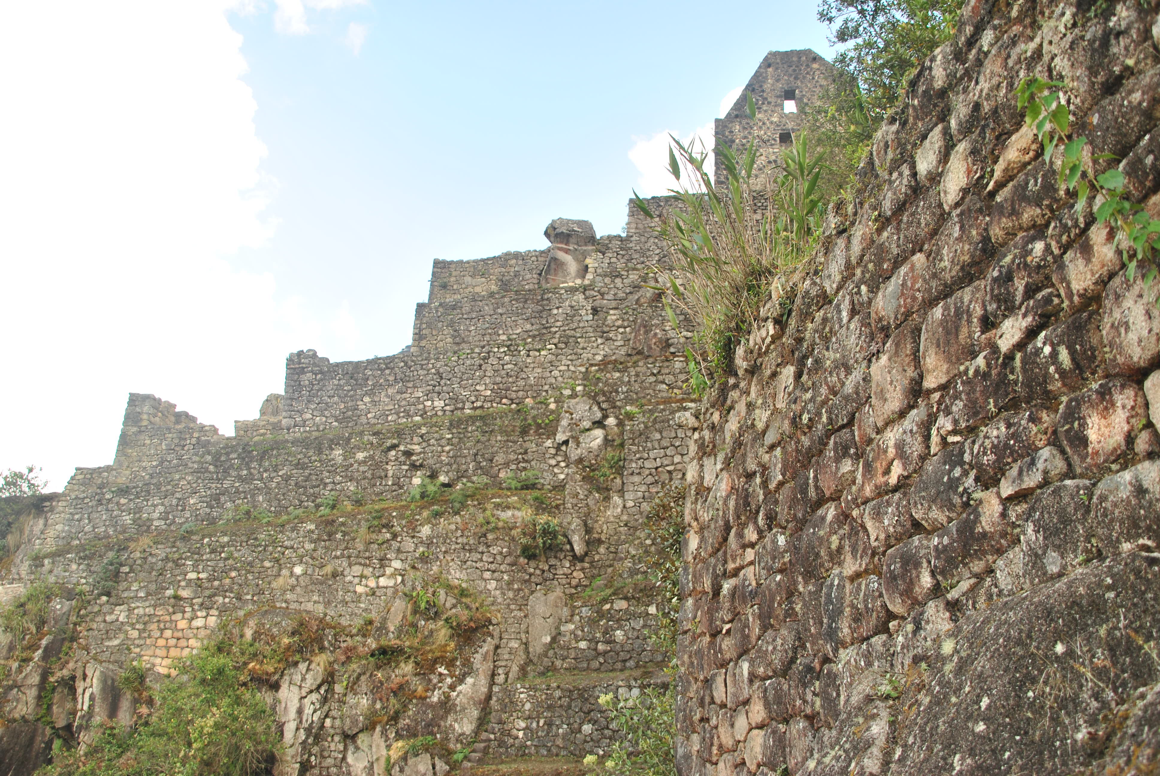 Eventually we reached a cluster of Inca structures, and we knew the top couldn’t be so far away. Unfortunately, this was the most treacherous part of the hike. The structures had narrow and steep stairs running along the sides, but no cables to help us climb. I guess they didn’t want to ruin any of the incredible stonework by screwing in metal bolts everywhere but it was incredibly hard for me to go up all those flights of stairs with nothing to hold on to. I ended up clinging to the walls with my hands, grabbing anywhere that jutted out so that I could get a decent grip. It was pretty awkward but it did the trick.