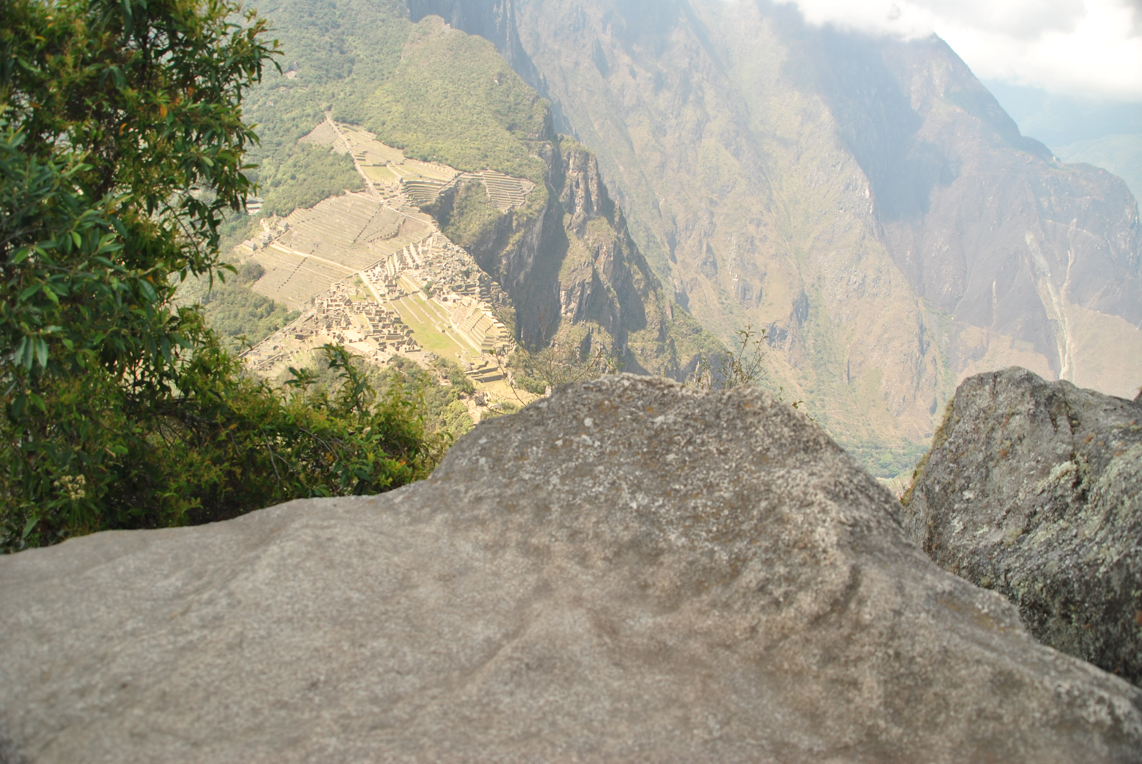 When we were finished, I quickly crawled back into the middle of all the rocks and sat down, and only then would I take in the amazing 360 view. And what a view it was. We could see the beautiful green peaks of the mountains all around us, and a beautiful view of Machu Picchu in its entirety. We sat there for a while and just appreciated the scenery, but we knew that the next wave of people who started at 10 am would be arriving soon, and it wouldn’t be fair to make them wait for their turn at the top.