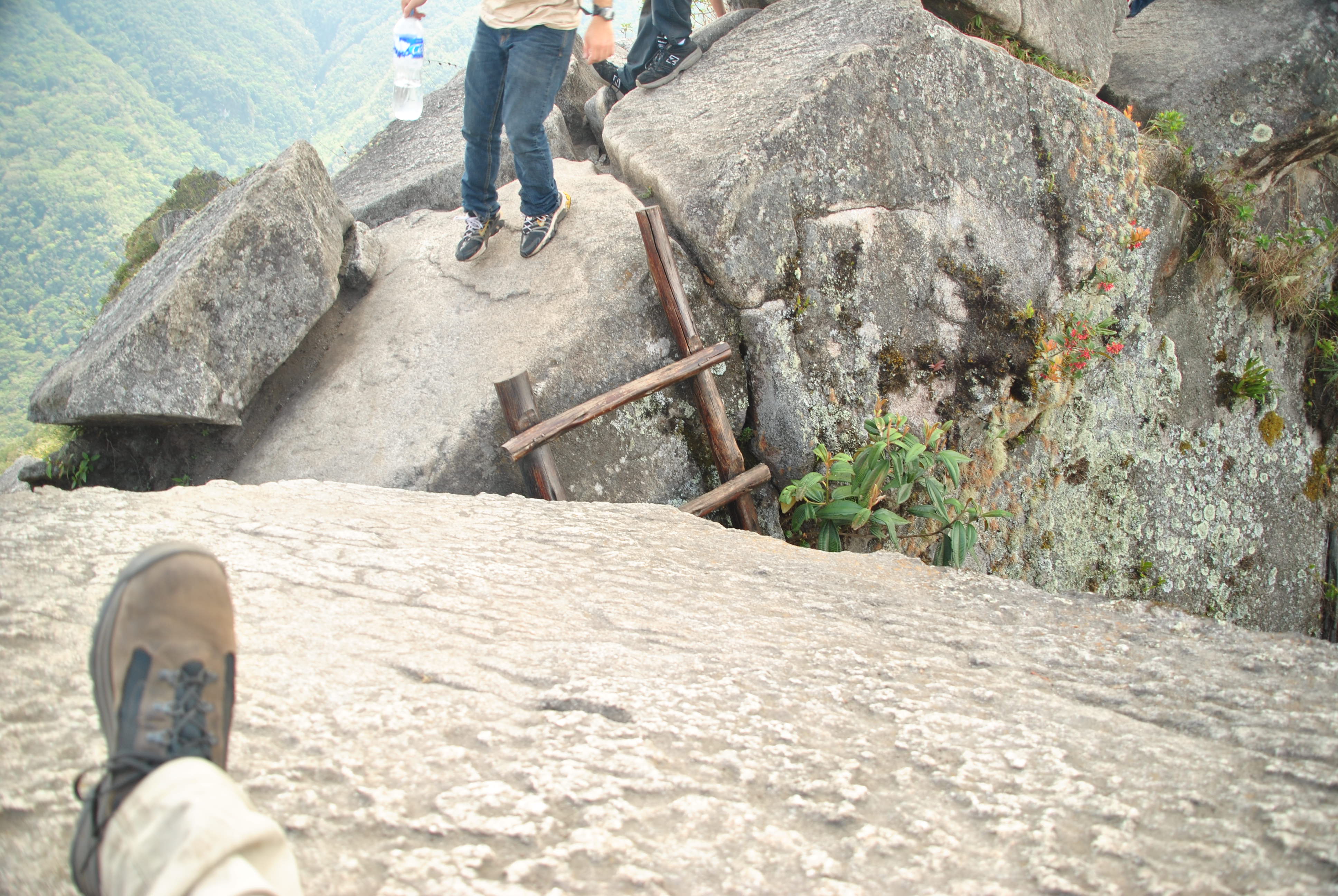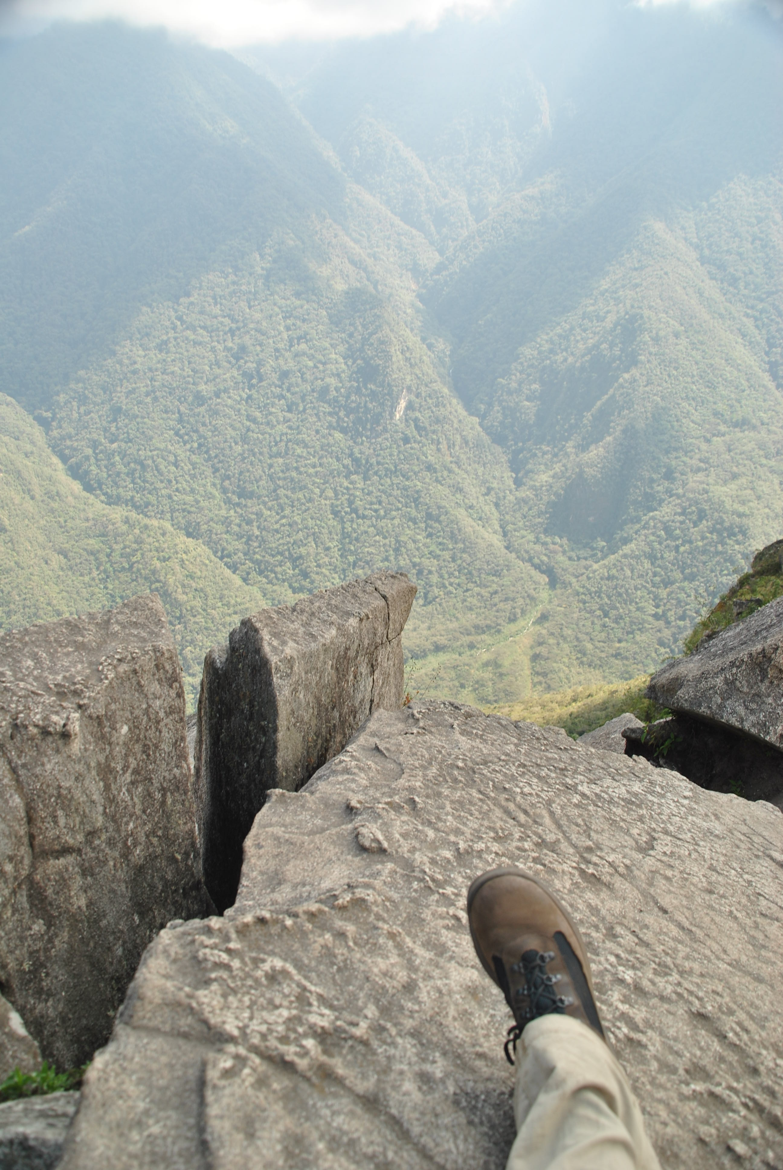 Once we got to the top of the structures, I knew we had to be close to the peak. After ducking into an opening in the rock wall and actually having to crawl through some narrow crevices, we finally arrived at a ladder that took us to the top of Huayna Picchu. I took a deep breath and climbed up, with Josh following close behind.