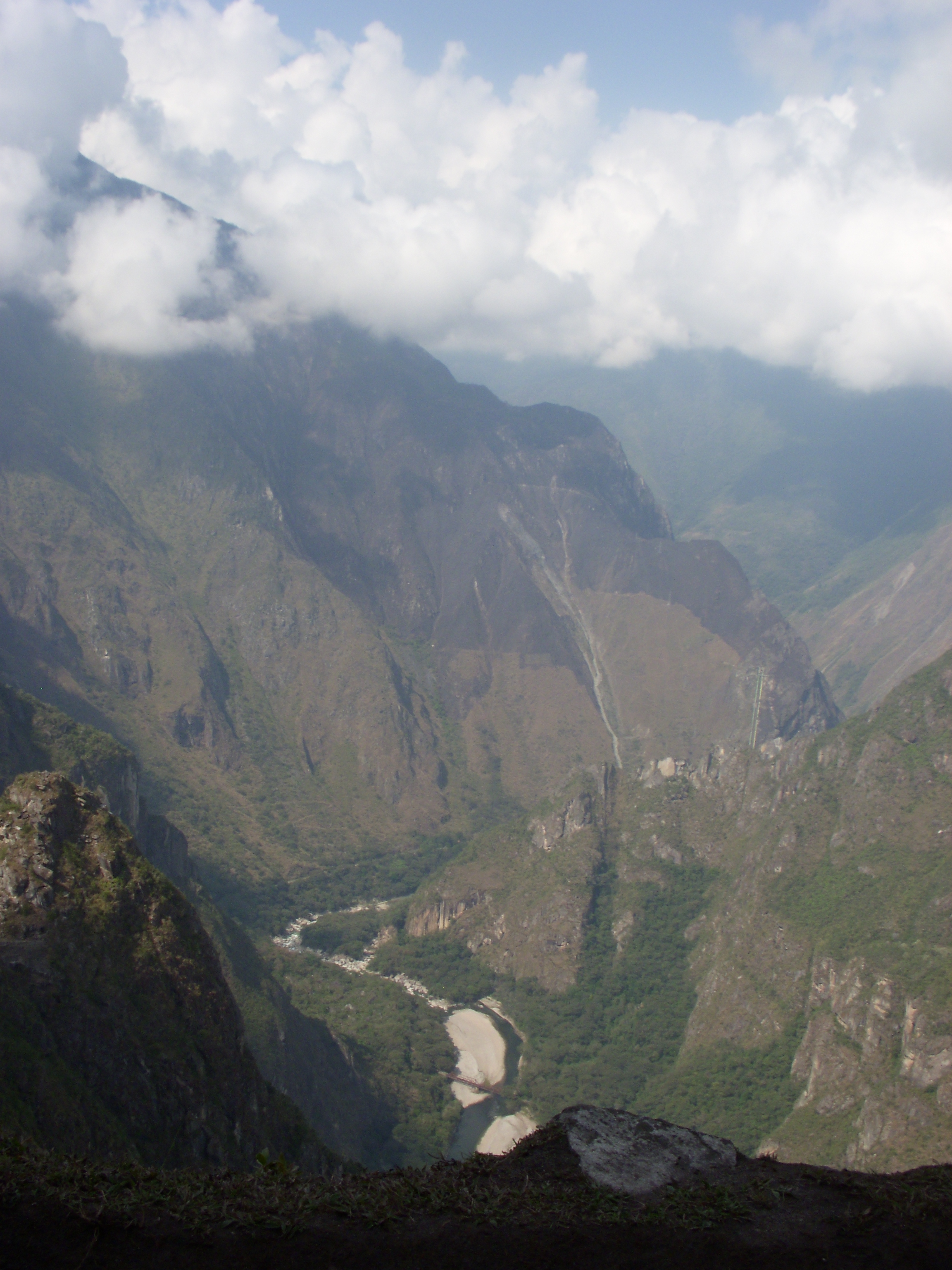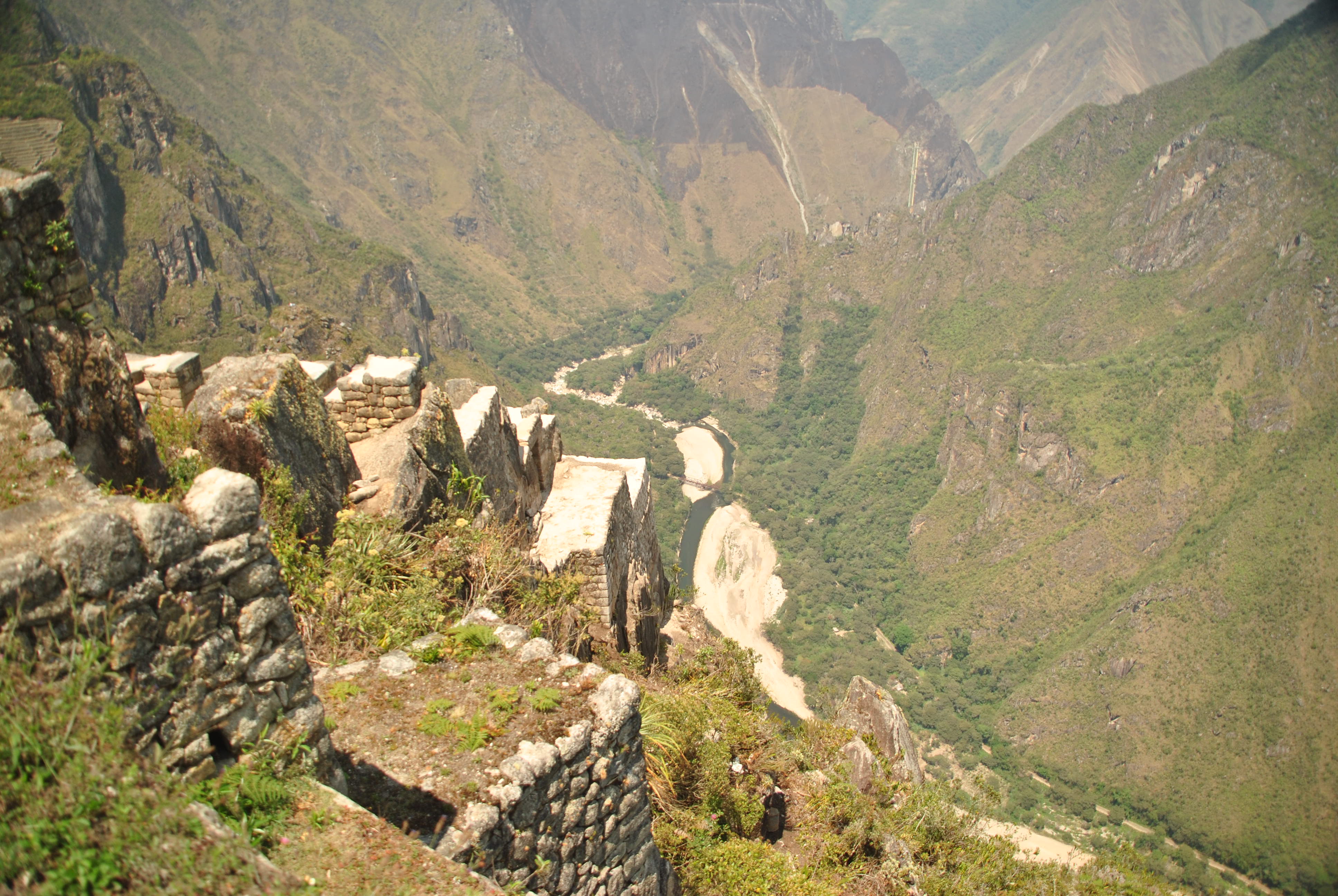 The path did get pretty narrow at some points, and there was either only a really low wall (about a foot high at most) or nothing at all, so that I could see the sheer drop off to one side. I just walked close to the wall the whole way, and tried not to think about it. The hairiest part was right at the end of the hike. The path that led directly up to the Inca Bridge was really narrow and there was no barrier to the cliff side. There was a rope attached to the mountain wall but it was stretched out and basically useless, because you could pull it past the edge of the cliff. Plus it was really windy at that point, and I felt like I was going to blow right off the path.