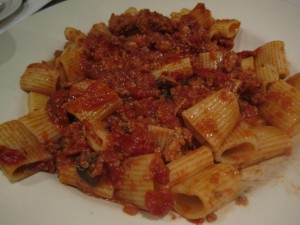 The pasta we chose was the rigatoni bolognese. The individual portion size was plenty of food, and we each had a large scoop of pasta with enough leftover for my lunch the next day. The bolognese was meaty but not super rich. It had a sort of red wine flavor to it though there wasn’t a lot of tomato sauce to bind the meat together. It was decent, though definitely a pizzeria style of bolognese. The rigatoni was a good match and cooked to a nice al dente.