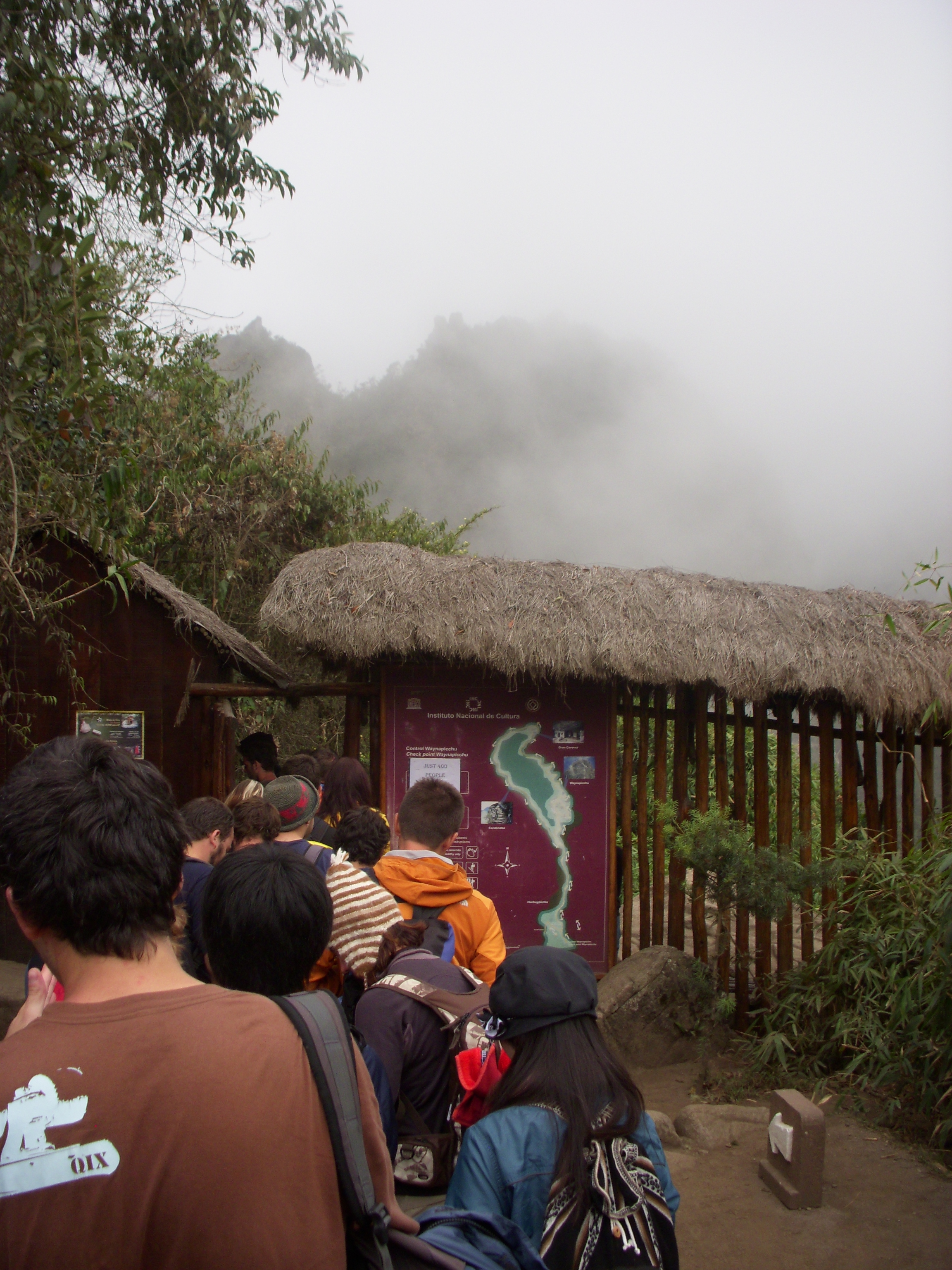 It was pitch black outside still, and it was kind of chilly. There was a mist hovering around us, and we were worried that it would turn out to be a rainy day. If conditions are too bad, they won’t let people climb Huayna Picchu because it’s too dangerous. We stood in line and just waited, watching as the line grow longer and longer behind us.