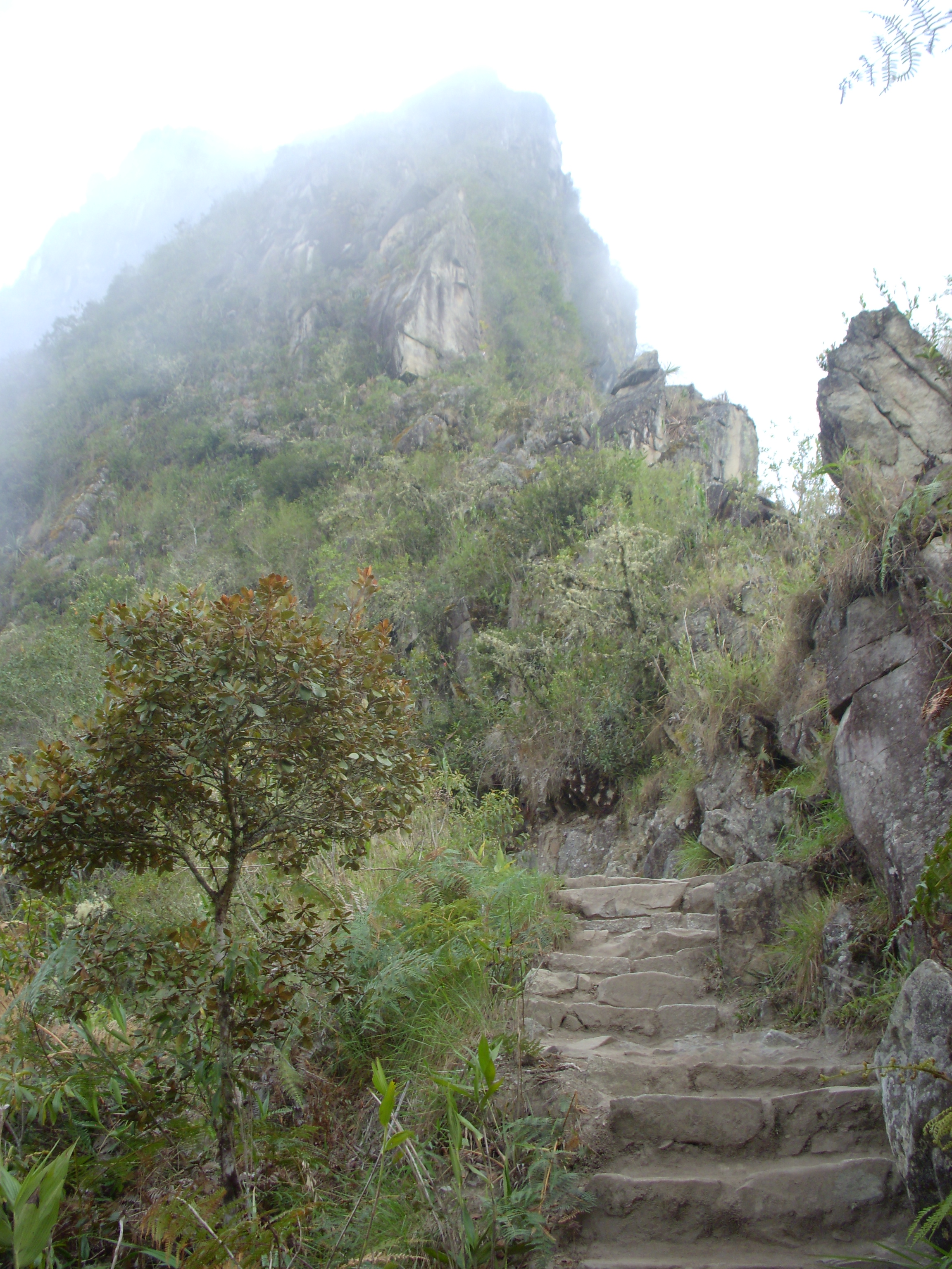 It was still misty by the time the sun rose, and the mountains were cloaked in a pretty dense gray fog. We finally reached the entrance gate and immediately found the guy who was stamping tickets for Huayna Picchu. We were thrilled when we were able to get stamps for the 7 am time slot, and I immediately felt relieved that we wouldn’t have to rush to get back in time for the train. We had heard varying reports of how long it would take to climb to the top, and I knew that I would want to take things slowly because of my fear of heights.