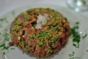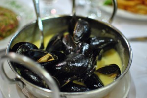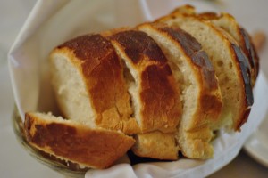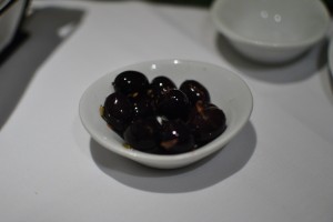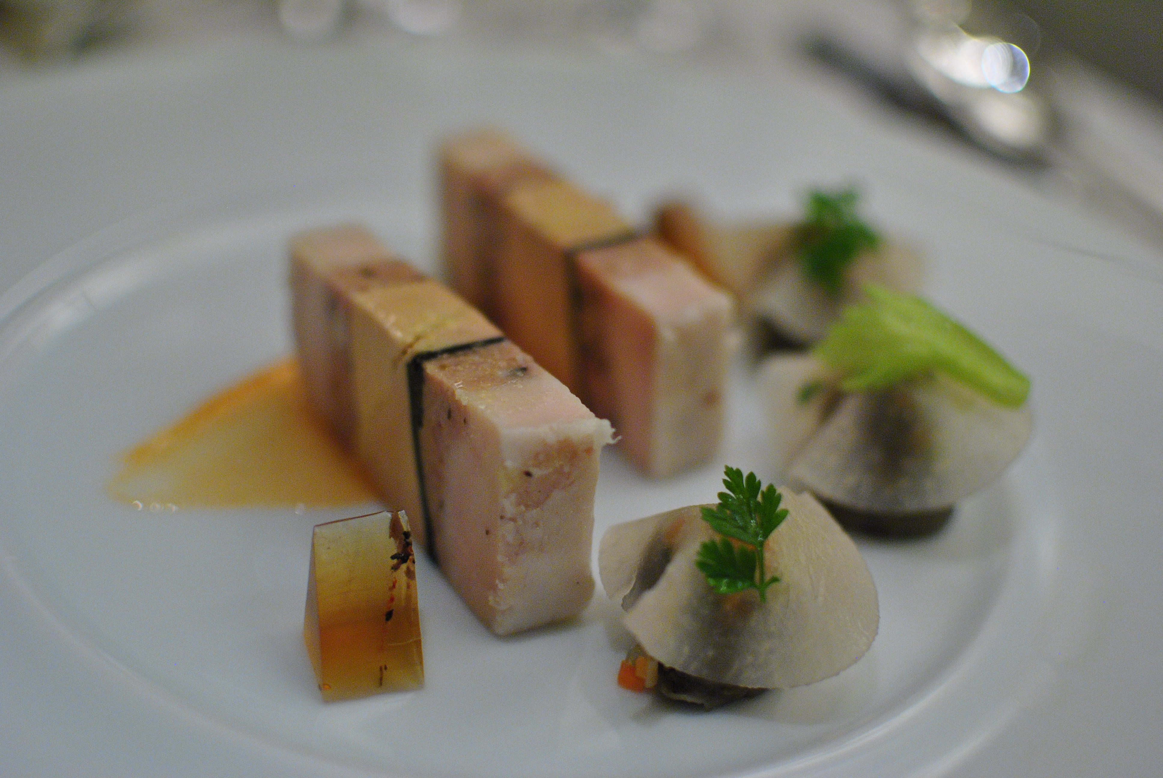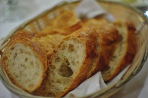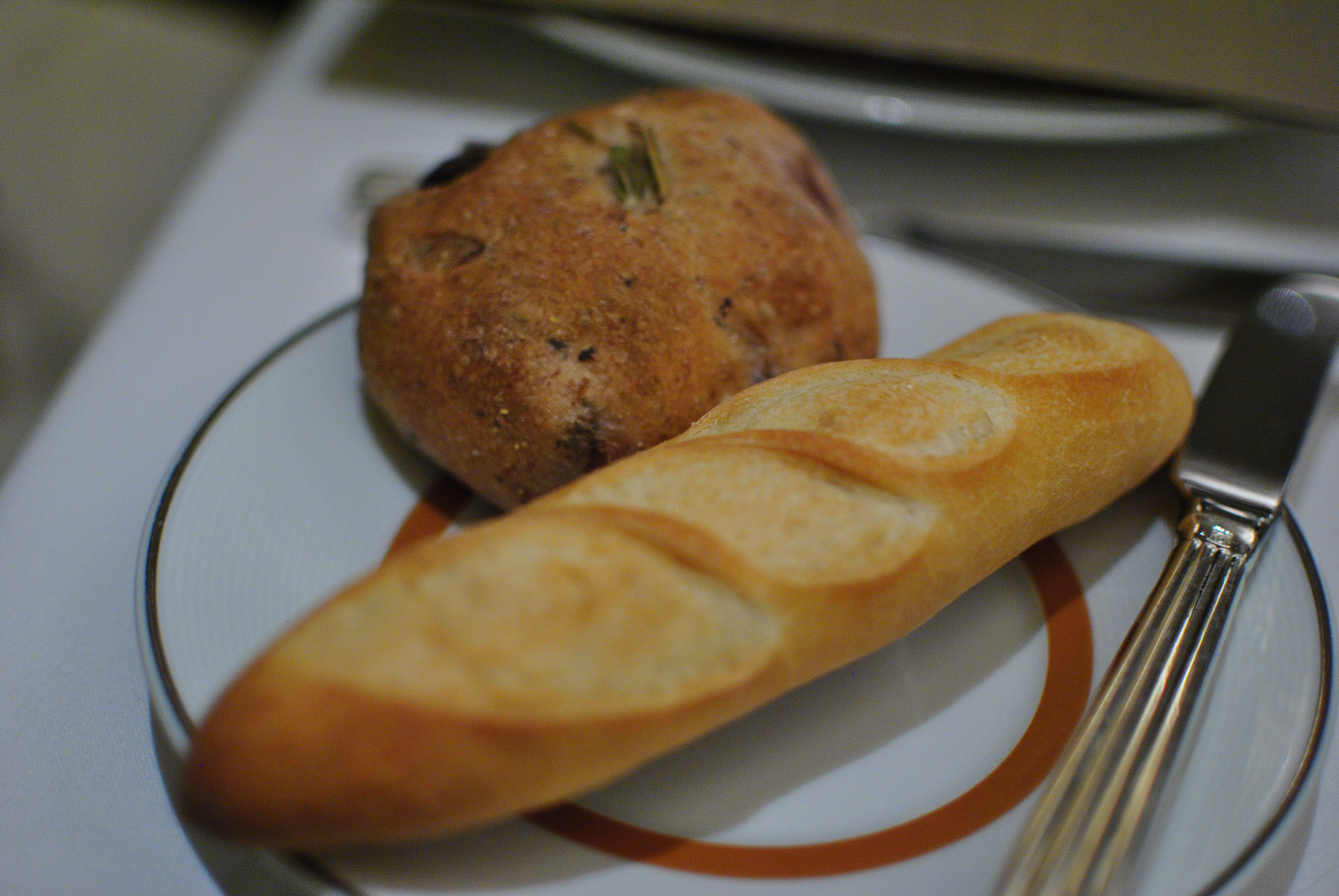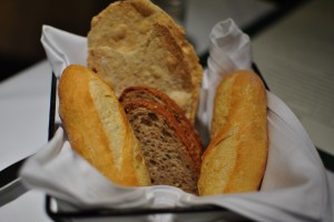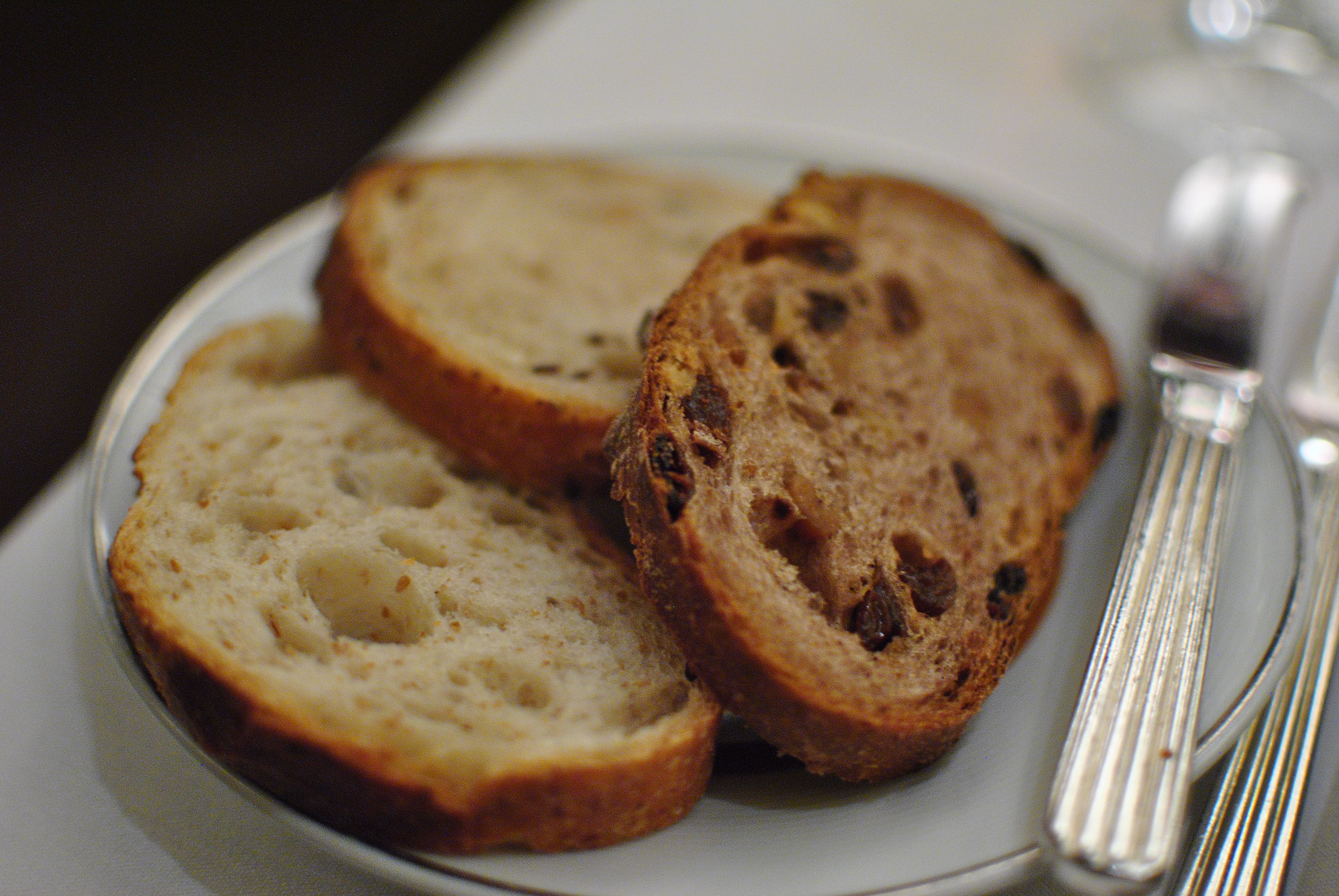 After making our selections, we settled in to enjoy our meal. First was a visit from the bread man, who happily gave us a piece of each bread to try. In addition to the usual baguette, there was an olive rosemary roll and slices of sourdough, pumpkin seed, and raisin bread. While the sourdough was a bit bland, the pumpkin seed bread was interesting. It really was chock full of pumpkin seeds, giving it a salty, nutty taste. The raisin bread was good but I liked the baguette (of course) and the olive rosemary roll best. Both had hearty crusts and flavorful, chewy insides. I only wish that the bread was served warm, but at least the bread guy came by often to check if we wanted more bread.
