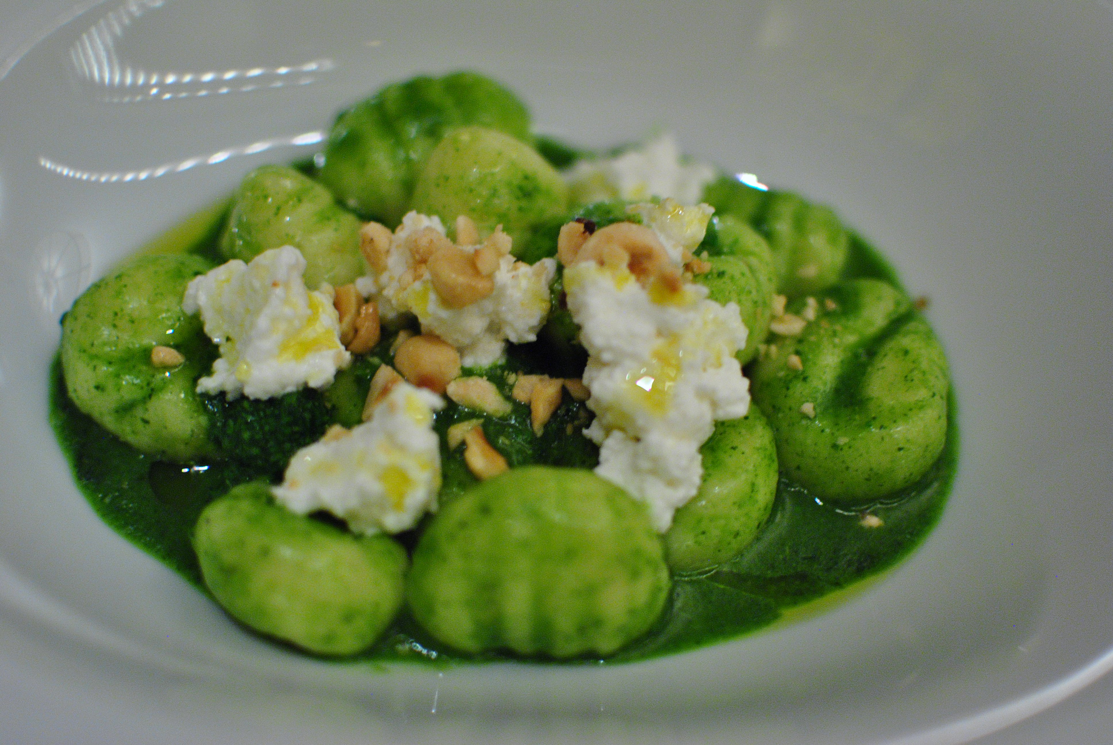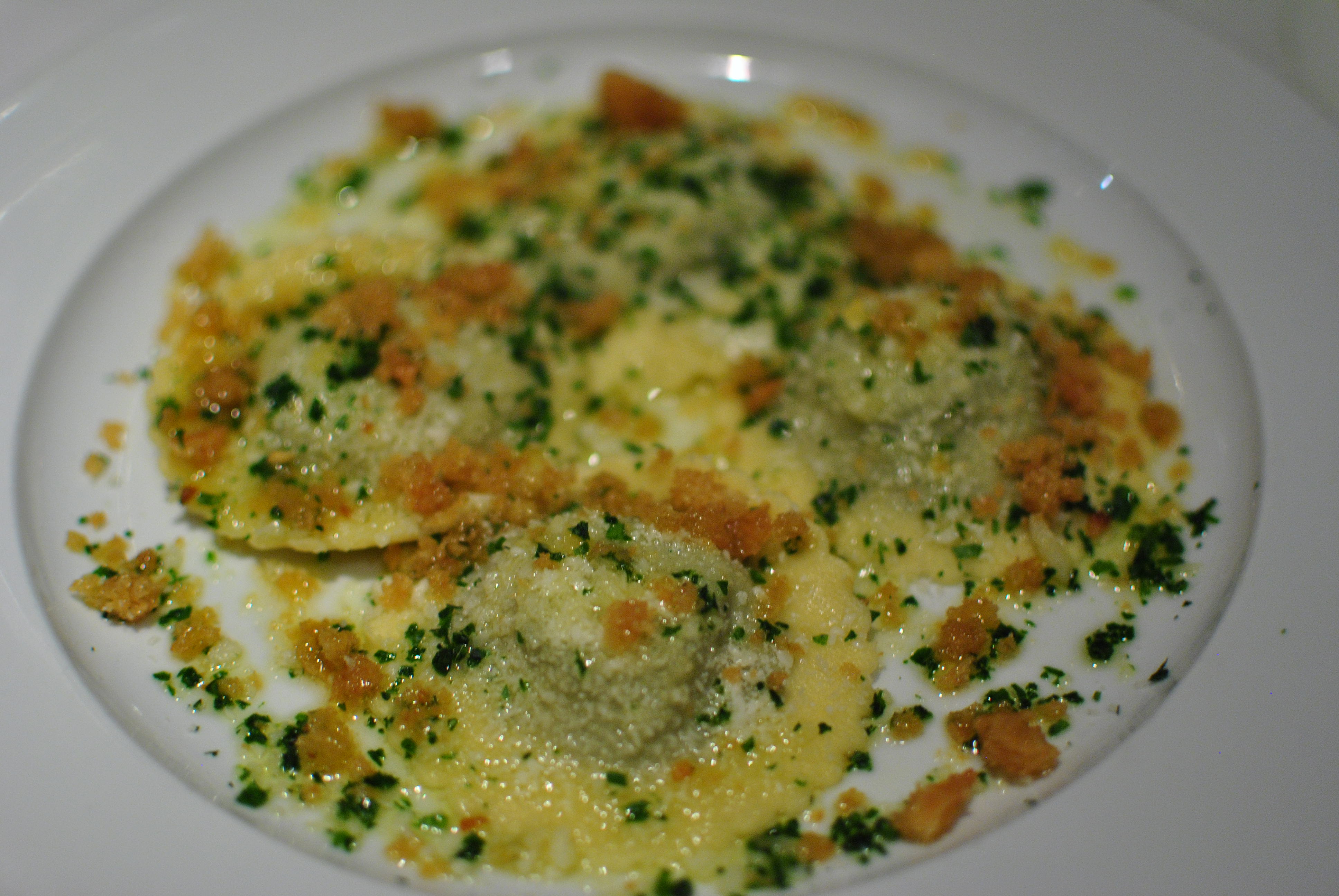 For our pasta course, we got appetizer portions of the sheep’s milk ricotta gnocchi and the celery root agnolotti. The gnocchi were enrobed in a broccoli rabe puree that was light and fresh, not bitter at all, and topped with dollops of ricotta, chopped toasted hazelnut, and a drizzle of olive oil. The gnocchi themselves were creamy and not the least bit dense. I liked that there were still bigger pieces of broccoli rabe mixed into the puree, adding texture to the dish, but I wasn’t a huge fan of the chopped hazelnut. While it gave a nice little crunch, I found the flavor of the hazelnut to be overpowering, ruining the delicate tang of the sheep’s milk ricotta. I would have preferred toasted breadcrumbs instead, which I thought worked well with the ravioli we had at the Union Square Cafe. Josh liked the hazelnut though, so I guess it’s a personal preference. Nevertheless, it was a very delicious dish.