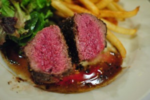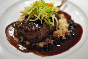 The pan seared striped bass was perfectly cooked – the skin was crispy while the flesh was flaky yet meaty. The bass was served on a white bean cassoulet with mushrooms. The menu also said there was pork belly, but we didn’t see any visible pieces. I think perhaps it was mixed in with the sauce and cassoulet, because it tasted very rich and hearty. I loved the subtle sweetness of the beans and the earthiness of the mushrooms. It was a very well composed dish.