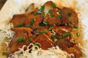 Josh saw peking duck on the menu and immediately jumped on it. Peking duck is one of his favorite dishes, but this version was like nothing we had seen before. It turned out to be thin slices of duck on a bed of deep fried rice noodles. There was no crispy skin, no wraps or buns, no strips of raw scallions or cucumbers, and no hoisin sauce. It definitely wasn’t peking duck as we know it, but at least the duck itself was tender, and the brown sauce it was doused in had decent flavor.