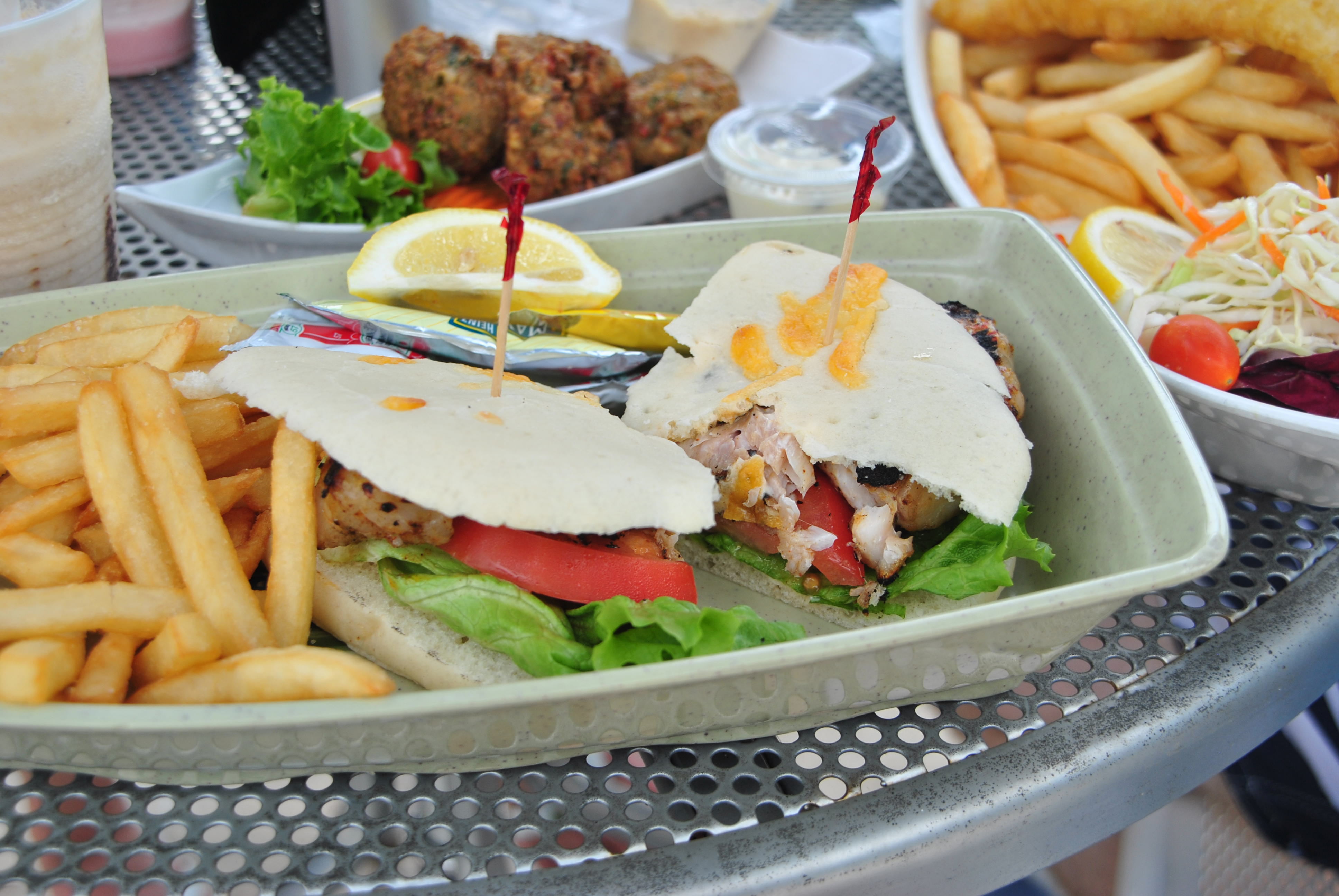 Jerk fish sandwich and fries