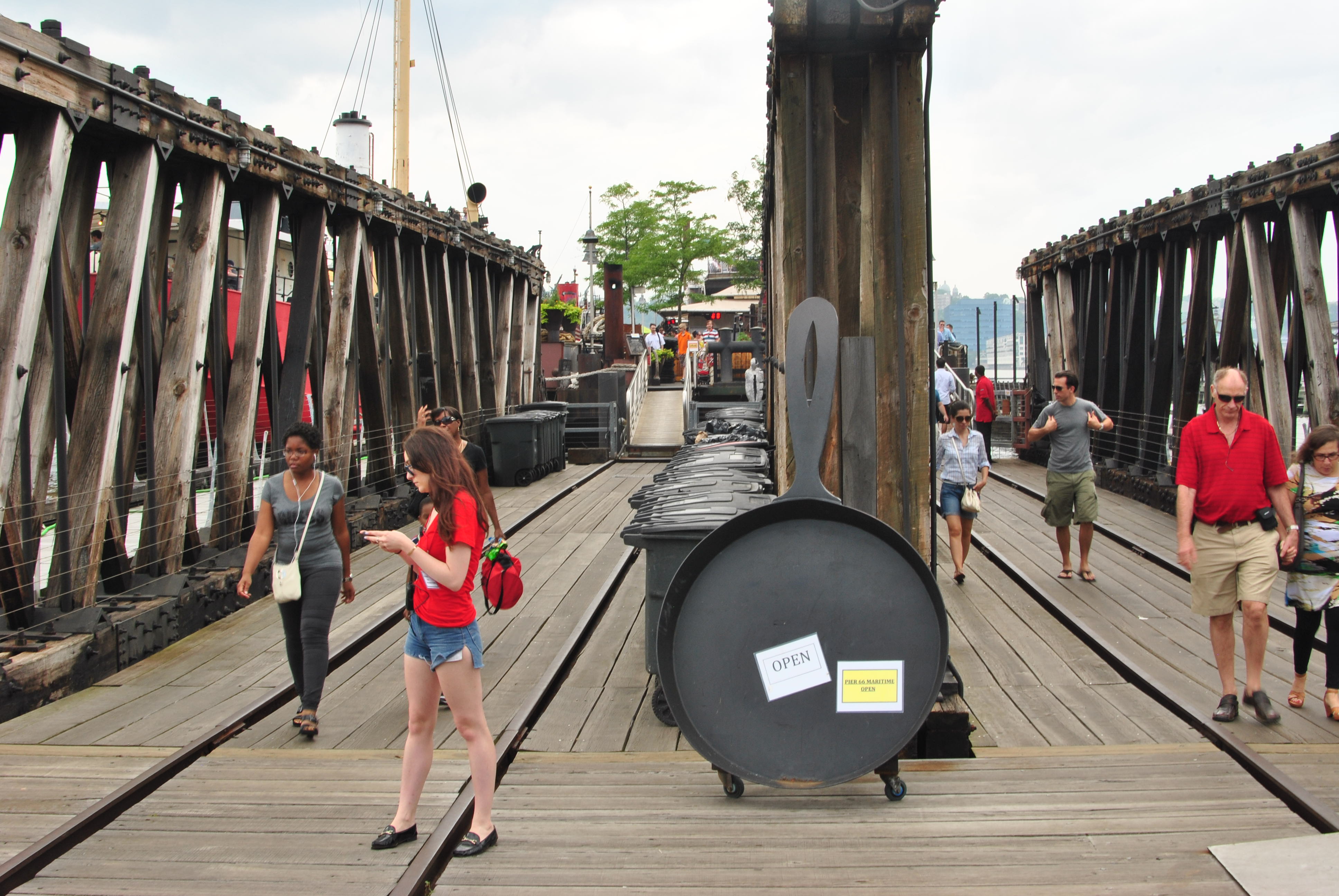 The Frying Pan is a historic ship that is docked next to a pier off the Westside Highway near 26th St. The pier features a seasonal bar and grill that opens when the weather is nice, generally from May to mid-October. It’s an extremely popular space, as the views along the Hudson are fantastic, and everyone enjoys the outdoor atmosphere on the pier.