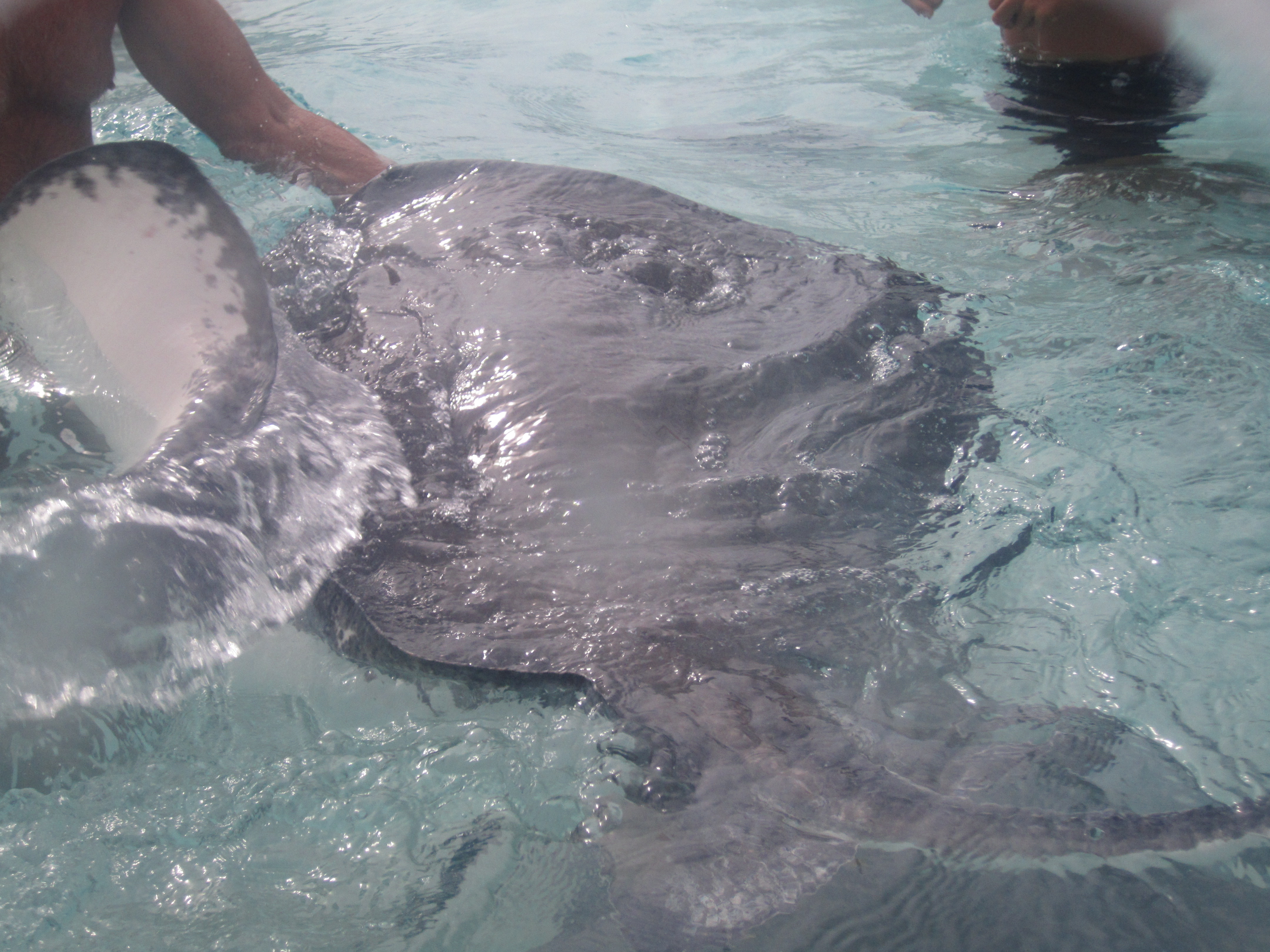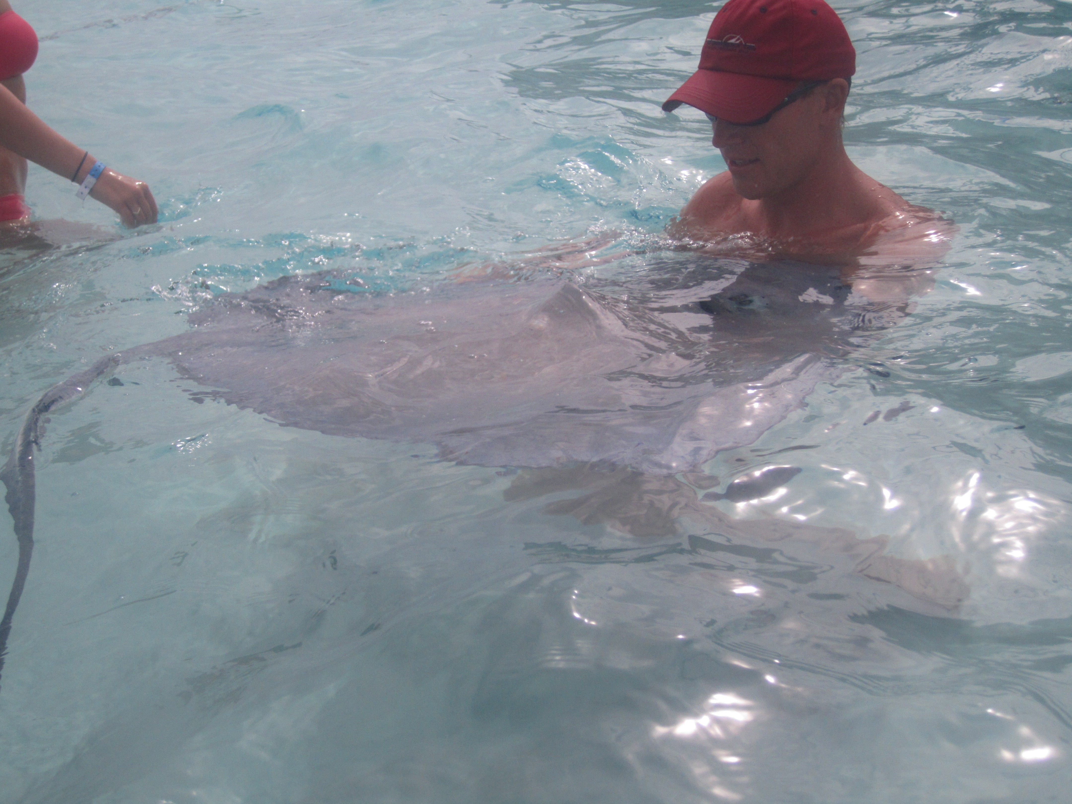 Some of the tour operators would “catch” a stingray and hold them up for us so that we could pet them and take a few pictures. The stingrays felt like wet, bumpy portobello mushrooms. Some of the braver folks (Mike, Sean) actually held the stingrays as well, propping them up with their arms underneath.
