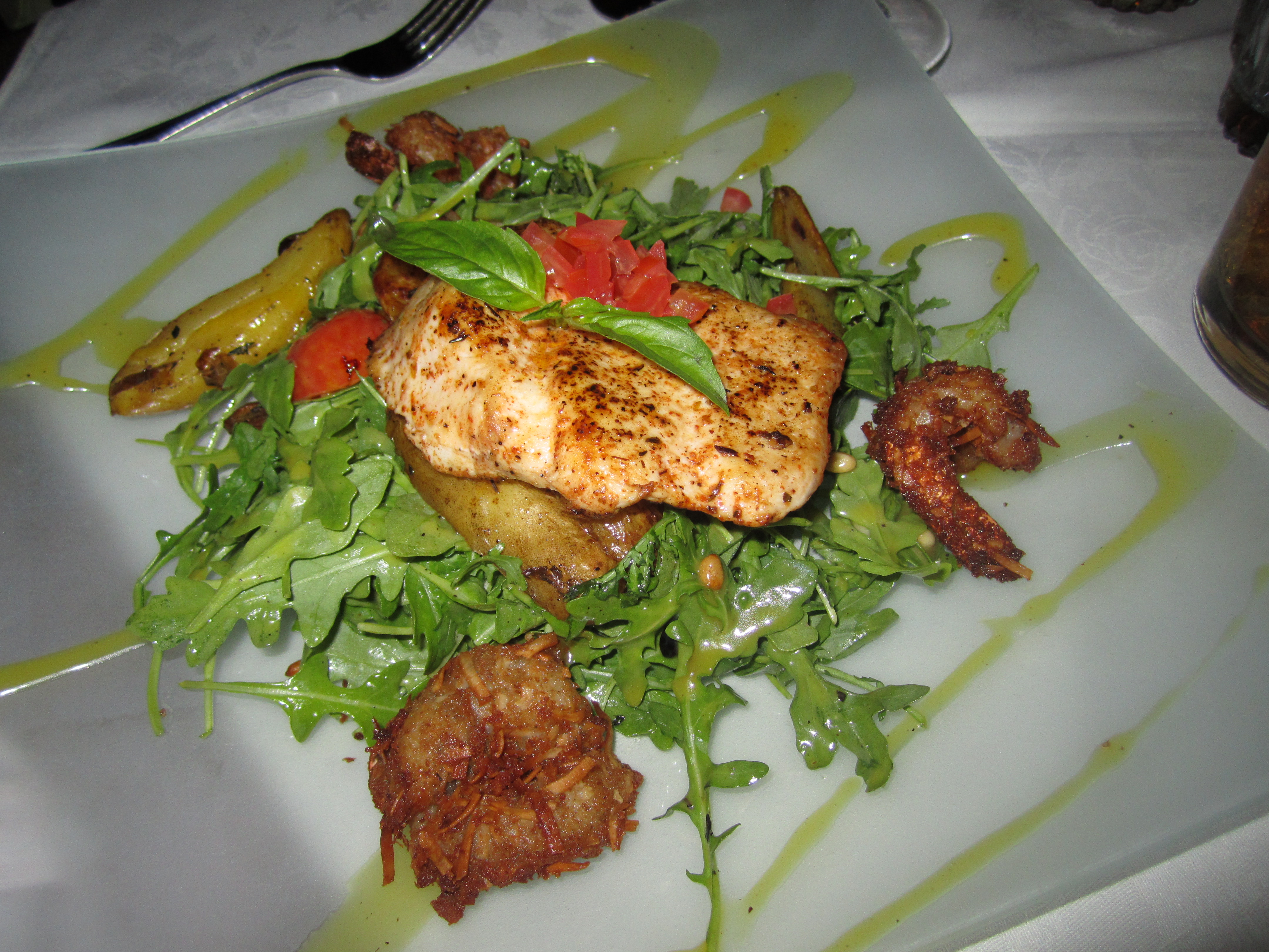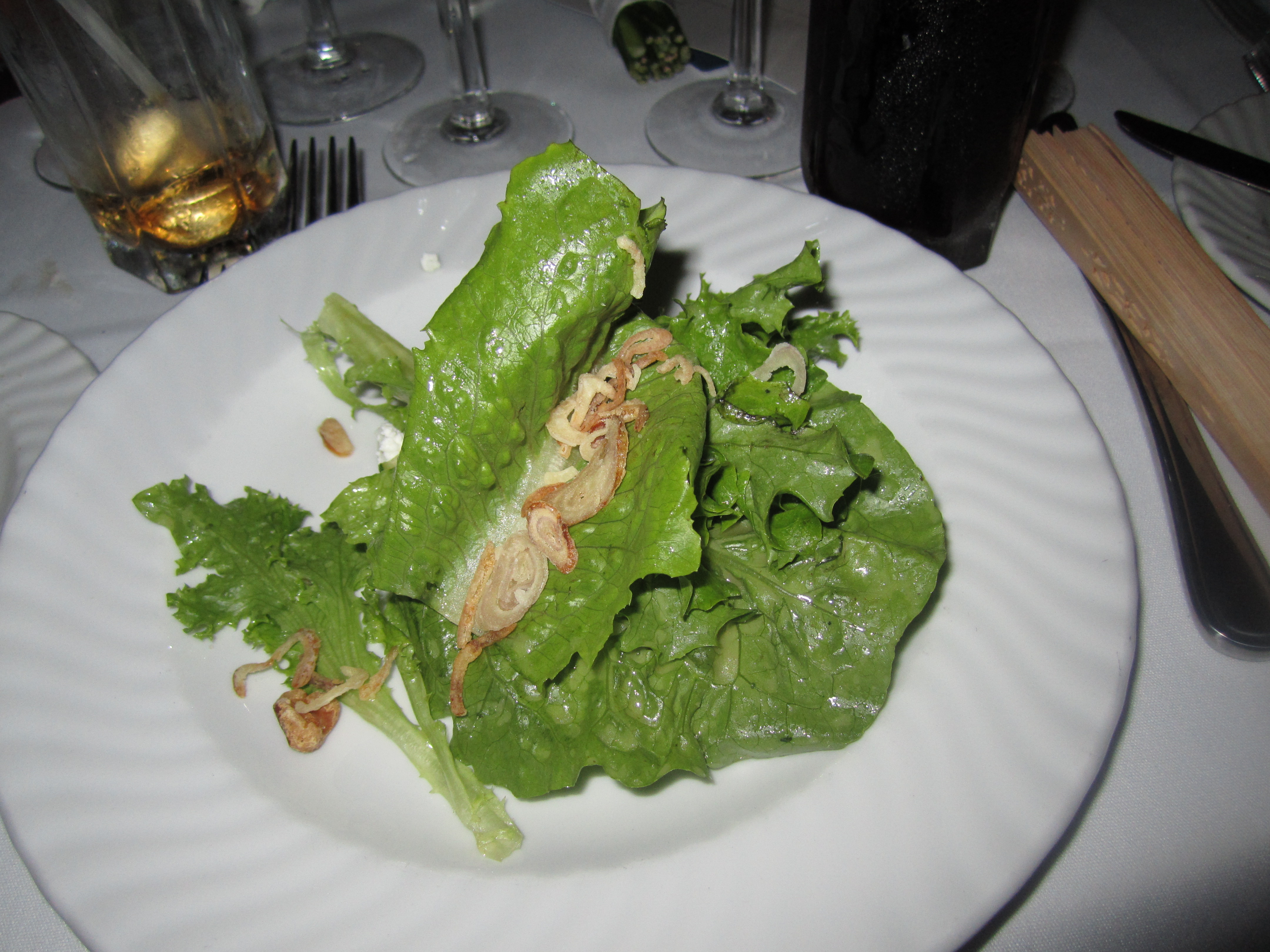 The first course was Florida greens with grilled zucchini, goat cheese, toasted walnuts and crisp shallots, served with a lemon vinaigrette.