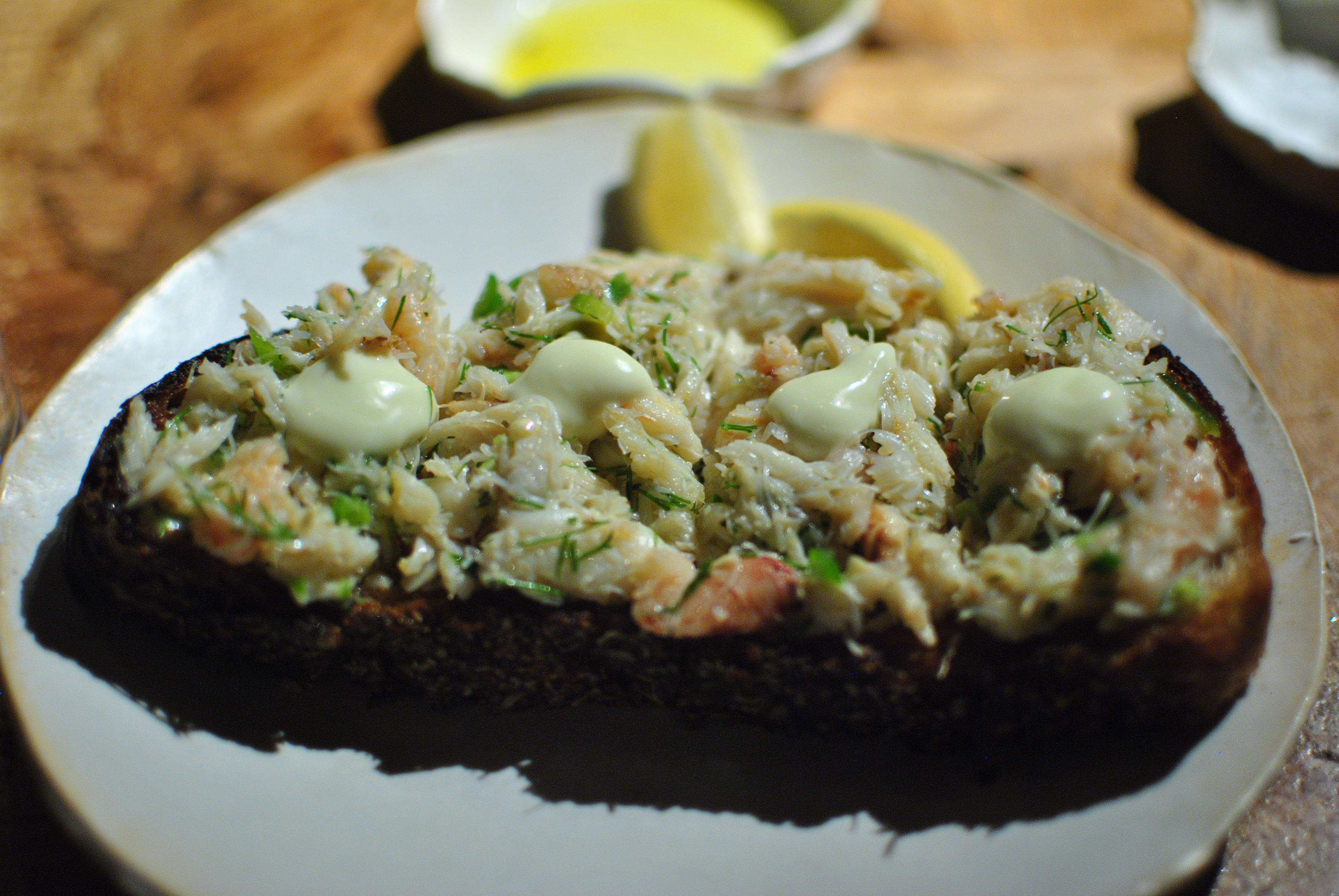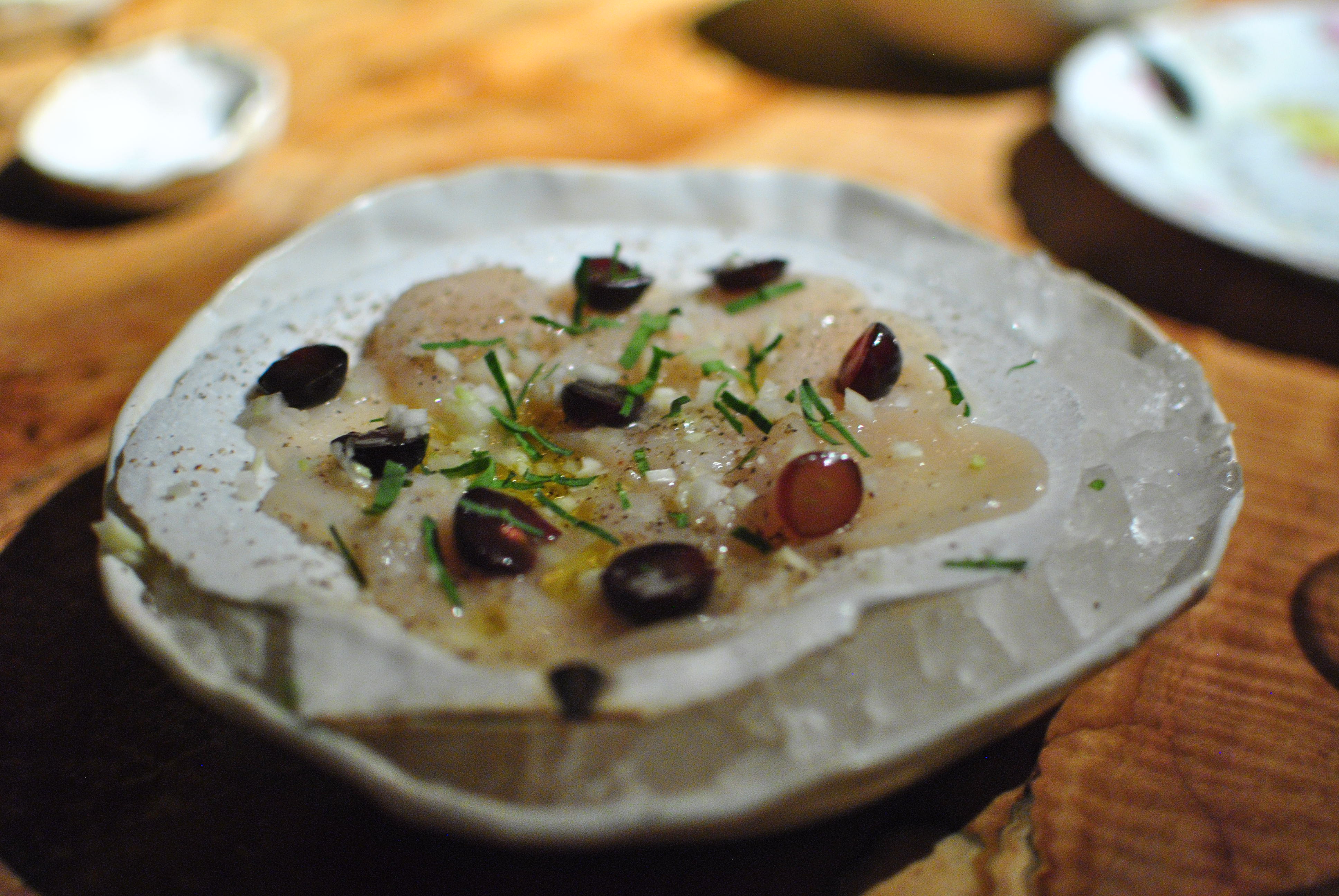 Moving on to the main portion of our meals, Josh and I split the raw diver scallops and the crab toast for our appetizer course. The scallops were thinly sliced and topped with market grapes and lemon verbena. The dish was beautifully presented in a scallop shell sitting on top of a bed of ice. The raw scallops had a lovely firm and meaty texture to them, and they were lightly dressed with olive oil and citrus. The combination with the grapes was a refreshing blend of tangy and sweet.