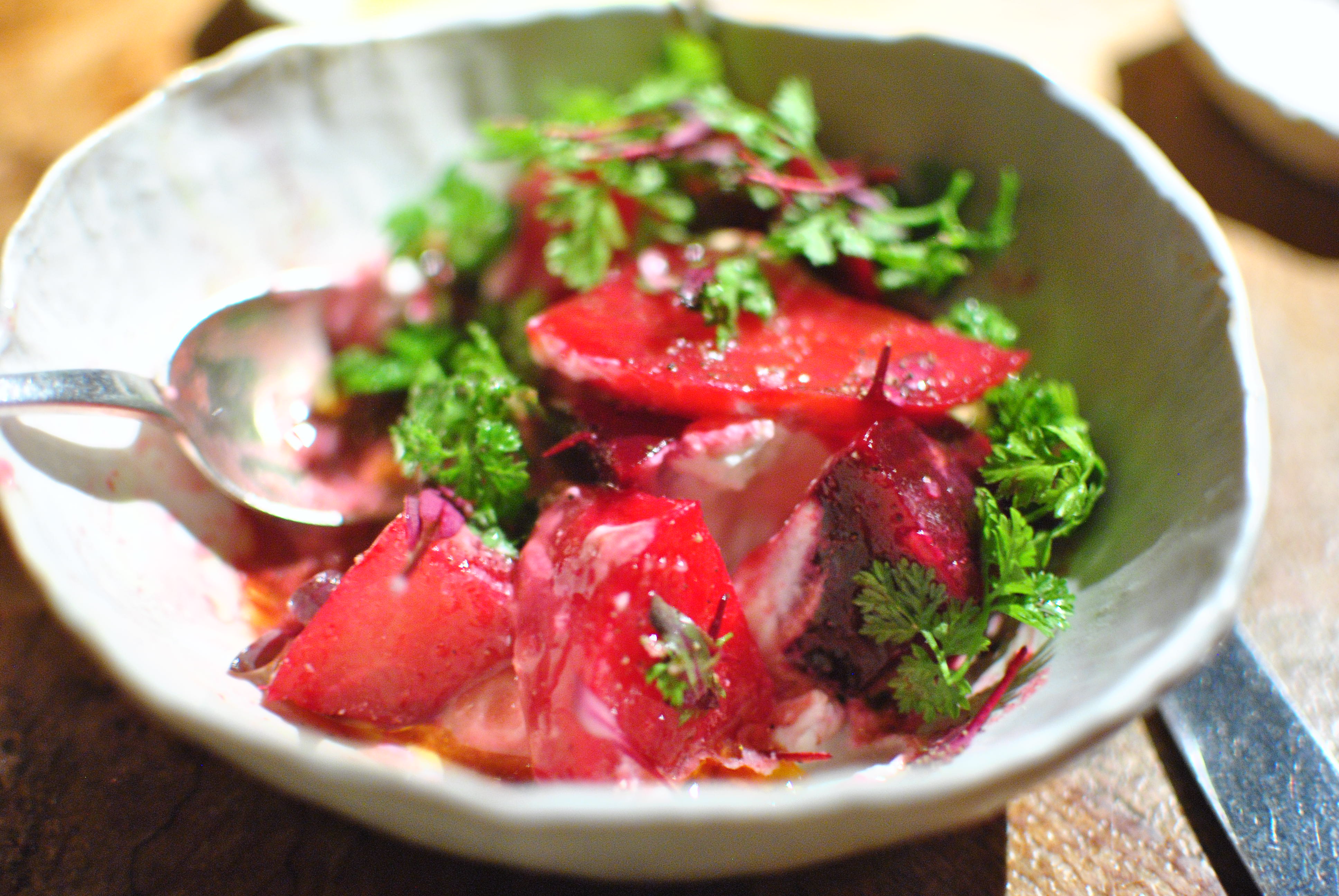 Next was an order of roasted beets topped with housemade yogurt. The beets were sweet and creamy, and the yogurt added a subtle tanginess.