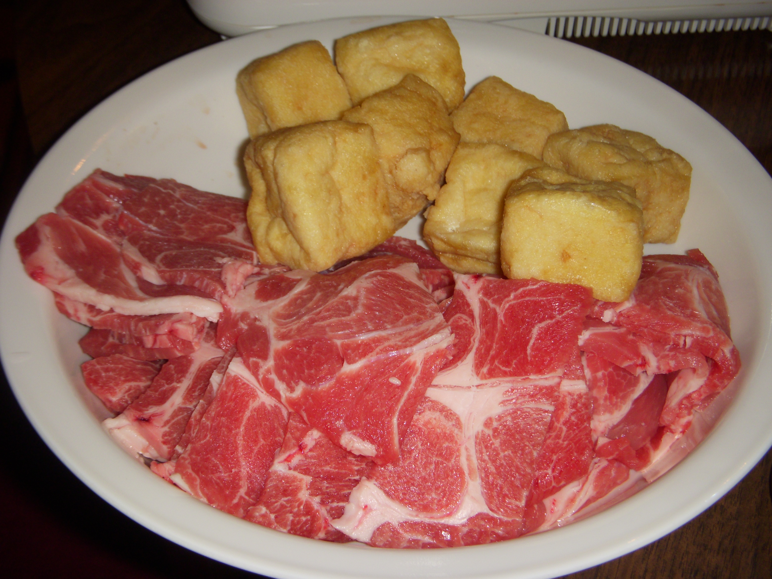 More tofu and pork ready to go into the hot pot