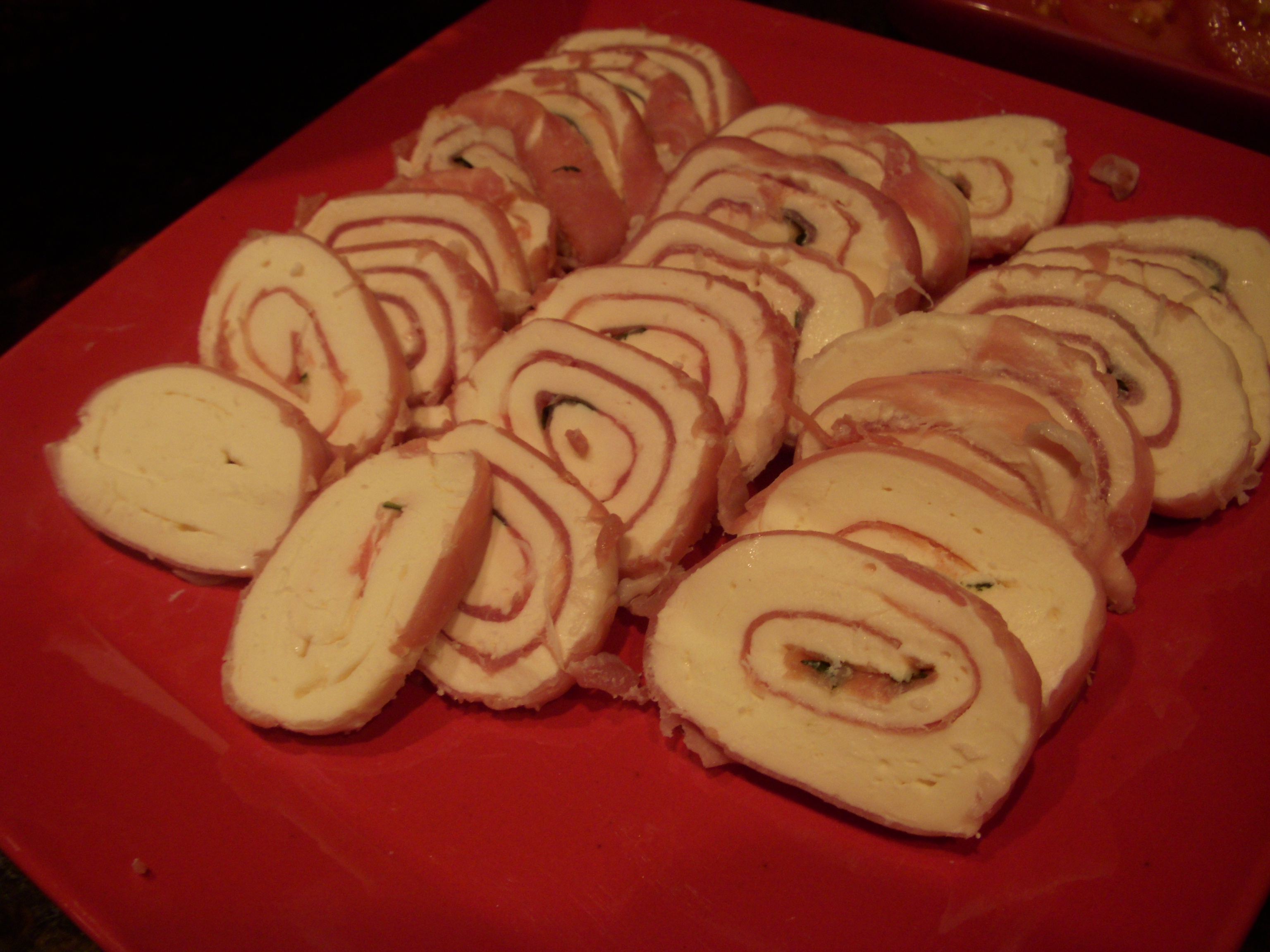 Prosciutto and mozzarella rolls