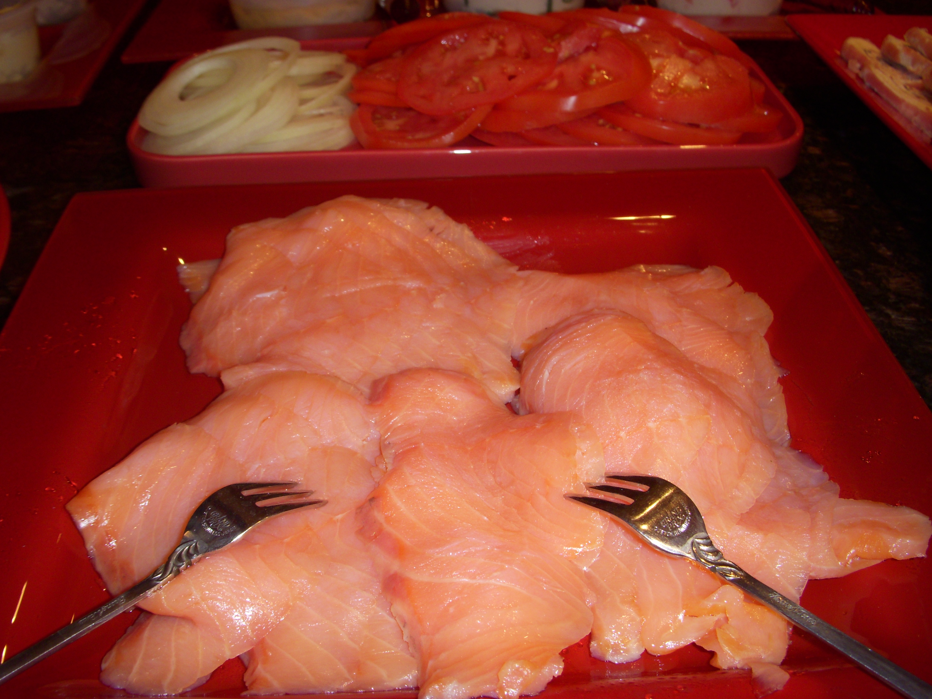 Lots of lox, with tomatoes and onions on the side