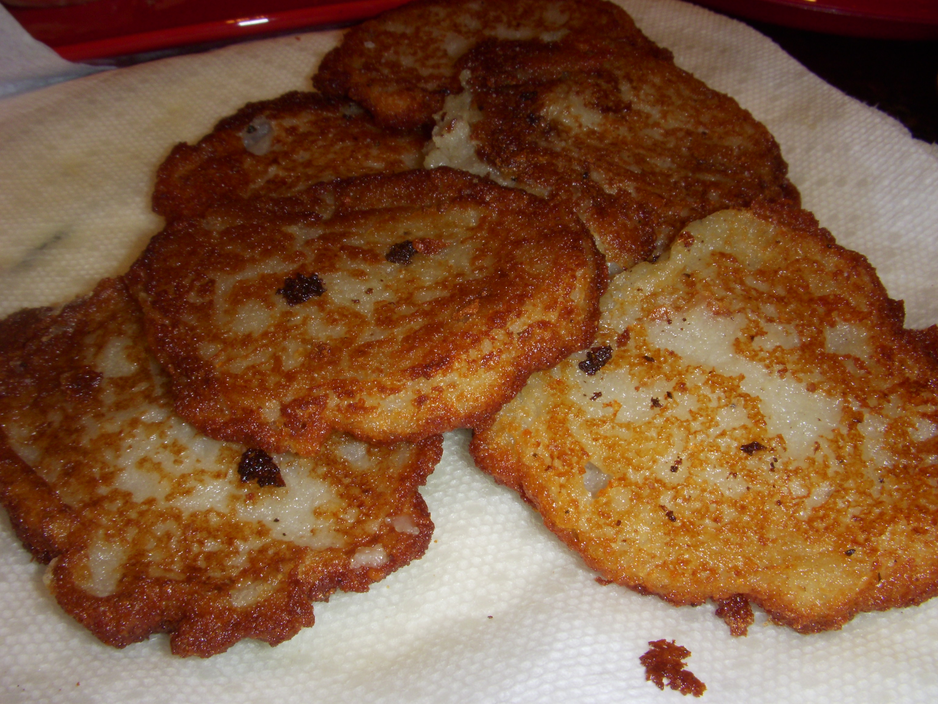Potato latkes fried in bacon fat