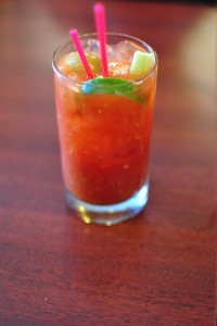 In addition to imbibing on some great wines over the weekend, we tasted a few local brews in both Quebec City and Montreal. At Le Sacrilege in Quebec City, we tried the blonde, red, and white beers. Josh loved the refreshing crispness of the blonde, while I thought the finish on the red was a bit too bland. It did have an interesting coffee flavor component to it that I didn’t expect. The white beer was a hefeweizen with a strong wheat flavor. I enjoyed it a lot, even though it was freezing outside and I typically associate hefeweizens with summertime. It was served with both a lemon and a lime wedge.