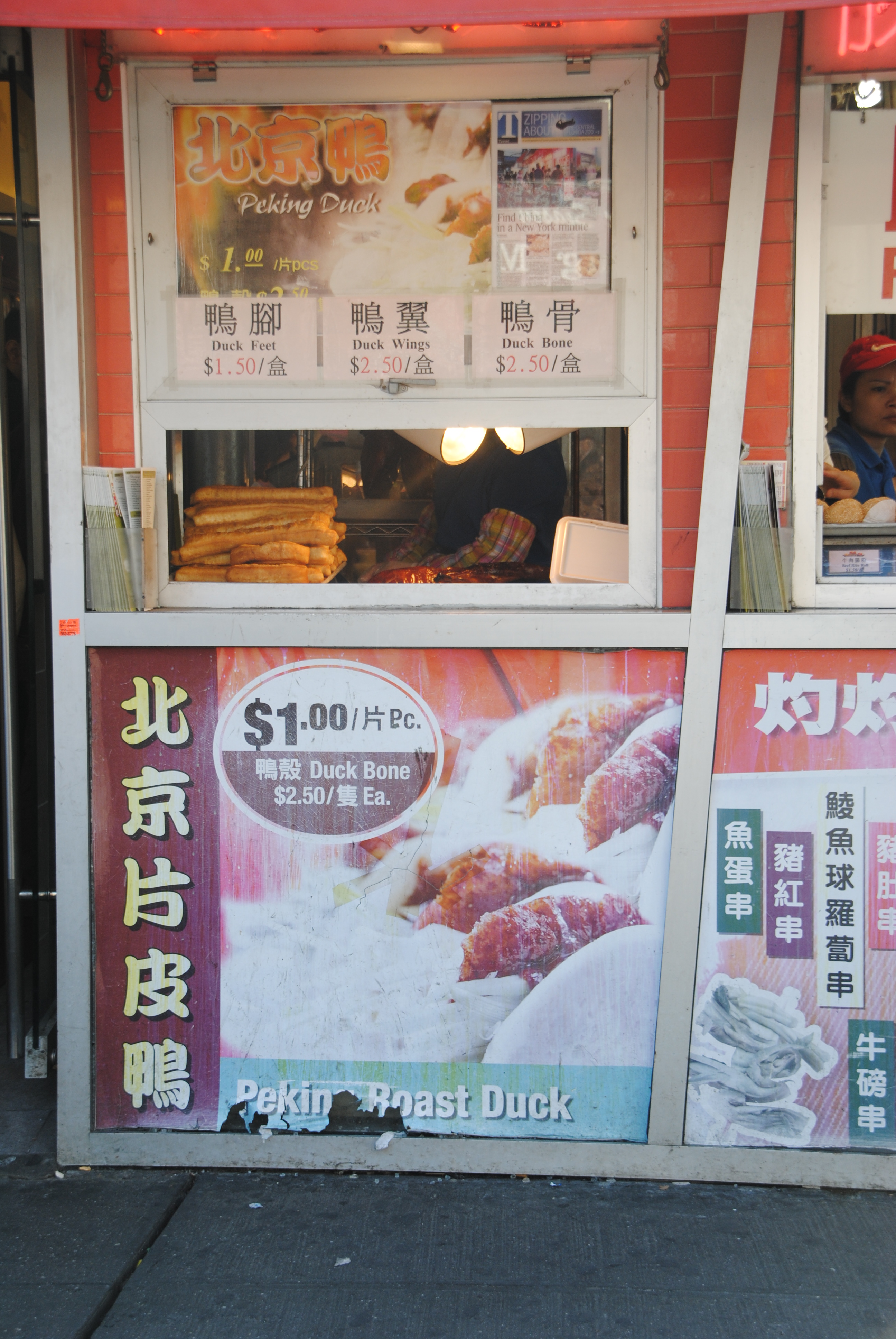On one sunny Sunday afternoon, Josh and I hopped on the train and made our way all the way out to Flushing. The 7 train wasn’t running from Manhattan, which only made the trip even longer. About 45 minutes later, we finally arrived. Our first stop was right outside the subway, a little takeout window outside the Corner 28 restaurant. There we purchased two peking duck buns for just $1 each.