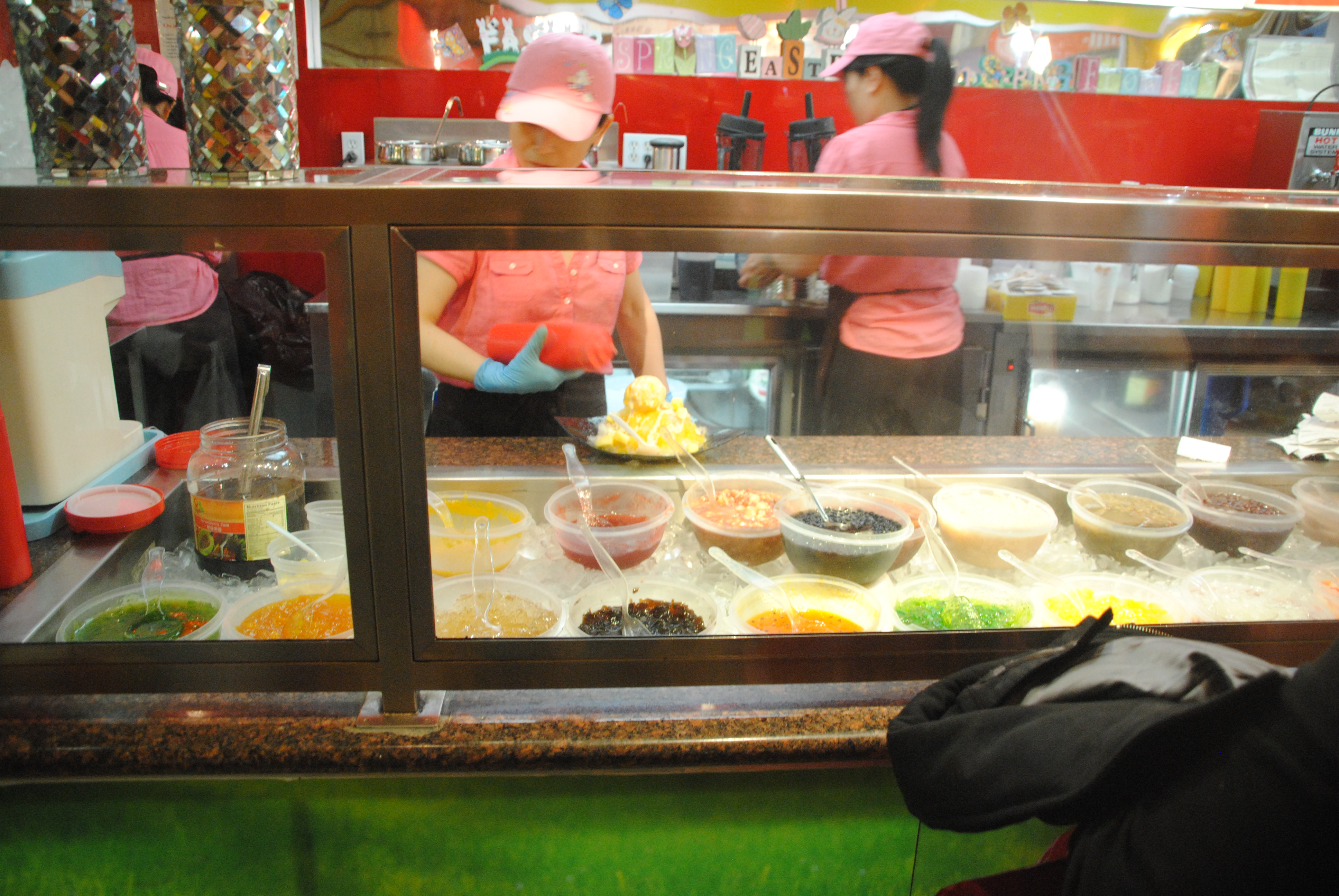 The assortment of shaved ice toppings
