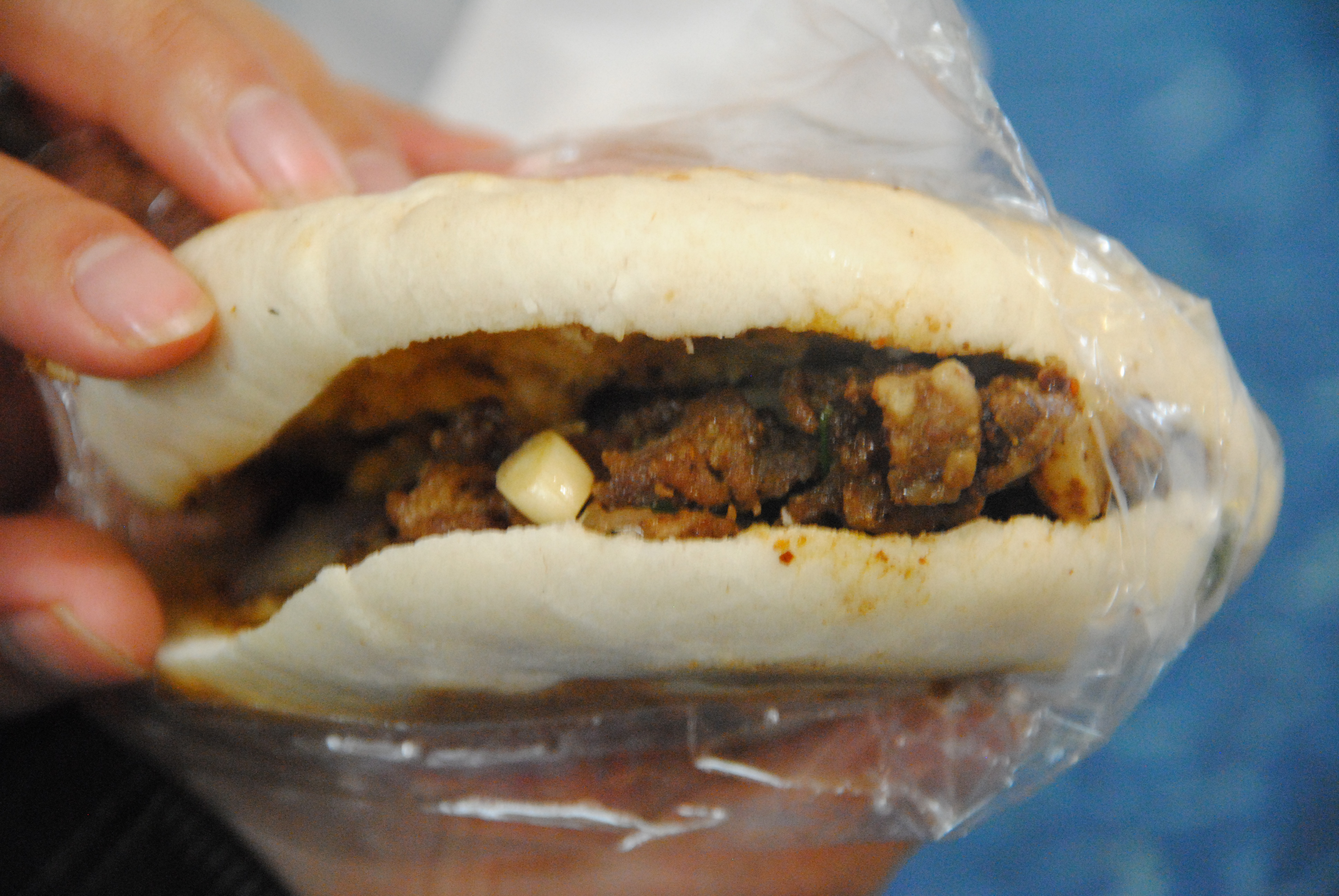 The pork burger was served on the same bun, and the pork itself was stewed so that it was tender and falling apart. It definitely tasted more Chinese, but the spicing was more subtle compared to the lamb burger.