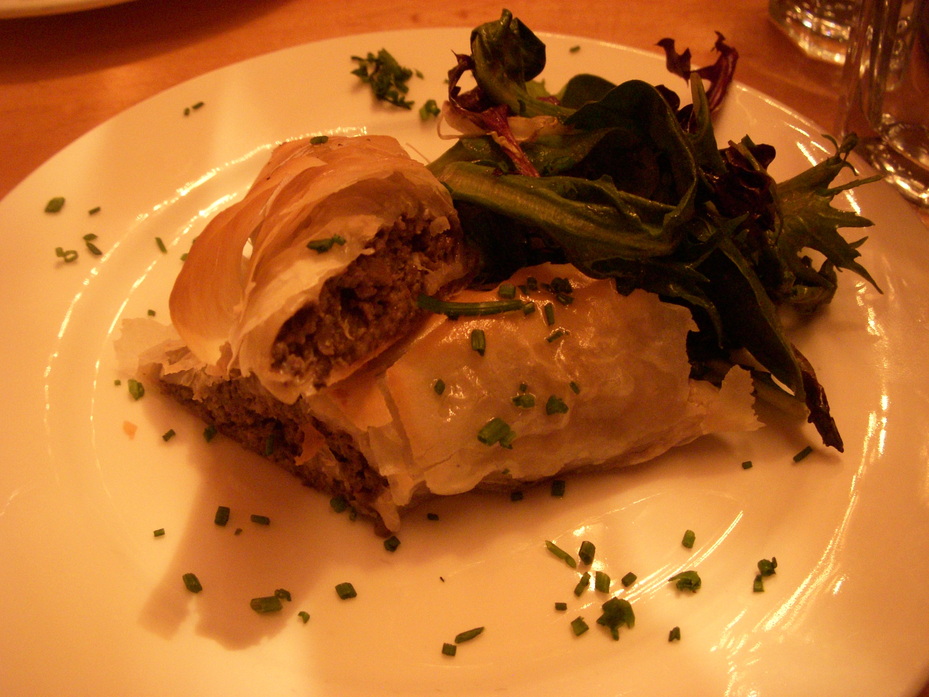 For our second course, the kitchen split our order of swiss chard and ricotta ravioli. There were two plump raviolis in each bowl that were topped with a piece of fried sage, brown butter, and poppy seeds. The pasta itself was perfectly cooked and gorgeously delicate, both in texture and flavor. The brown butter was a tad greasy but otherwise appropriately rich, and worked well with the sage. The surprise element of the dish was the poppy seeds sprinkled on top, which added a nice dainty crunch to each bite.