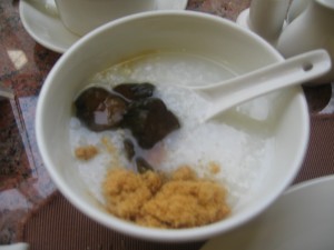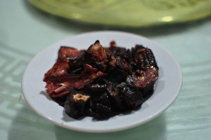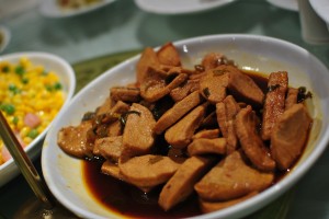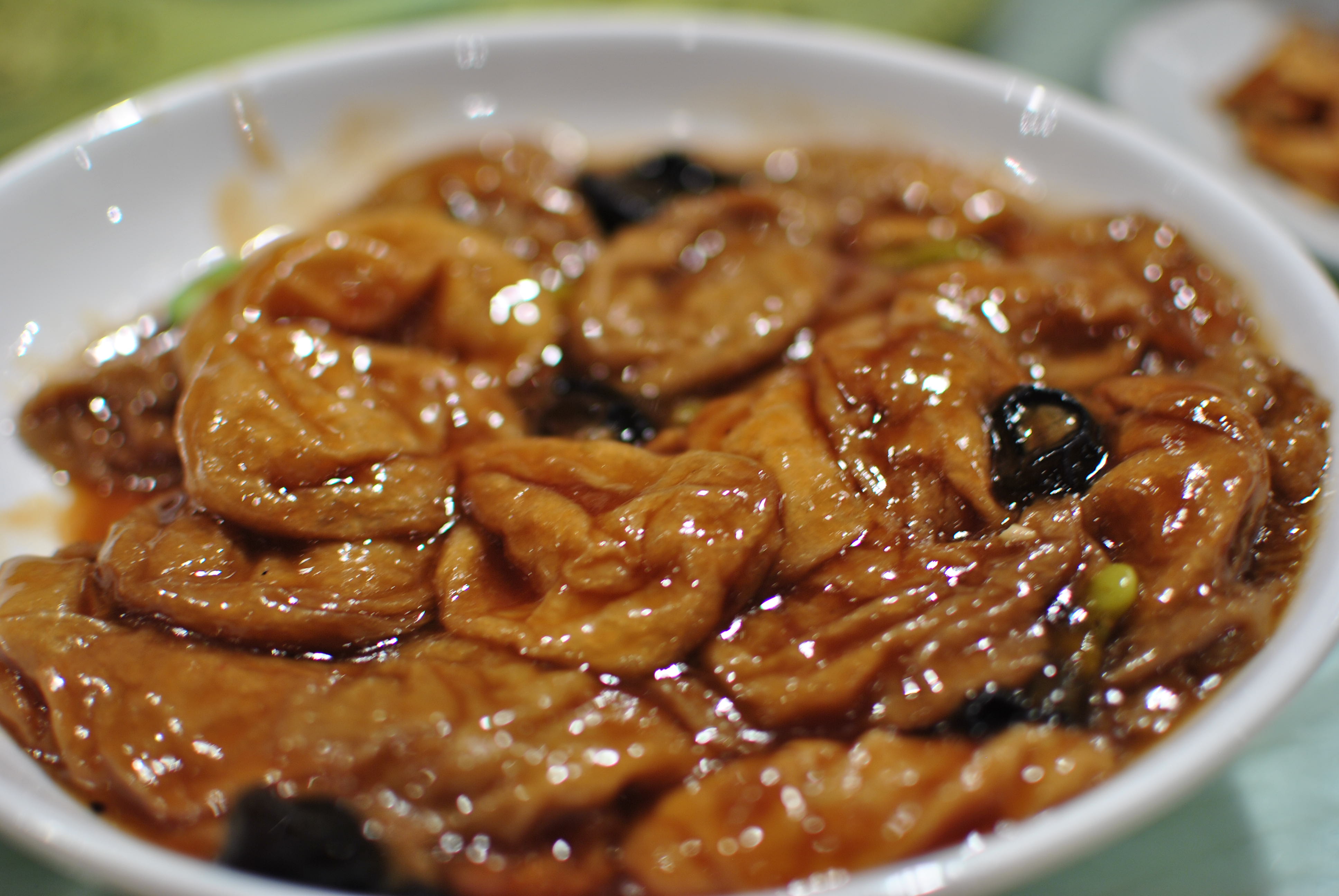 In addition the the zongzi, we couldn’t resist getting more stinky tofu. There was a huge food stall set up right outside the rest area that was serving a variety of snacks, and our noses smelled the tofu immediately. This version was better than the one at the Temple Bazaar in texture, but it was a bit too salty. We slathered them with lots of hot sauce.