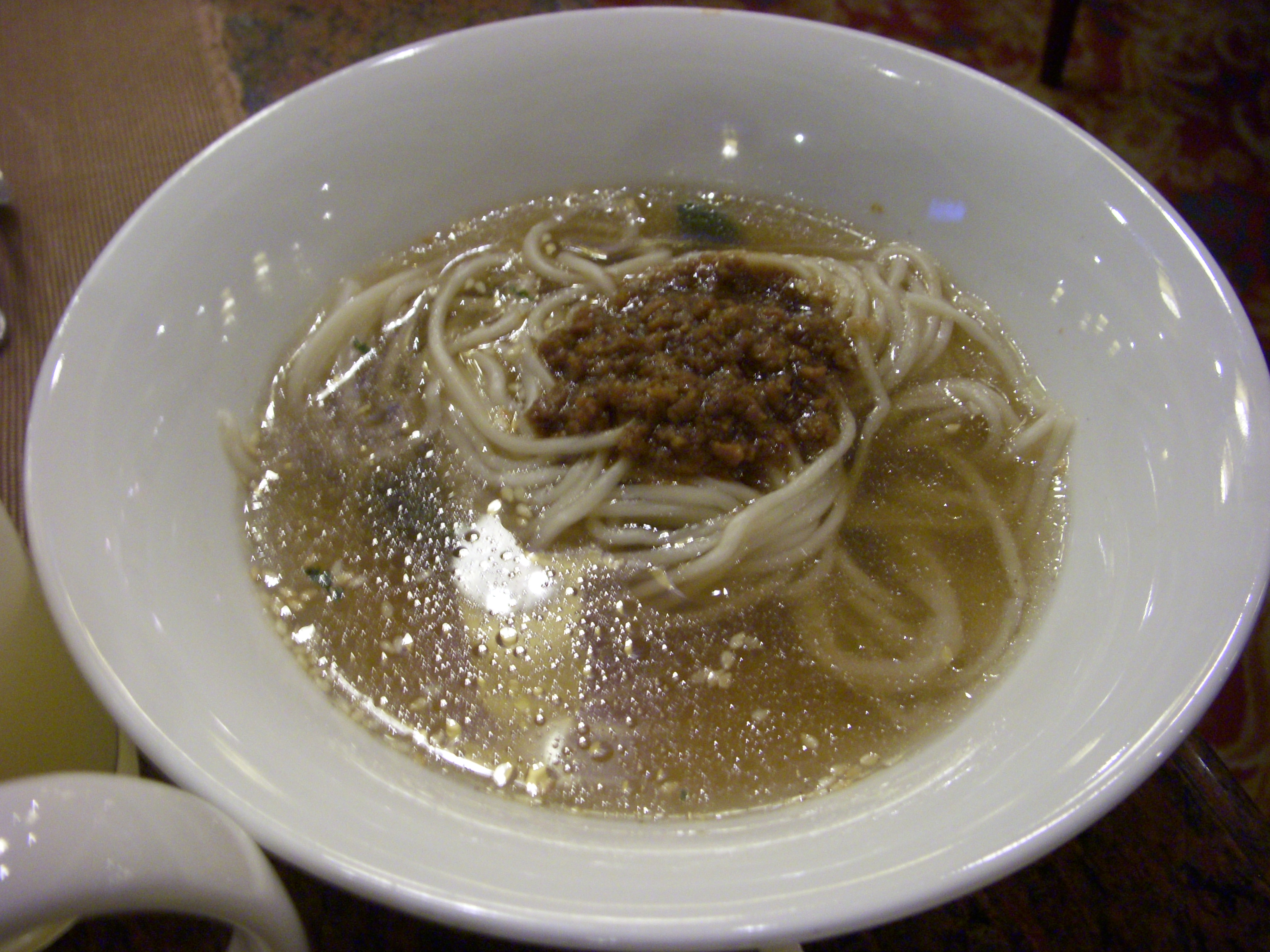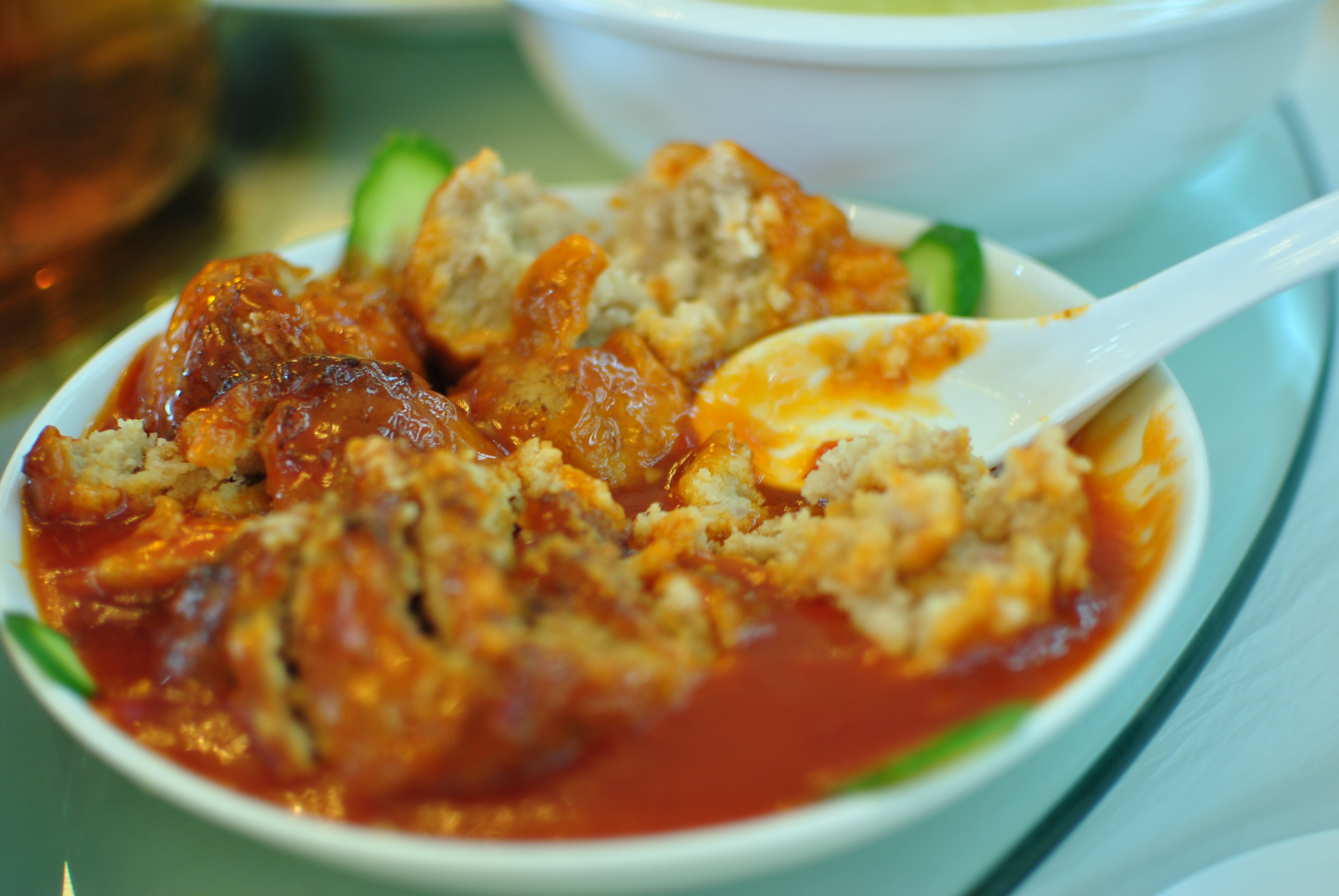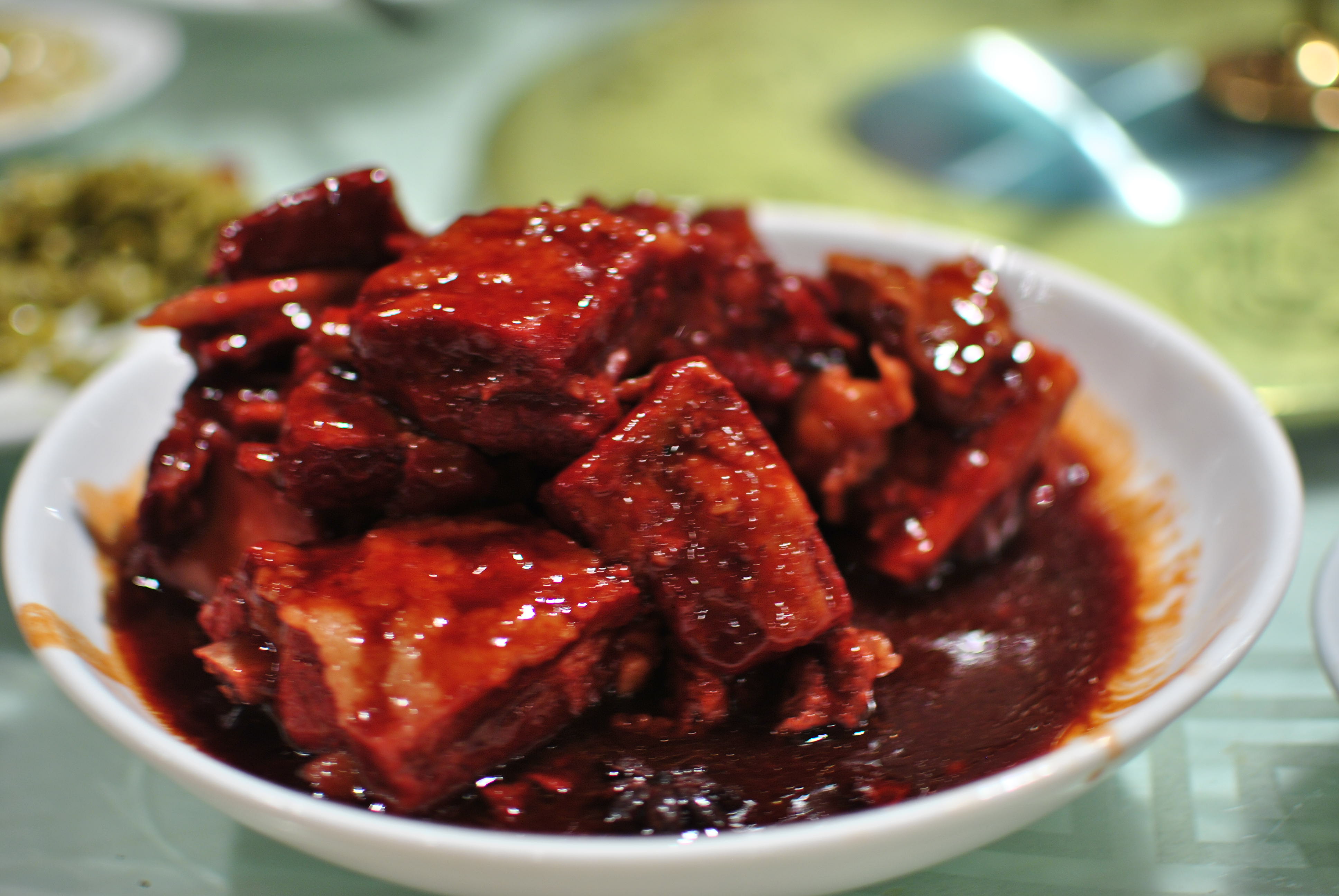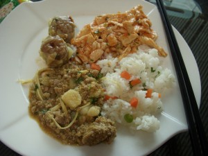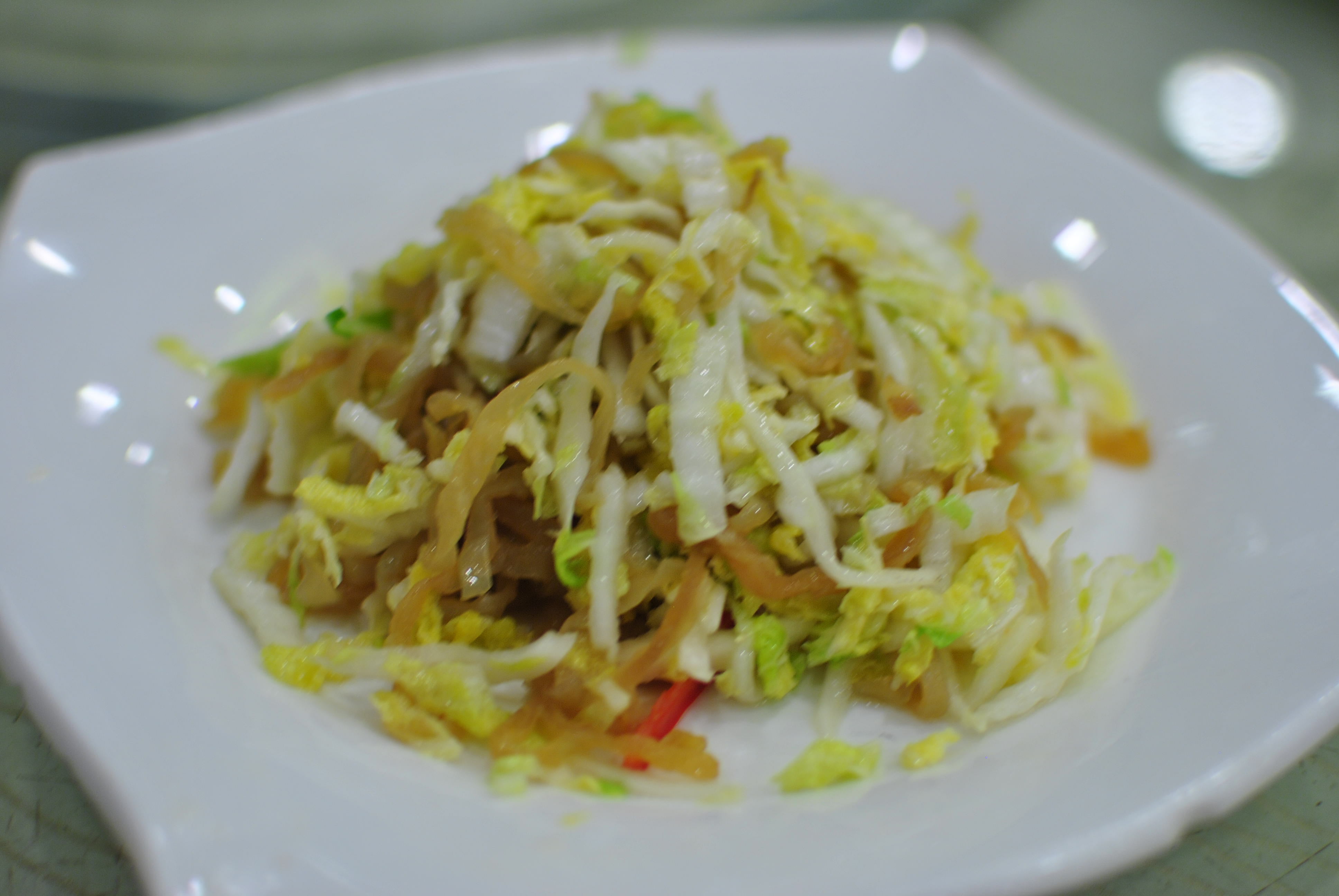 Josh, who was in Shanghai last year on a business trip, remembered a place where he got really good xiao long baos, or small soup dumplings. He ran over to where the stall was but the line was too long, and we didn’t have enough time to wait. Instead, he went to a closer dumpling stall and bought giant soup dumplings that were steamed in their own baskets. The dumplings were about the size of my fist, and came with a straw so that you could suck the soup out. That was a bit dangerous, as the soup was hot, but the broth was porky and tasty. The filling itself was pretty good, though the skin was a bit too thick. I guess that’s the only way they can maintain the shape of dumpling, given its abnormally large size.