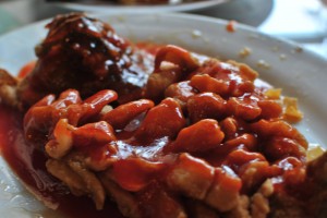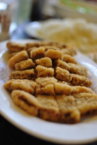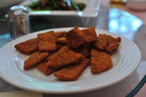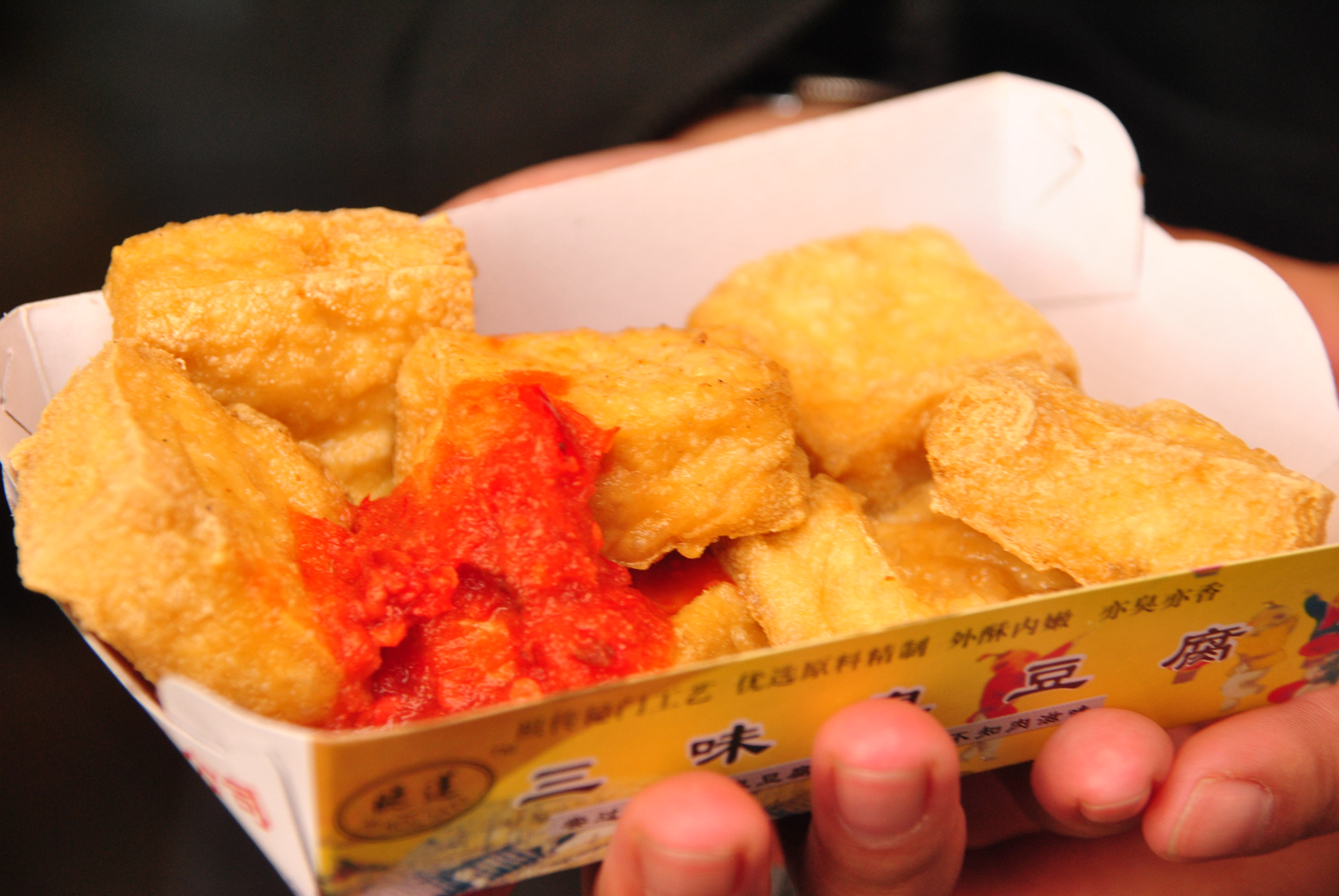 The Taiwanese people in our group, myself included, followed our noses to the stinky tofu stand. The tofu wasn’t as good as in Taiwan, but for someone who sorely misses stinky tofu and thinks about it often, it was passable. The tofu wasn’t as stinky though, and it had a denser, greasier texture than the ones we get in Taiwan.