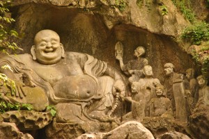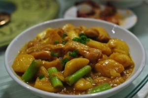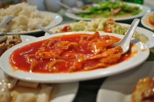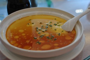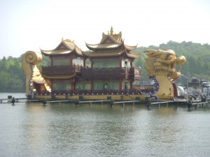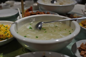 After some more driving, we finally reached our destination for the evening, the city of Hangzhou. By the time we got there, it was dark so we didn’t get to see much scenery, but it didn’t matter because we would spending the next day there. We were tired and stiff from the long bus ride and immediately went to dinner because it was pretty late. When we got to the restaurant, the lights were off and they were scrambling to get things set up for us. Bad sign. We also noticed that our plates and glasses were dusty, which was kind of off-putting. We wiped them down as best we could, but it didn’t bode well for the rest of the meal. This was by far the worst meal that we had in China, so it was good that we had eaten the snacks at the rest area, because otherwise we would have gone to bed hungry. We barely touched our food, and couldn’t wait to get out of the restaurant.