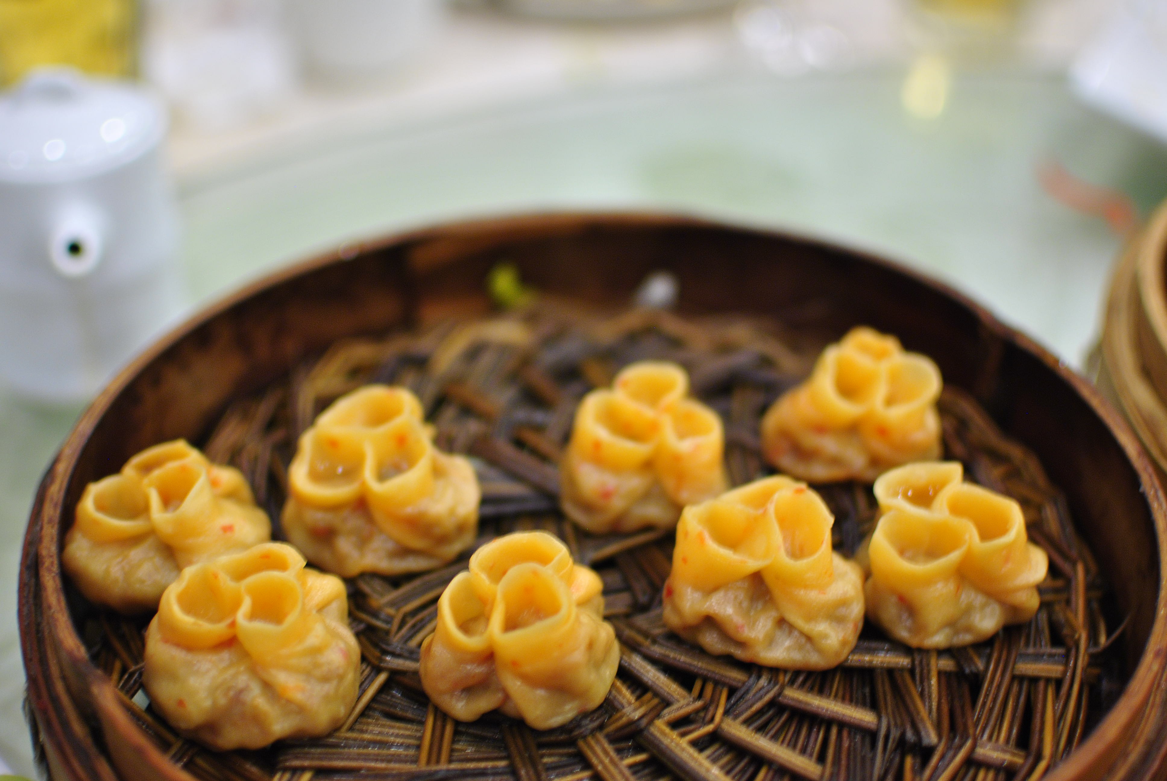 Egg custard tarts, fried spring roll, shumai, steamed bun, hash brown, powdered donut