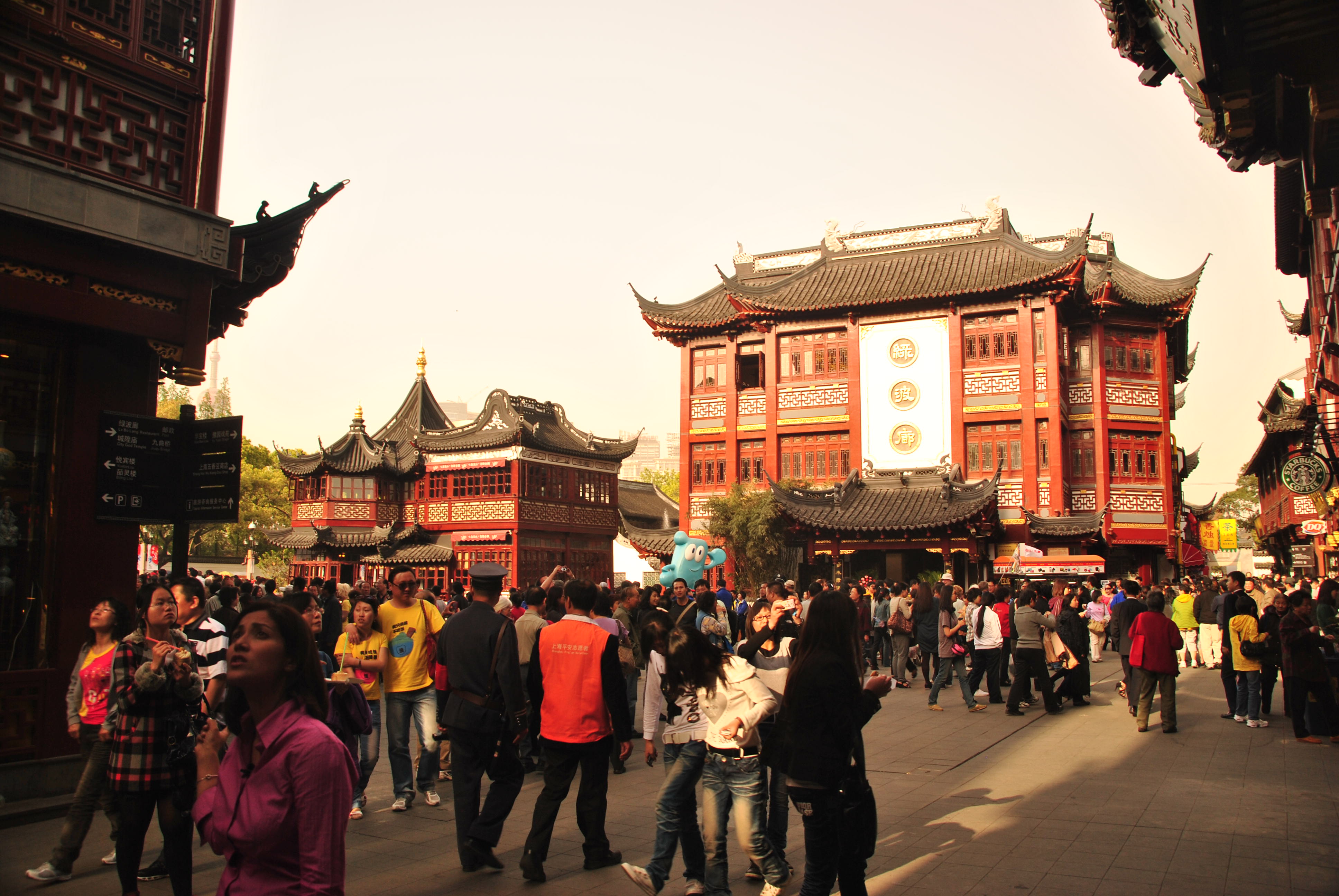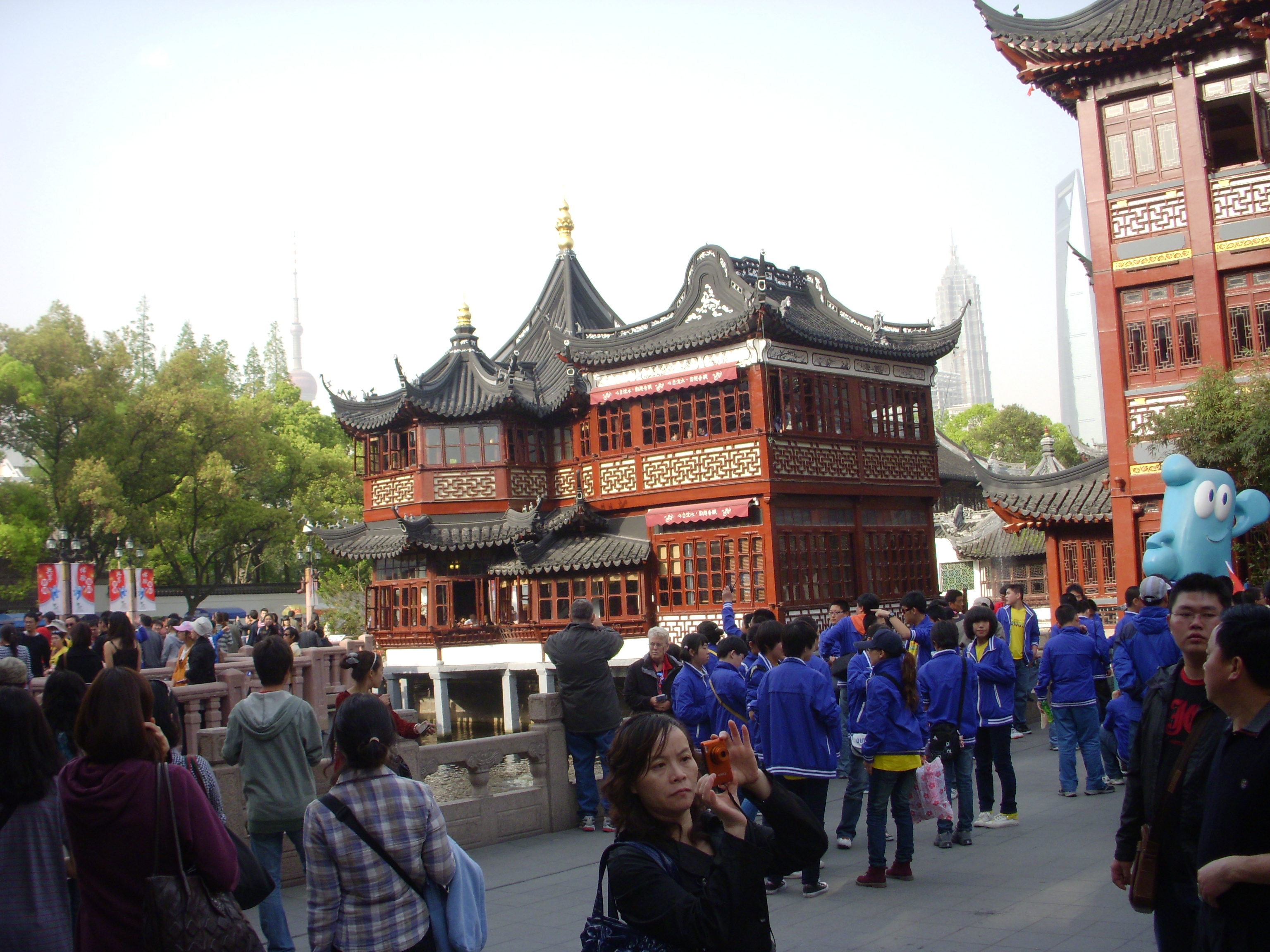 After our flight to Shanghai, which was thankfully nowhere near as turbulent as the flight to Xi’an, we went for a quick visit to the Temple Bazaar area and to the Bund. The Temple Bazaar is one of my favorite areas in Shanghai. It’s full of beautiful historic-looking buildings and tons of shops and food stalls. Unfortunately, our guide only gave us 10 minutes of free time, which meant we couldn’t wander off for more than 20 feet from where he was standing. Nevertheless, as soon as he set us free, everyone dashed off to closest food stalls. It was actually pretty funny, because we were like kids let loose in a candy store.