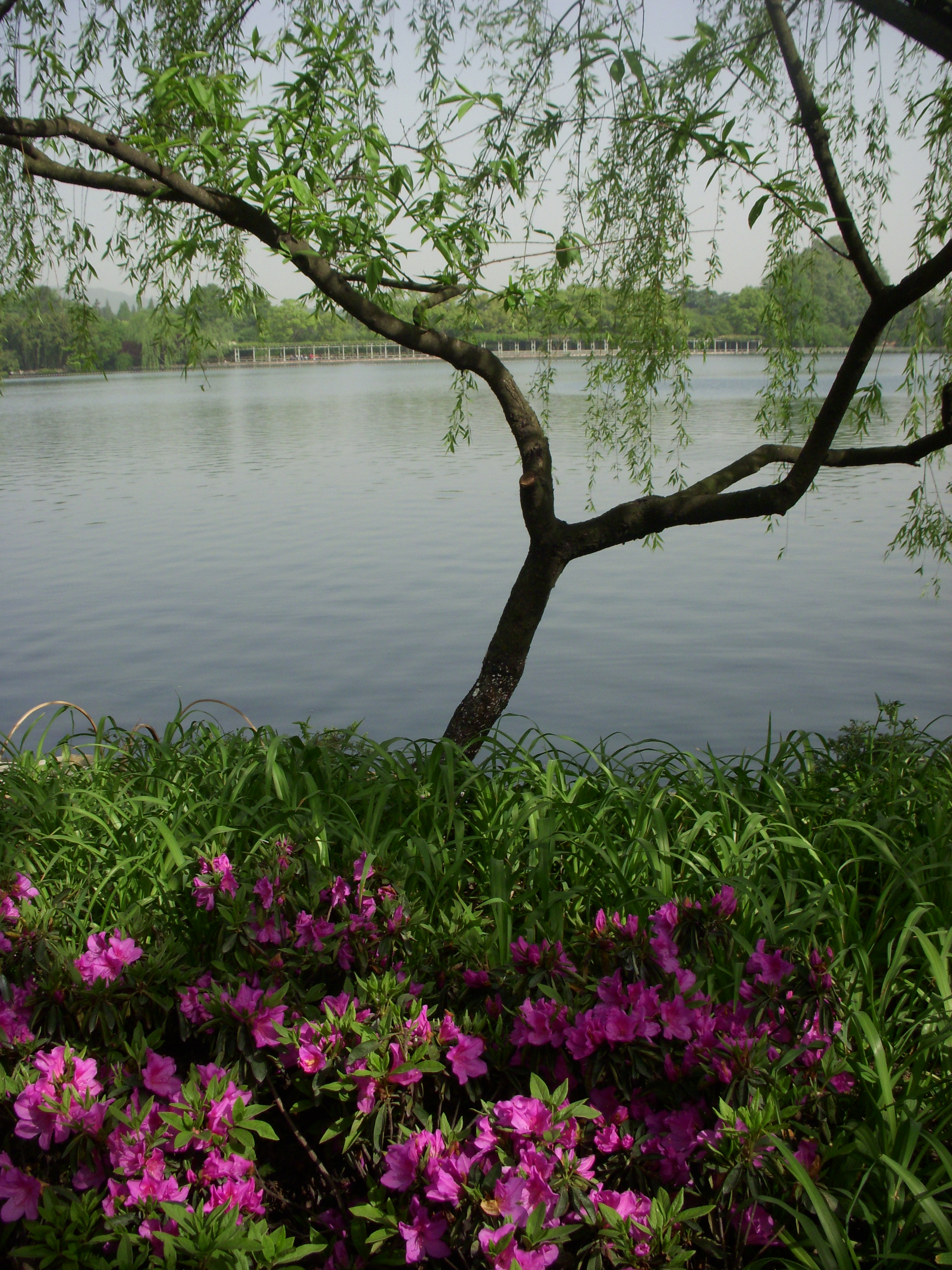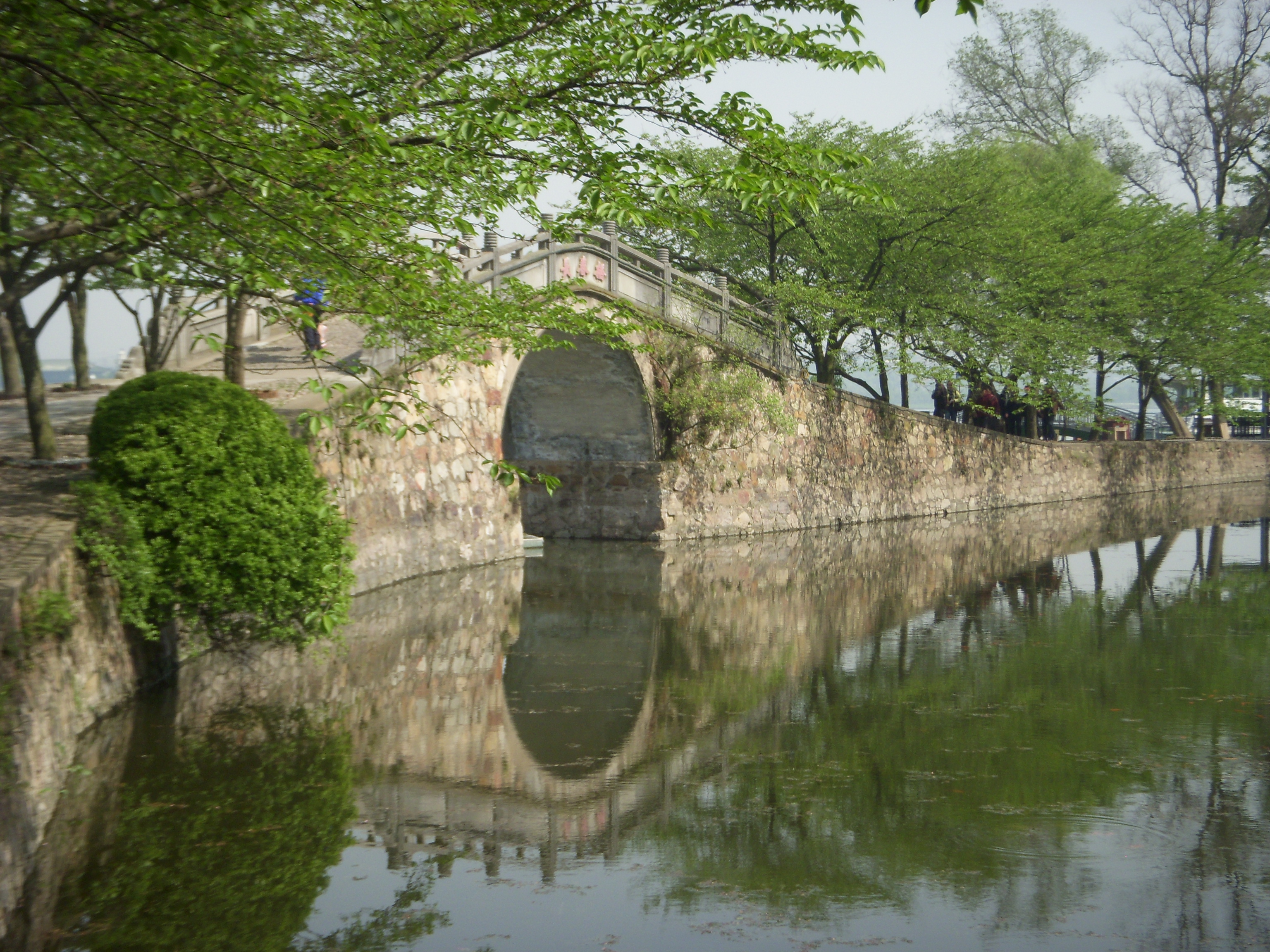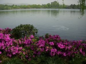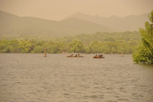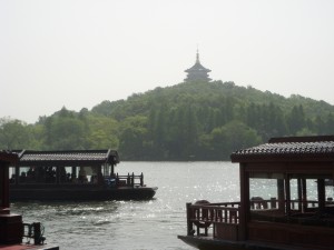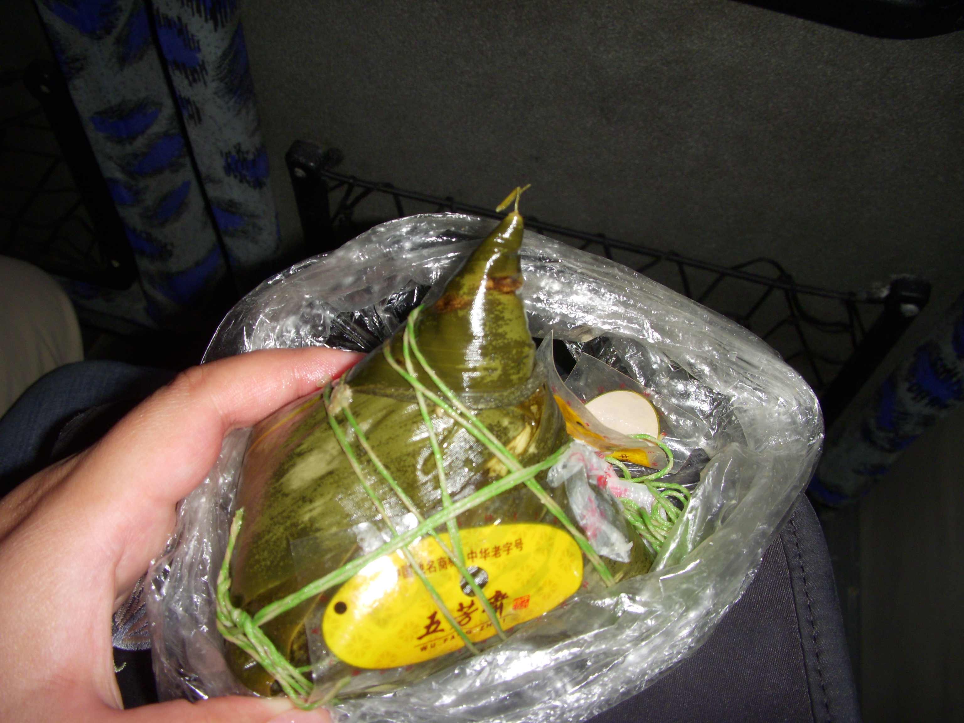 After leaving the Bund, we took over a two hour bus ride to Hangzhou. Traffic was pretty terrible getting out of the city, so it took longer than that I think. Watching the “countryside” go by was actually pretty interesting, seeing all the farms as well as a lot new houses being constructed. Halfway through the trip we stopped at a rest area on the highway to take a bathroom break, and to pick up some snacks. The rest area had a famous zongzi shop, which we of course had to try. Zongzi are a sort of rice dumpling formed in a banana leaf. The rice is stuffed with either savory ingredients, like pork and egg, or sweet ingredients, like red bean paste. This version was savory, and the rice was super sticky and a bit hard to eat while on a moving bus. The filling was tasty, with lots of egg and pork, but it was a tad dry.